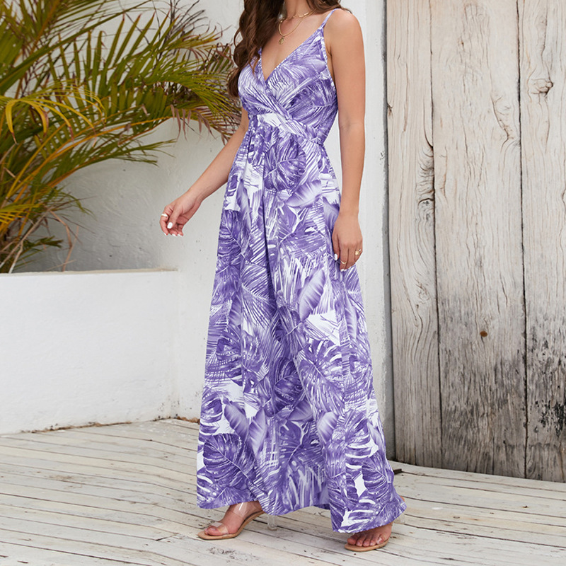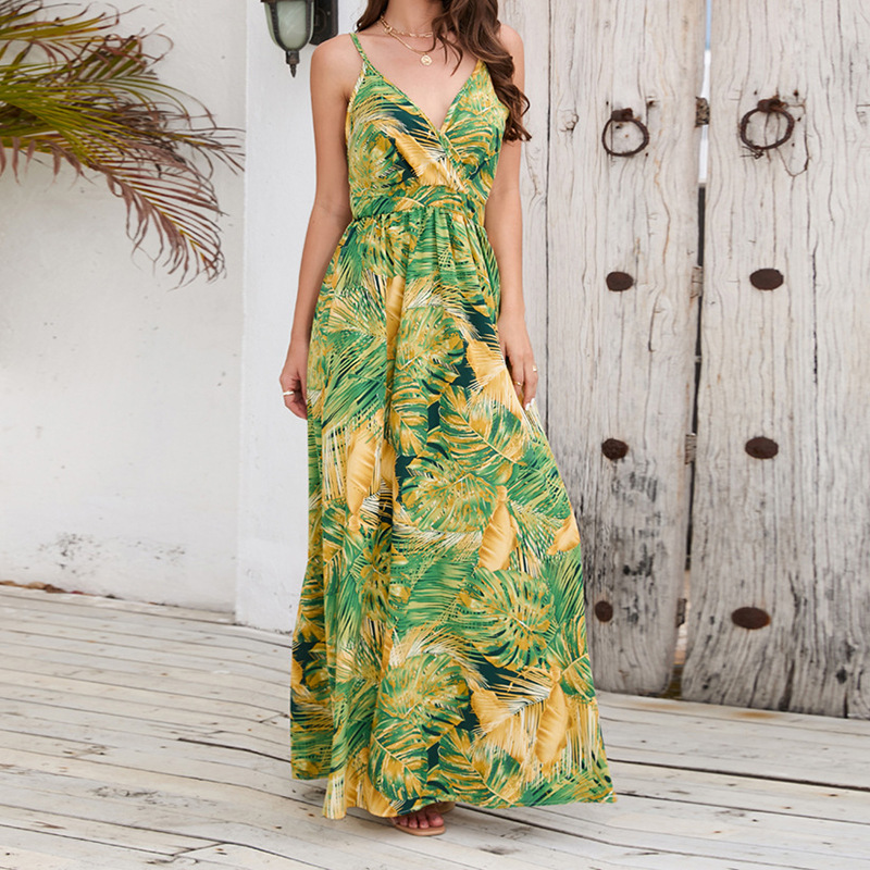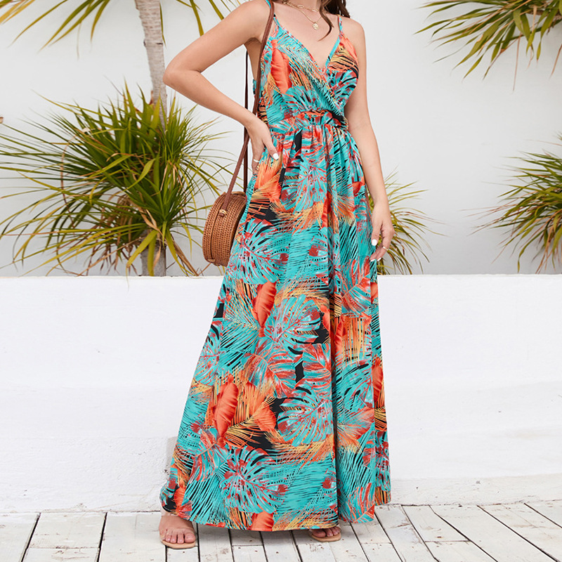 2023 크로스 국경 대외 무역 여자의 새로운 보헤미안 인쇄 원피스 아마존 섹시 V-넥 슬링 원피스
