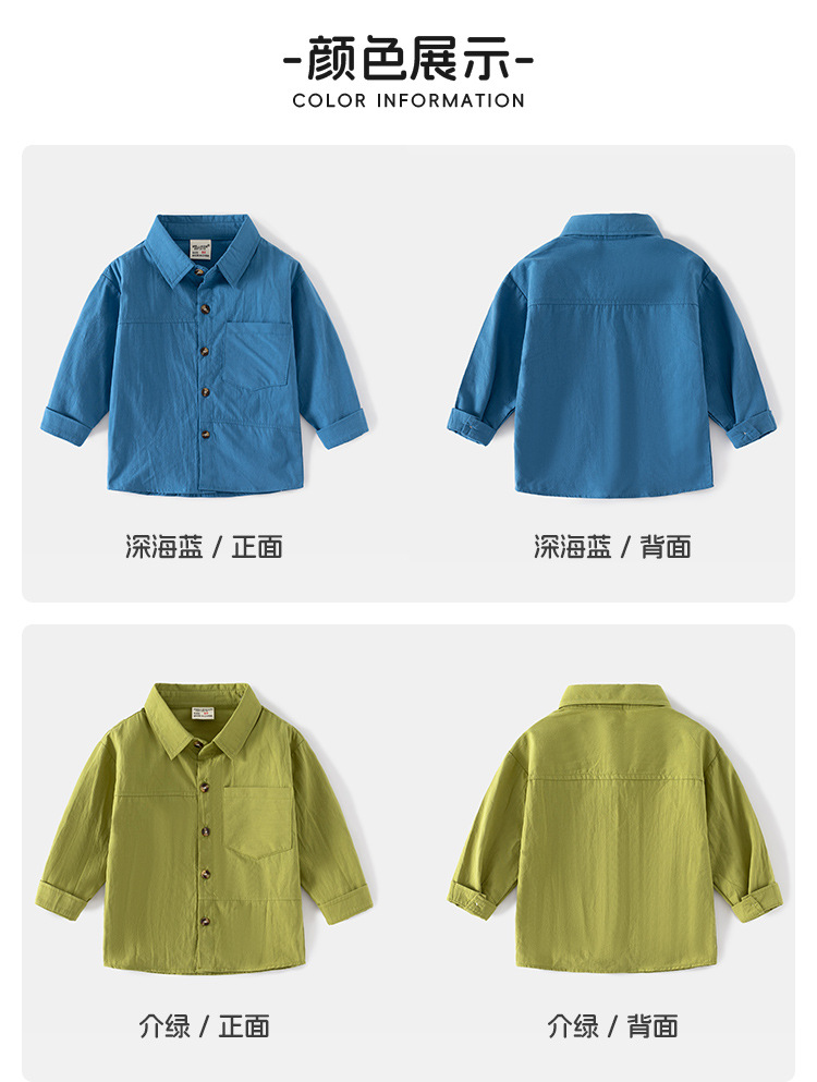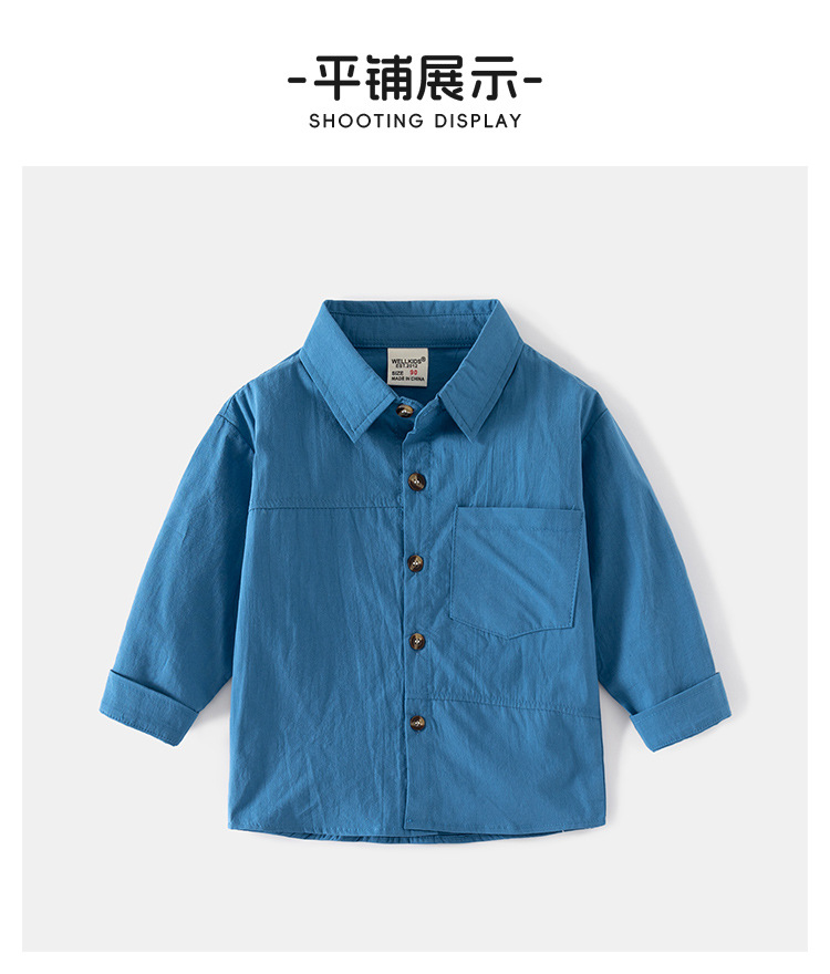컬러 라펠 어린이 남성용 부드러운 피부 친화적 인 유연한 봄과 가을 긴 소매 입체 모양의 캐주얼 패션 긴 소매 셔츠스토어 가기