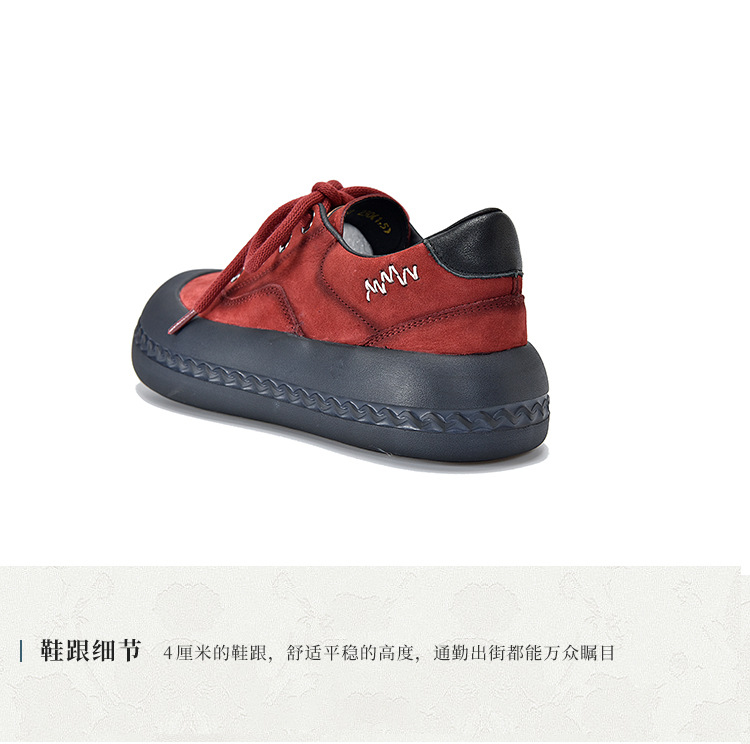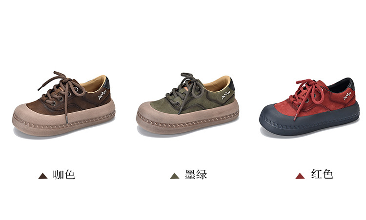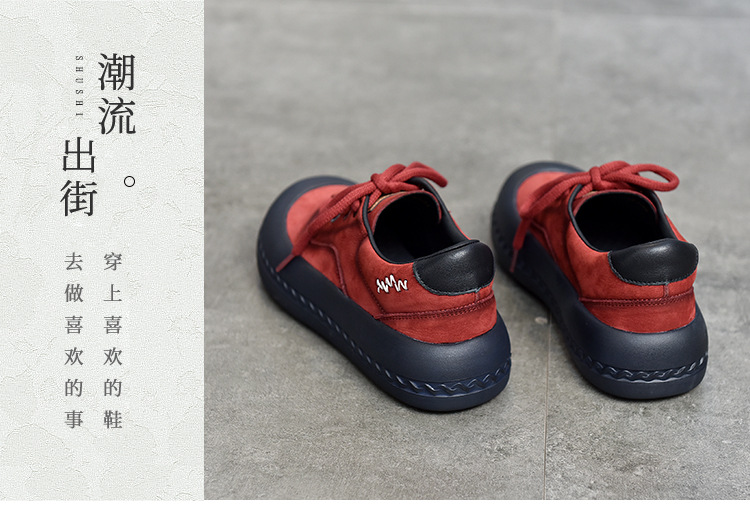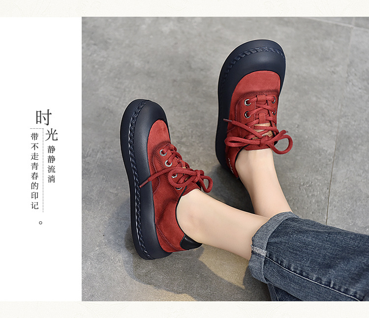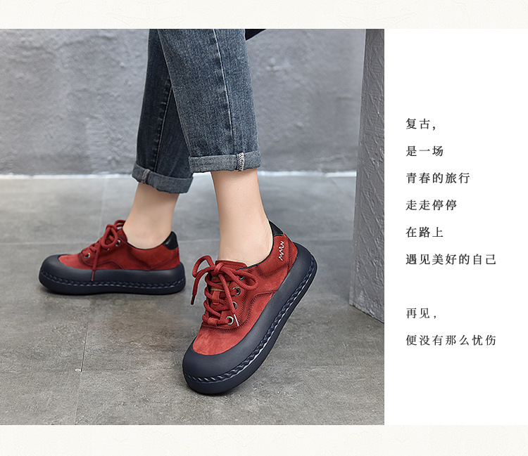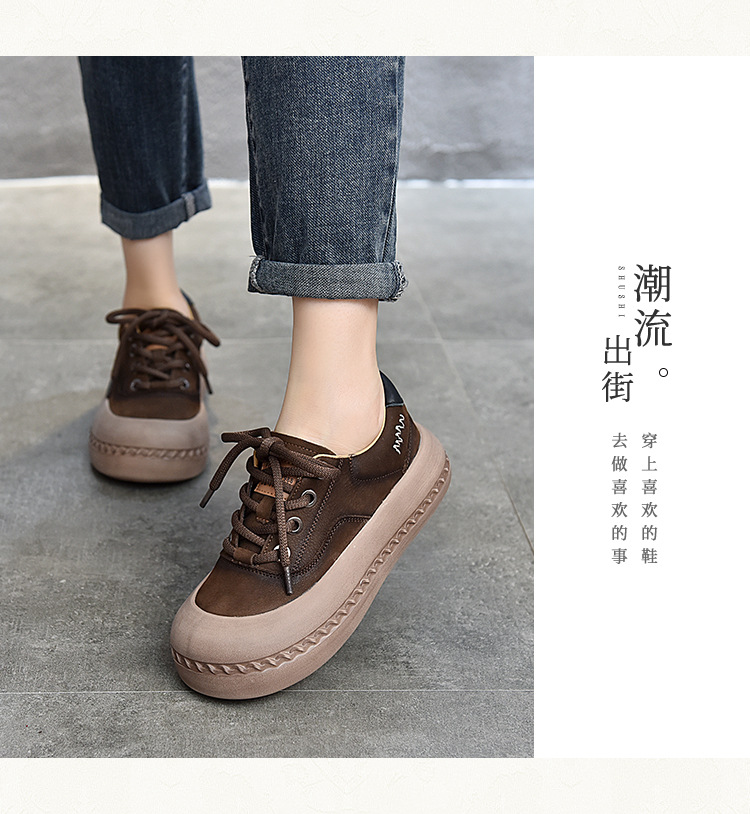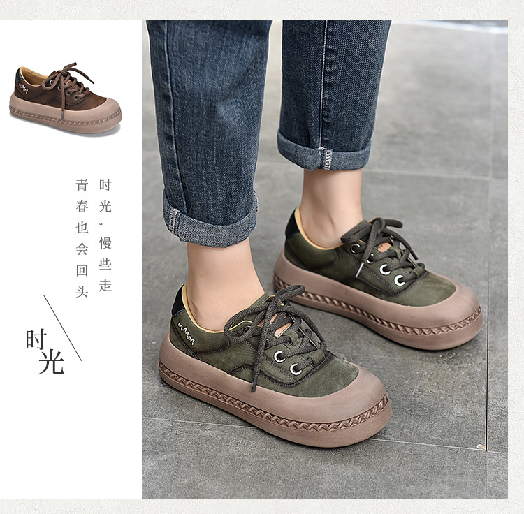 여성용 로우탑 가죽 레이스업 스니커즈, 가을용 두꺼운 밑창 캐주얼 슈즈, 1층 소가죽 레트로 여성화스토어 가기