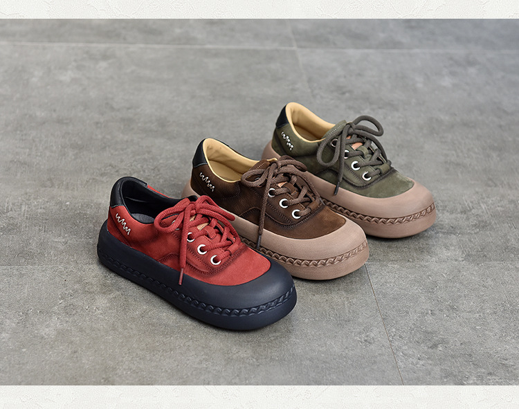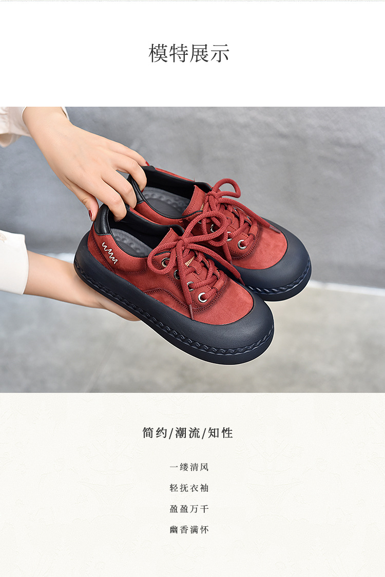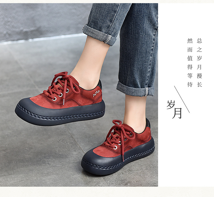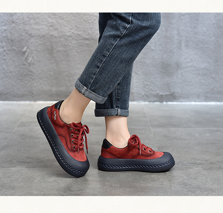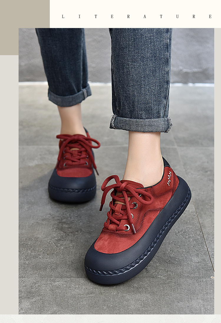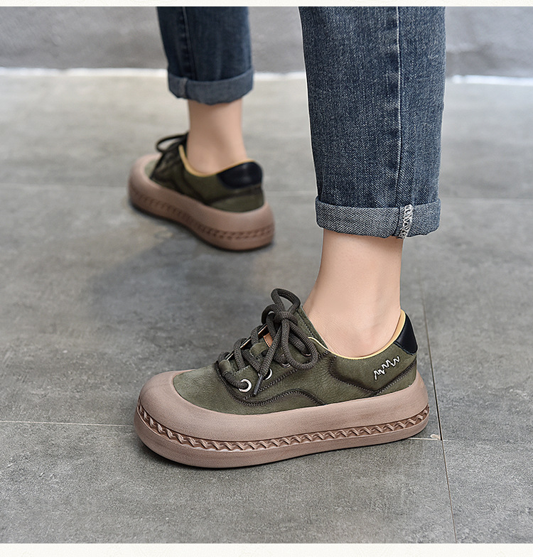 여성용 로우탑 가죽 레이스업 스니커즈, 가을용 두꺼운 밑창 캐주얼 슈즈, 1층 소가죽 레트로 여성화