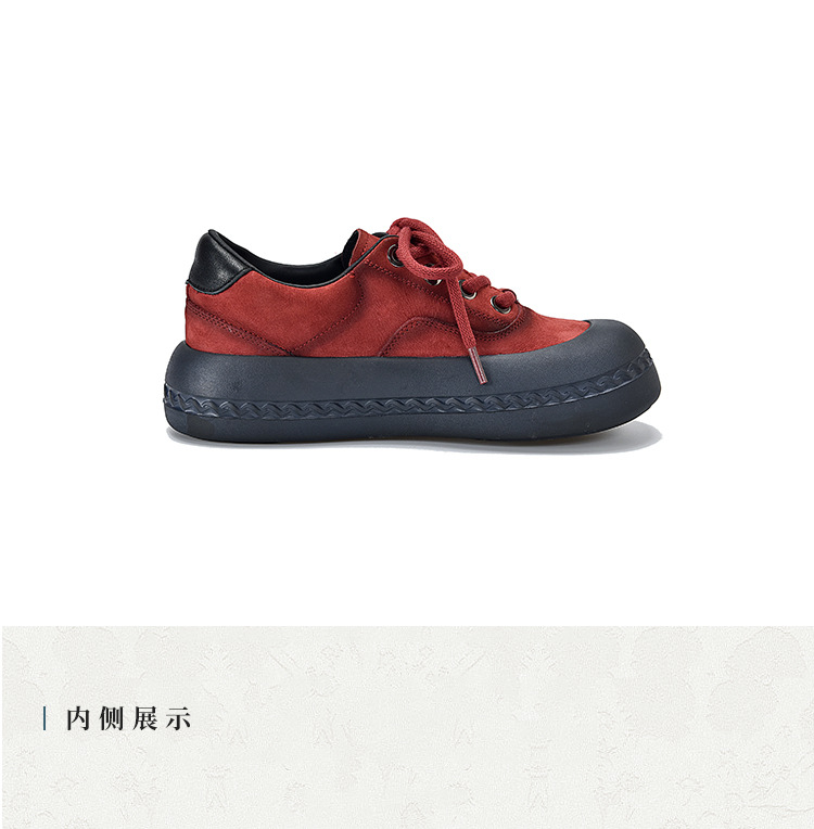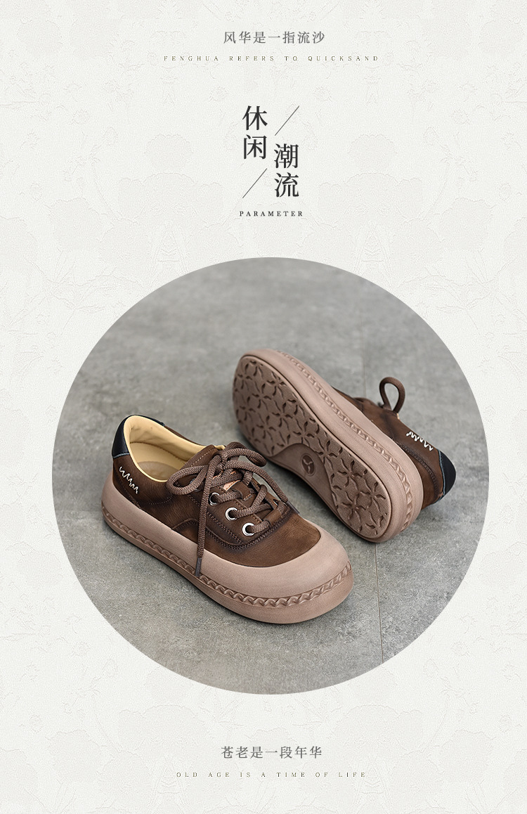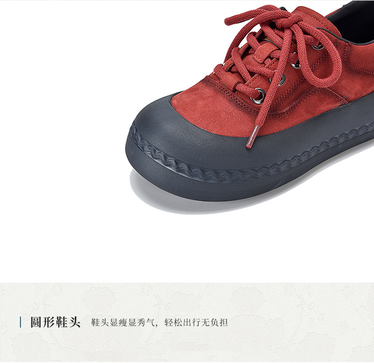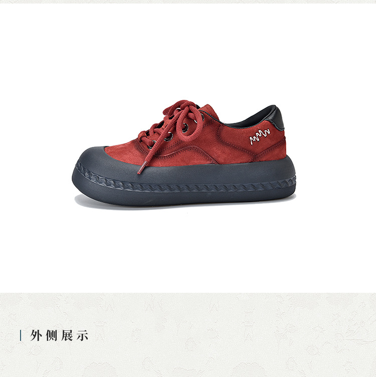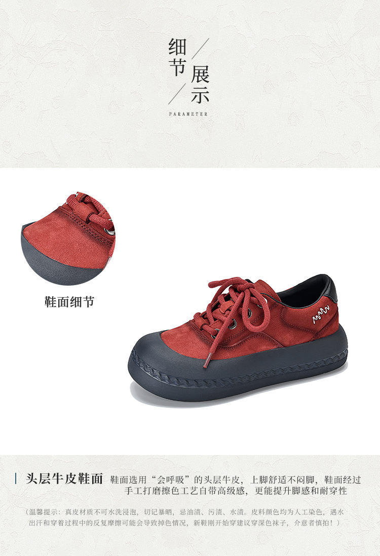 여성용 로우탑 가죽 레이스업 스니커즈, 가을용 두꺼운 밑창 캐주얼 슈즈, 1층 소가죽 레트로 여성화