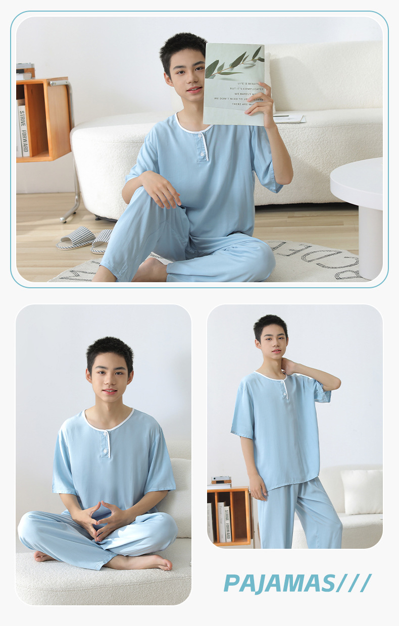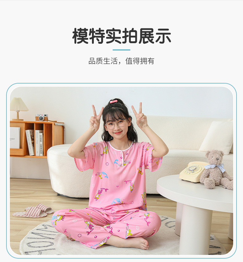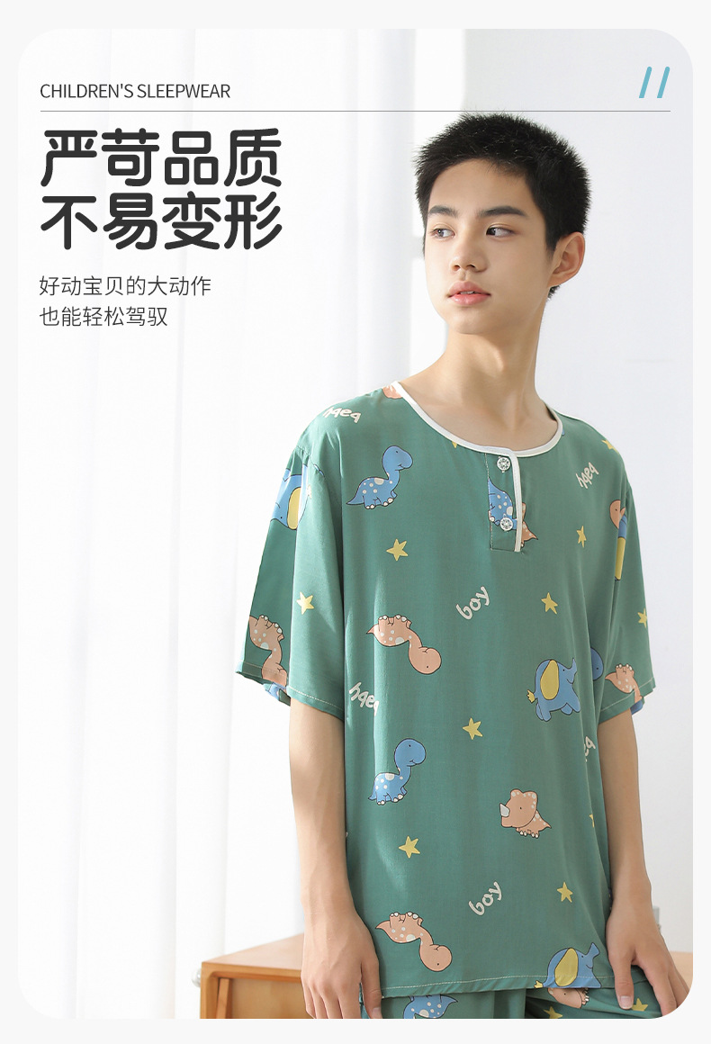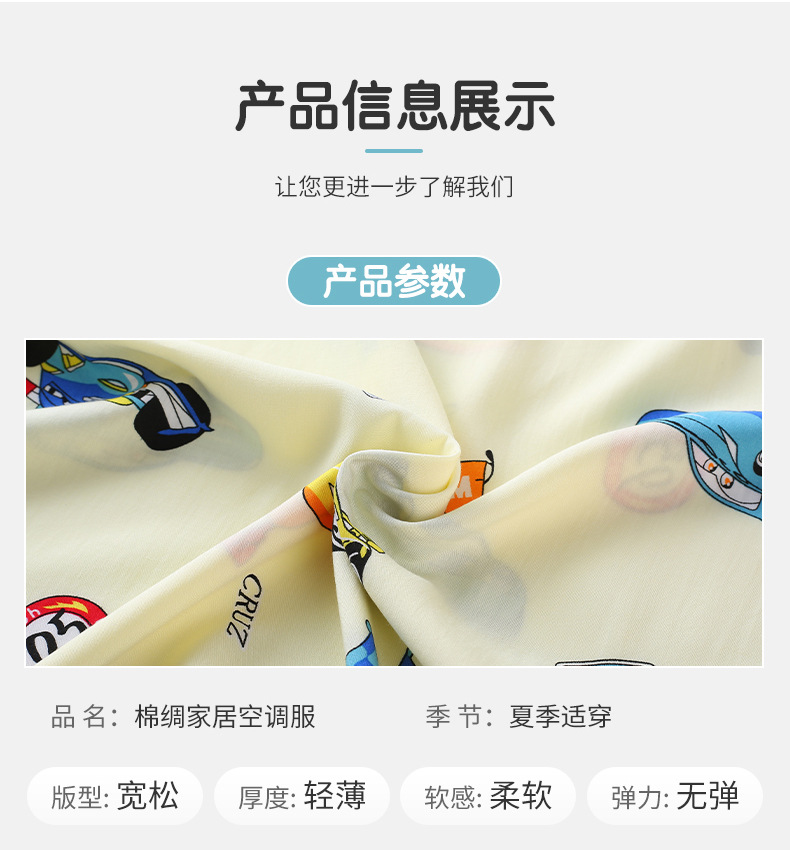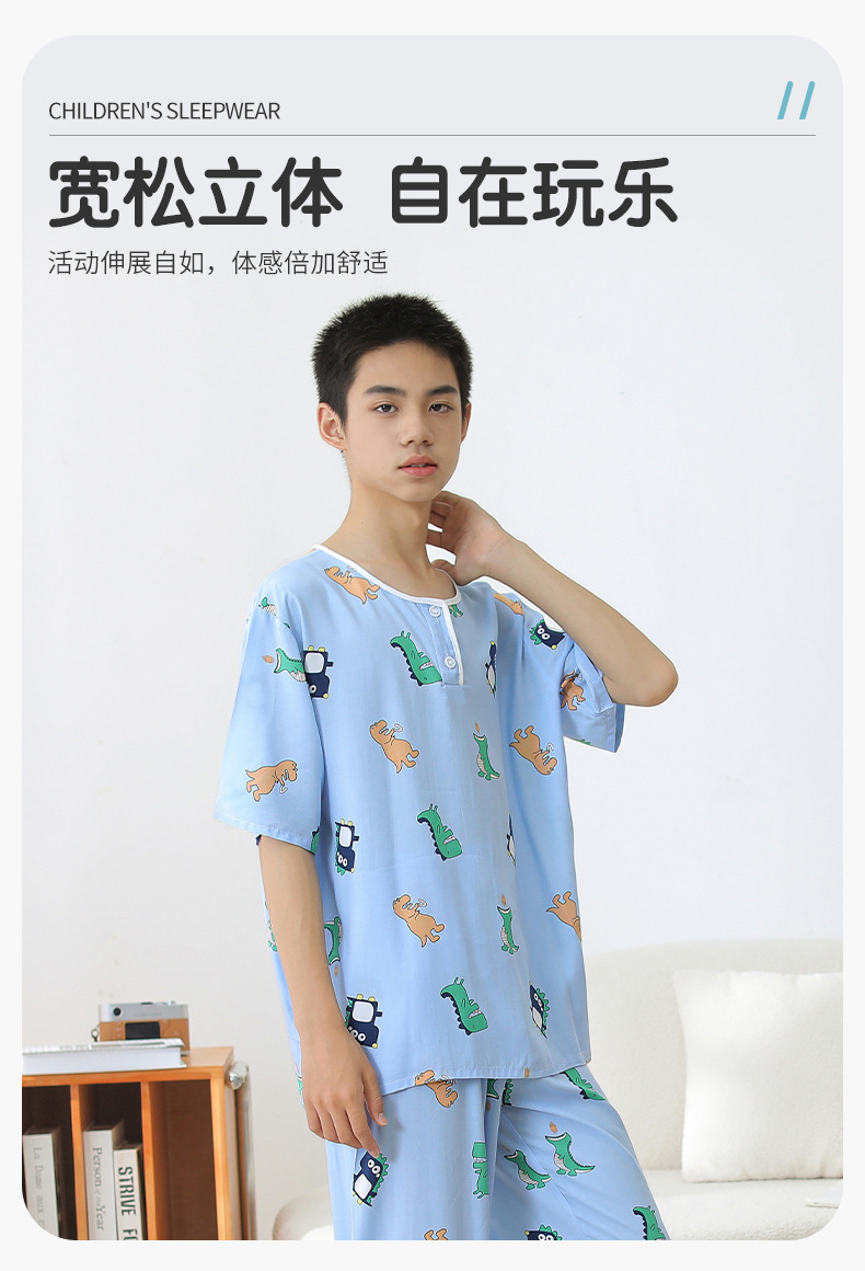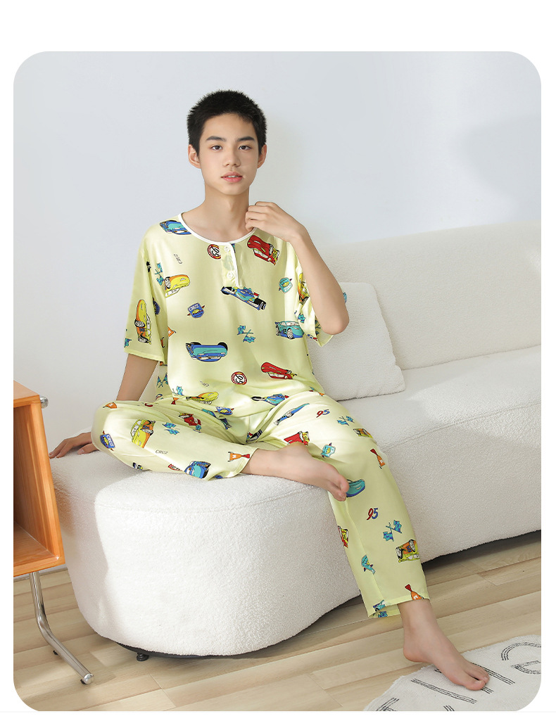 면 실크 잠옷 소년 여름 남자의 긴팔 면 실크 세트 중학생 청소년 남자의 가정복스토어 가기