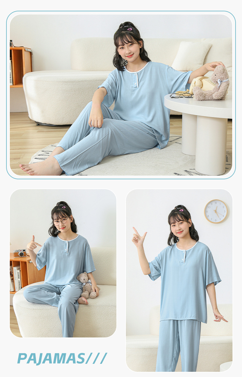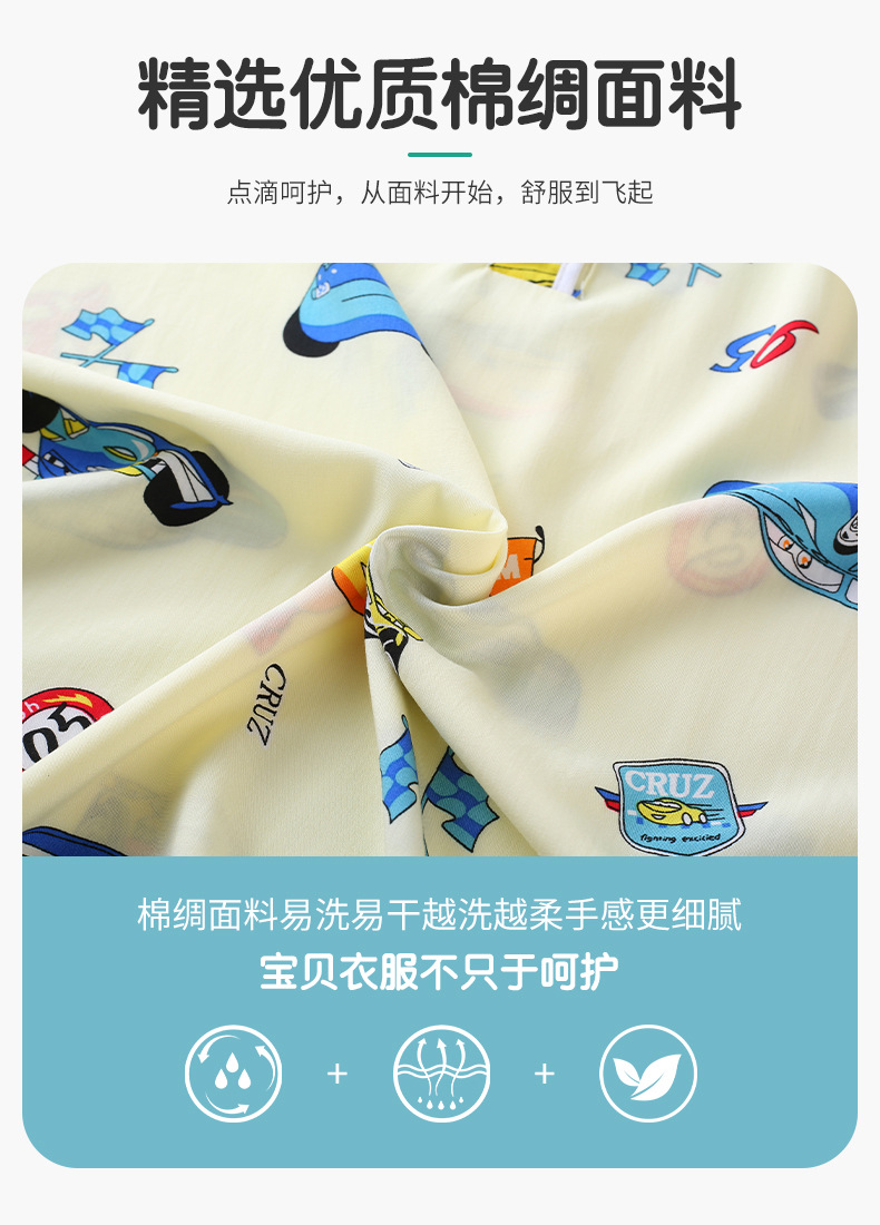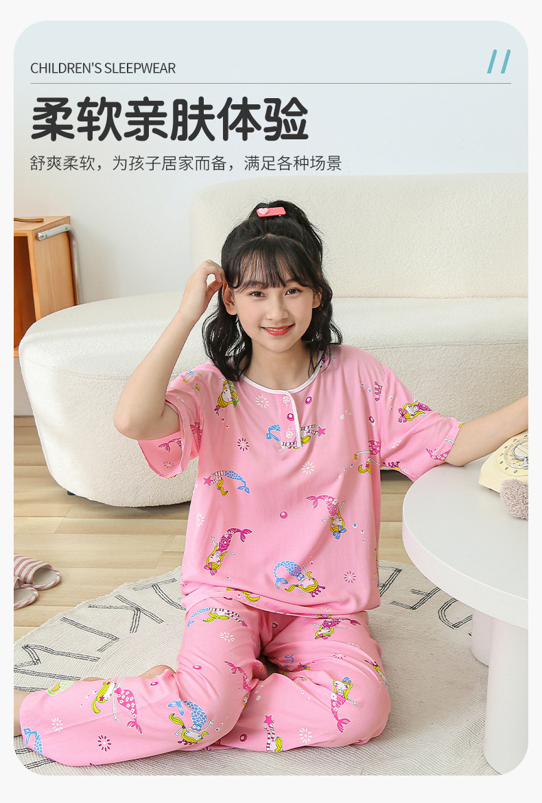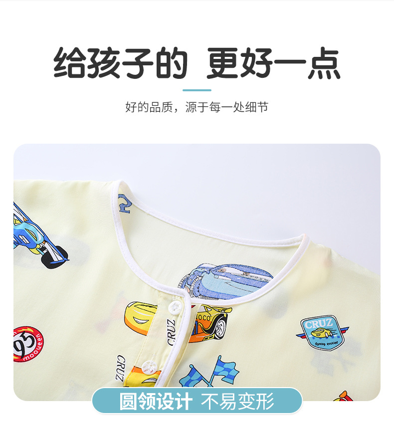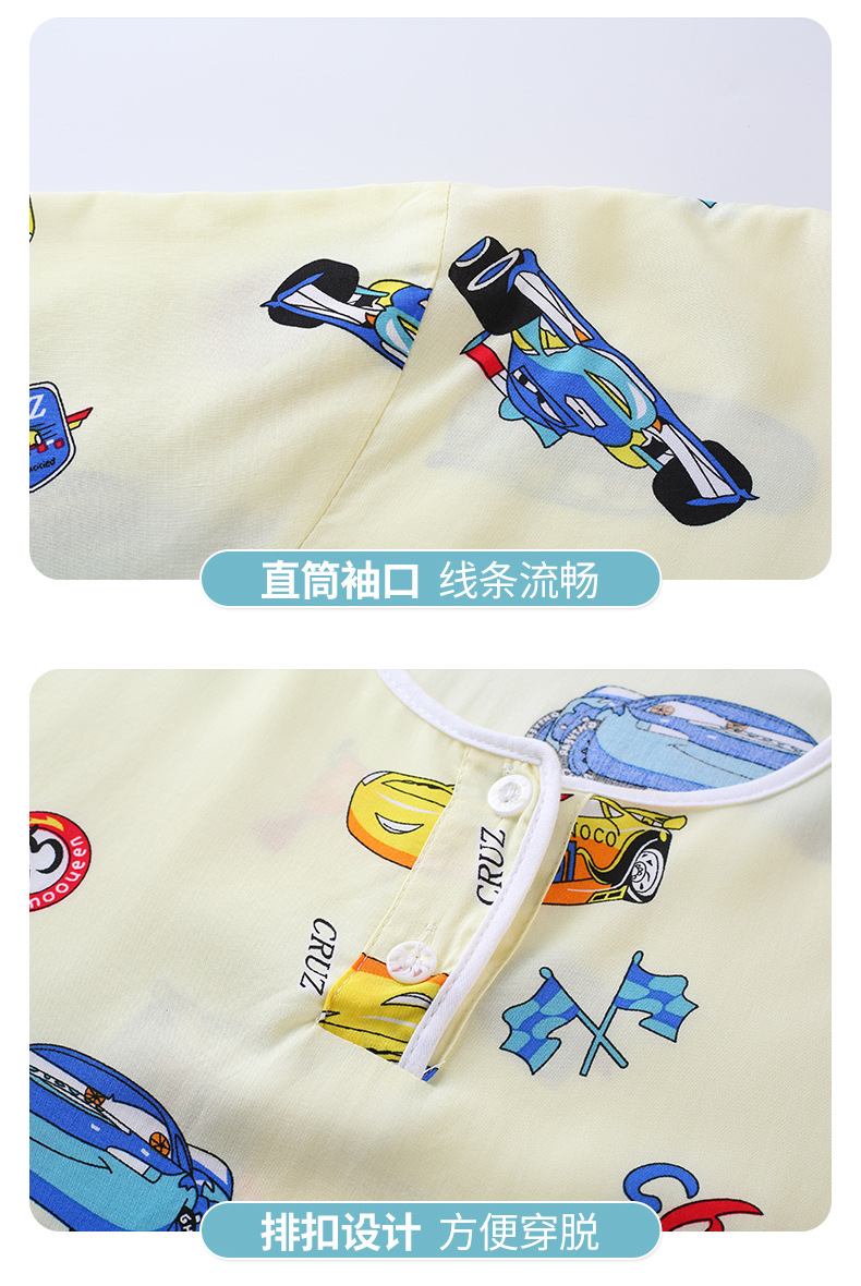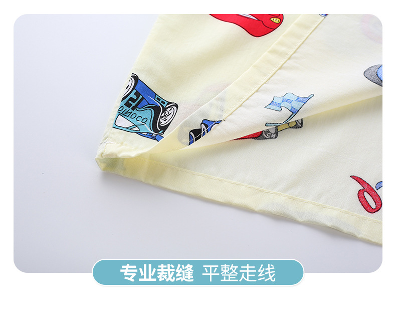 면 실크 잠옷 소년 여름 남자의 긴팔 면 실크 세트 중학생 청소년 남자의 가정복스토어 가기