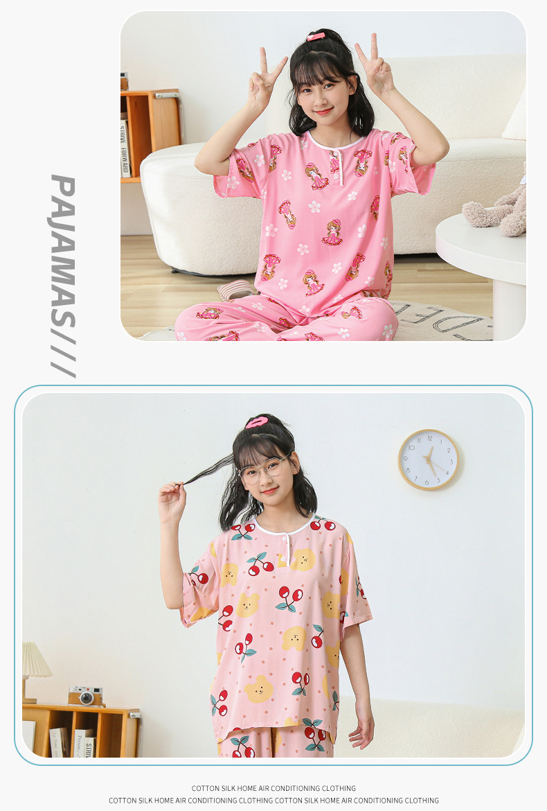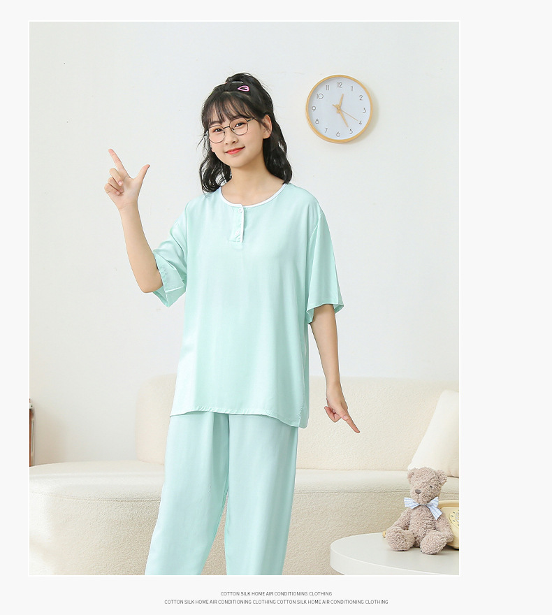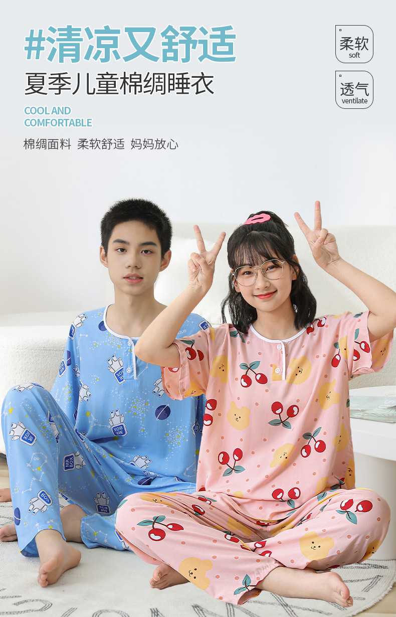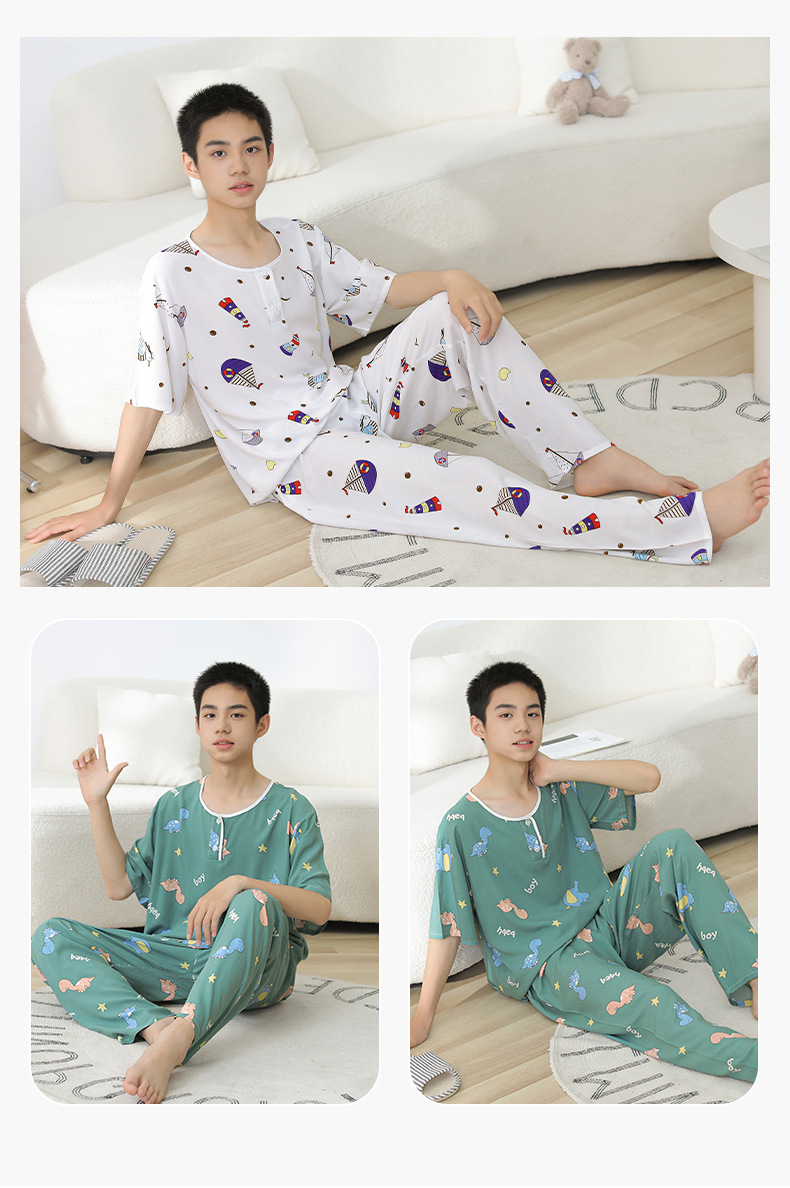 면 실크 잠옷 소년 여름 남자의 긴팔 면 실크 세트 중학생 청소년 남자의 가정복