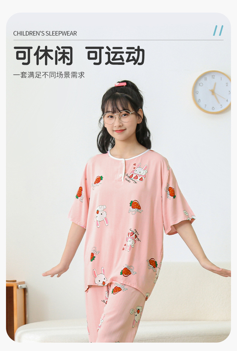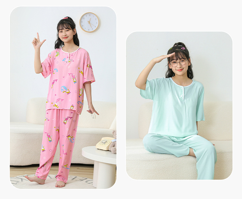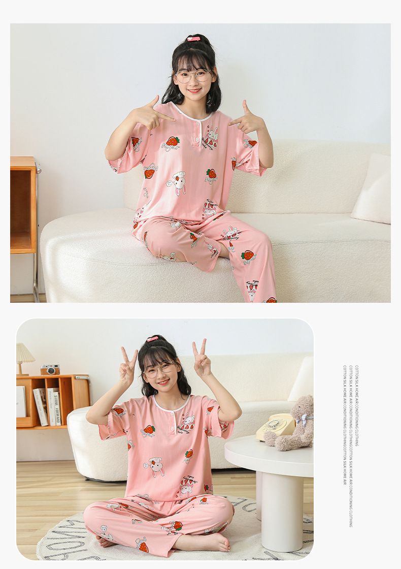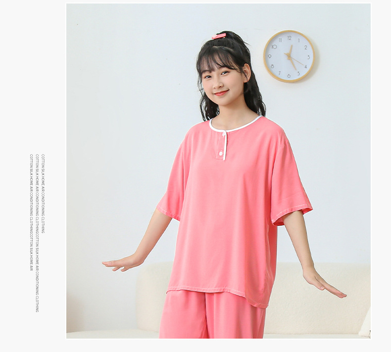 면 실크 잠옷 소년 여름 남자의 긴팔 면 실크 세트 중학생 청소년 남자의 가정복