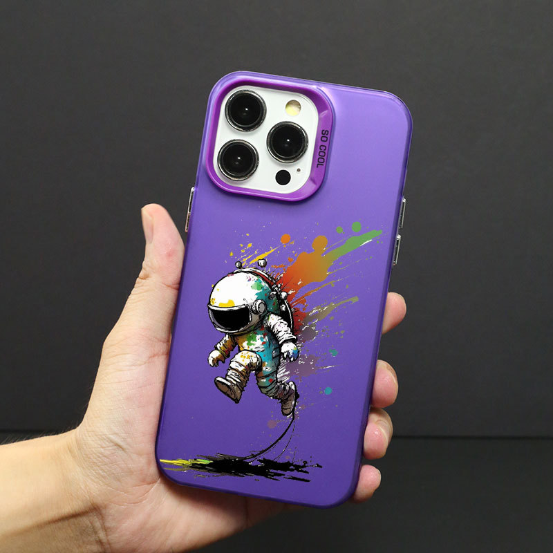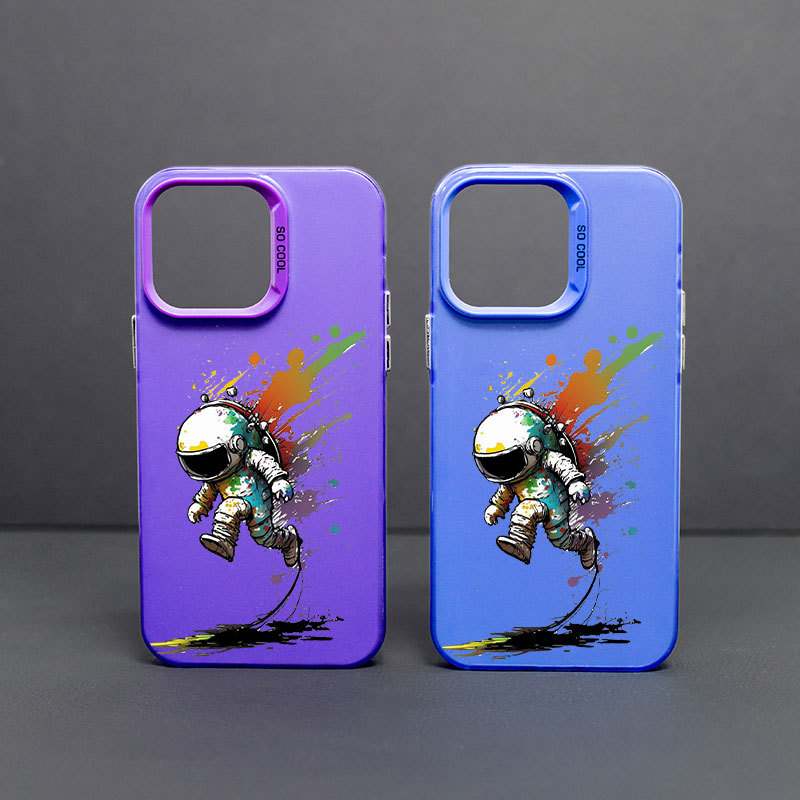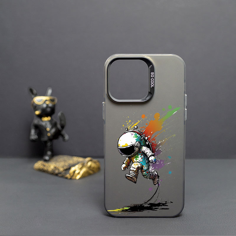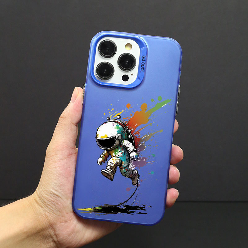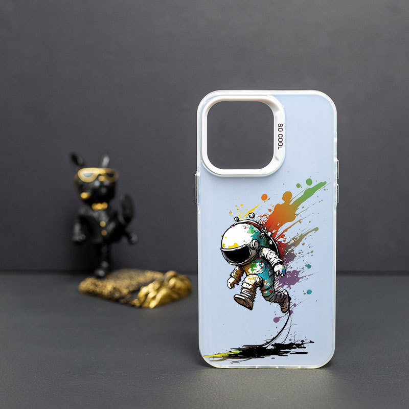 애플 14/13/12Pro 최대 낙하 방지 14PRO 피부감 스크럽 TPU 보호 커버용 낙서 우주 비행사스토어 가기
