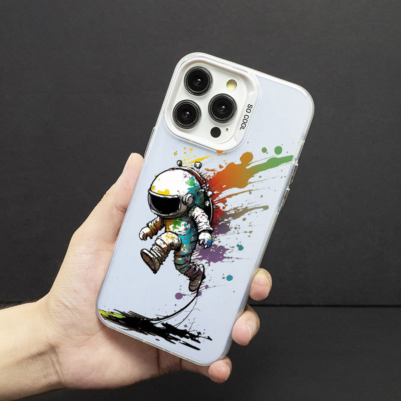 애플 14/13/12Pro 최대 낙하 방지 14PRO 피부감 스크럽 TPU 보호 커버용 낙서 우주 비행사