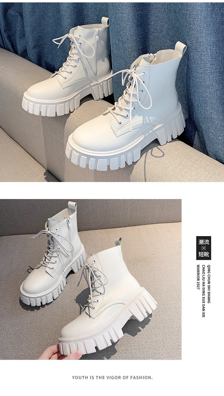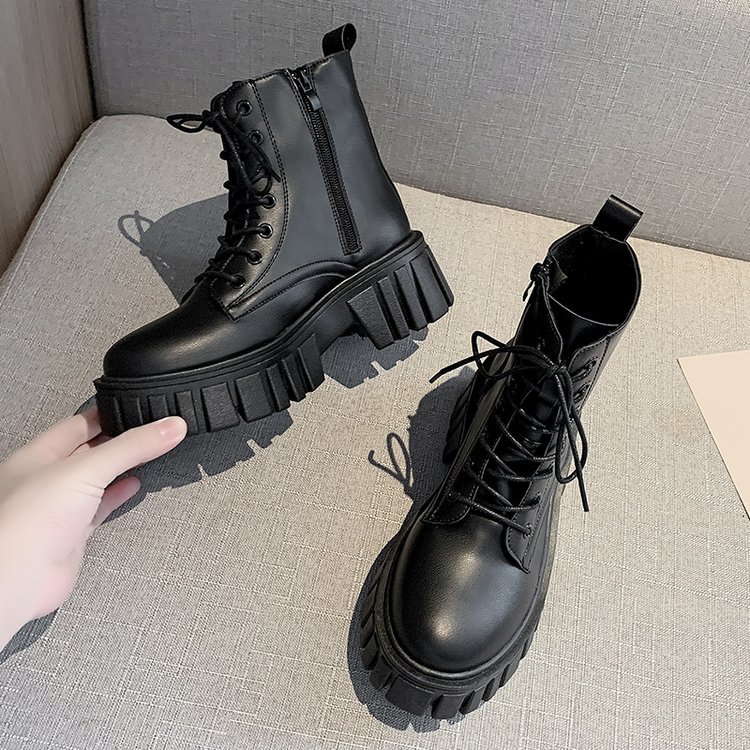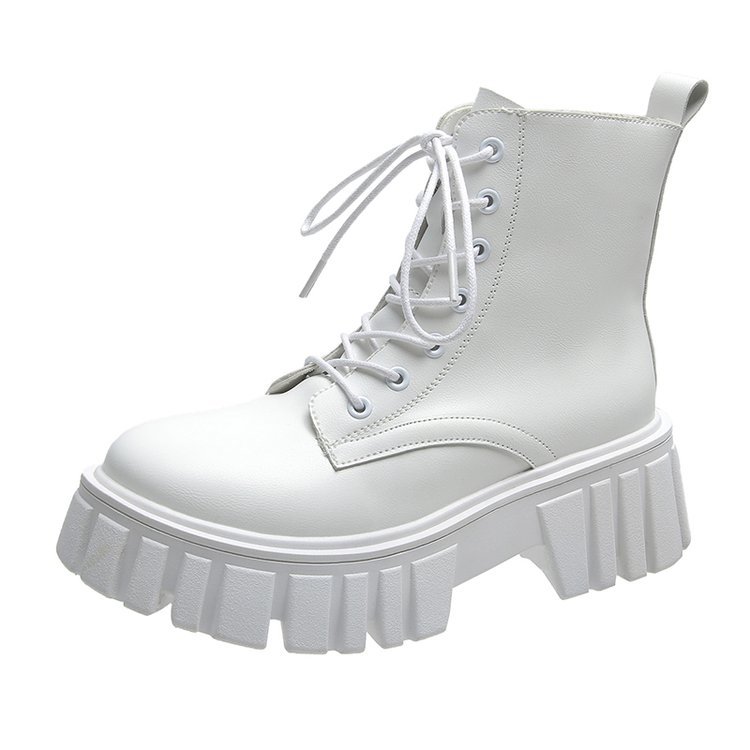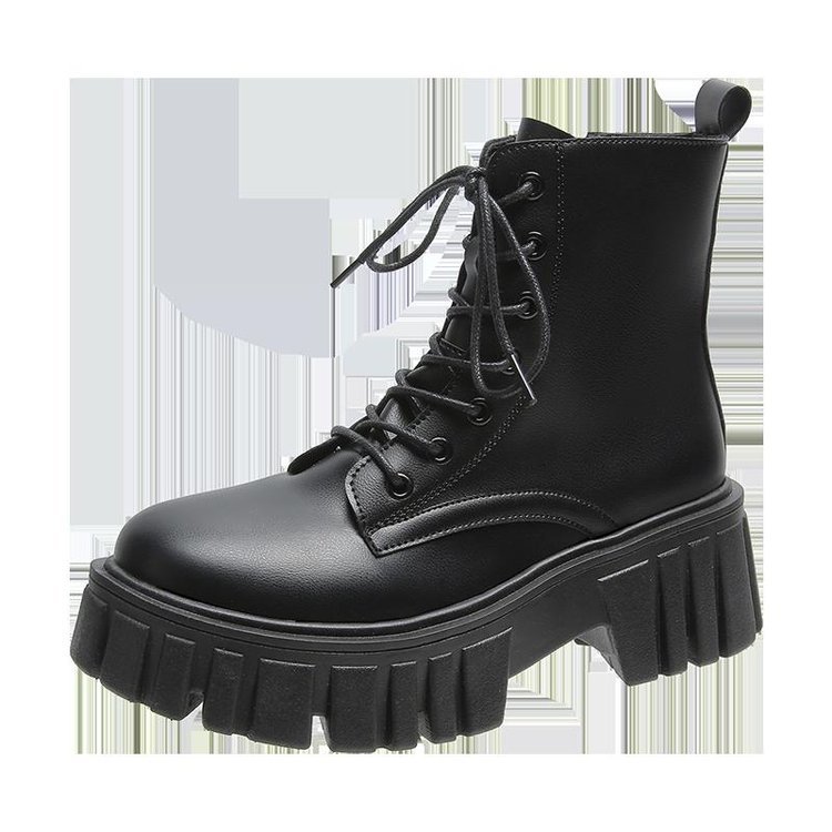 개인화 된 부츠 2023 가을과 겨울 새로운 숙녀 가죽 부츠 두꺼운 바닥 라운드 헤드 레이스 업 짧은 부츠 캐주얼 마틴 부츠 여성 도매스토어 가기
