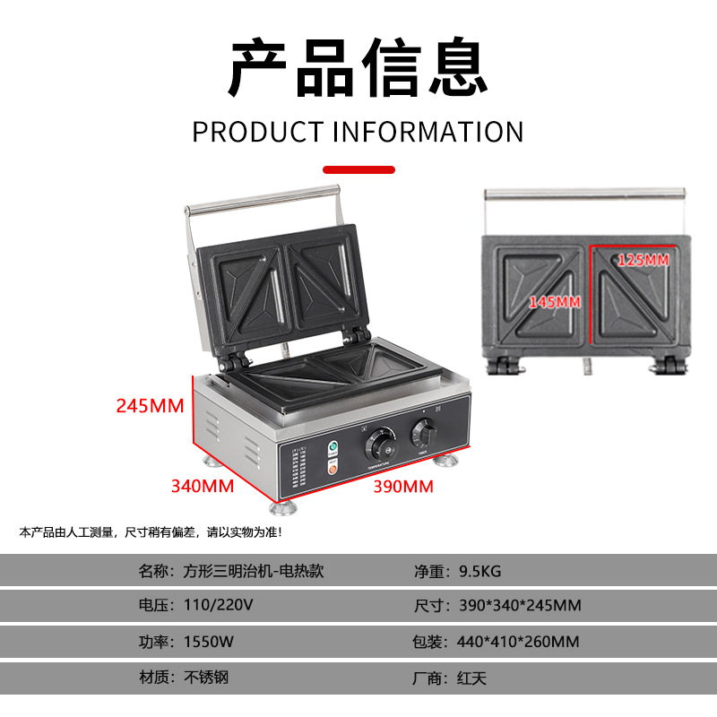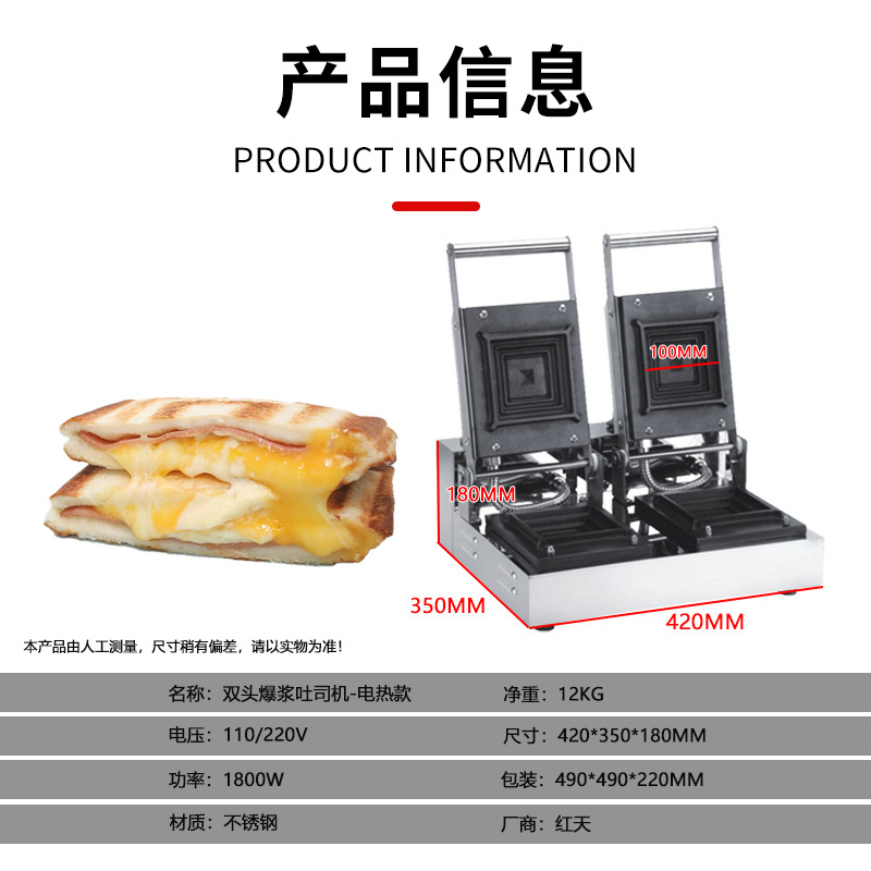 상업용 열압샌드위치메이커, 토스터, 사각빵기, 양면발열 아침식사기, 국경 간 삼각형 토스트기