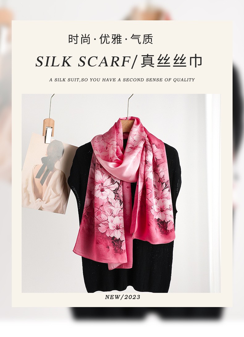 봄과 가을 새로운 항저우 우아한 모든 매치 실크 스카프 뽕나무 실크 여성 패션 자외선 차단제 여행 긴 스카프스토어 가기