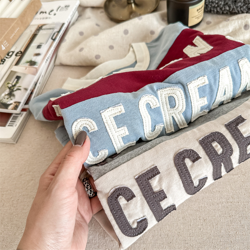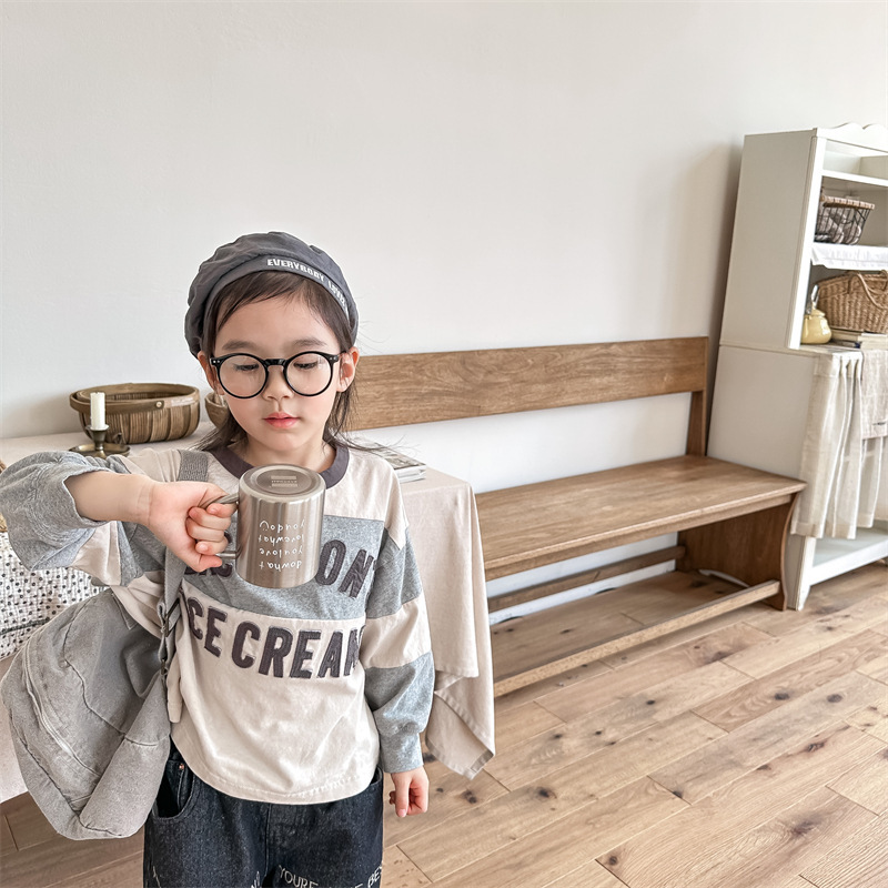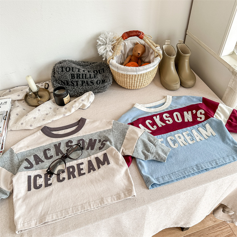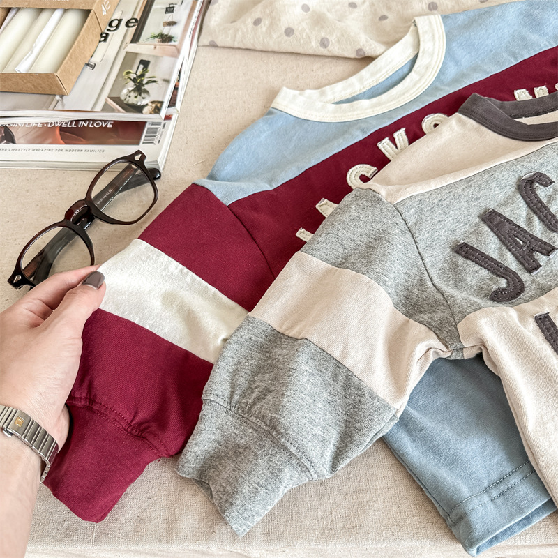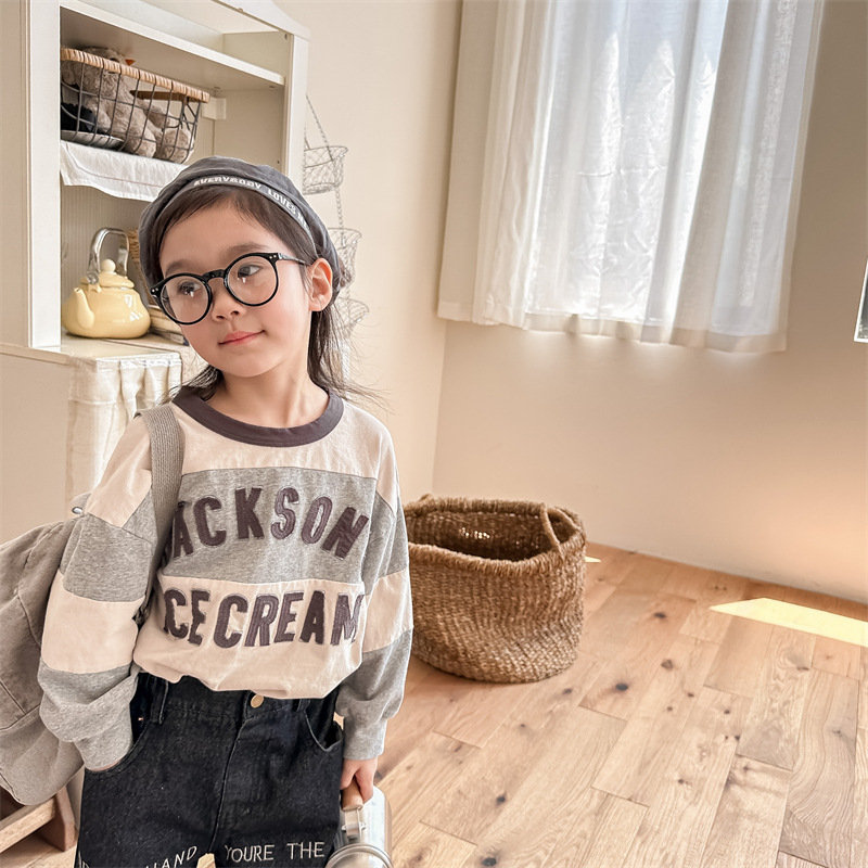 2024 년 가을 어린이 긴팔 티셔츠 소년 소녀 한국식 컬러 블록 그림 편지 자수 캐주얼 베이스 셔츠 탑