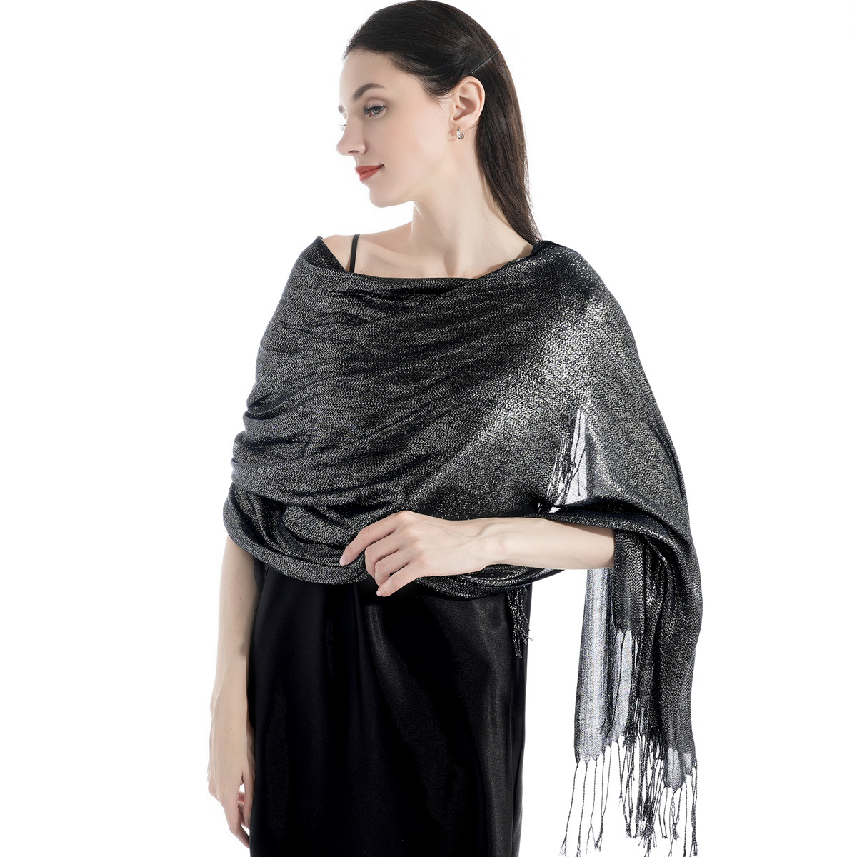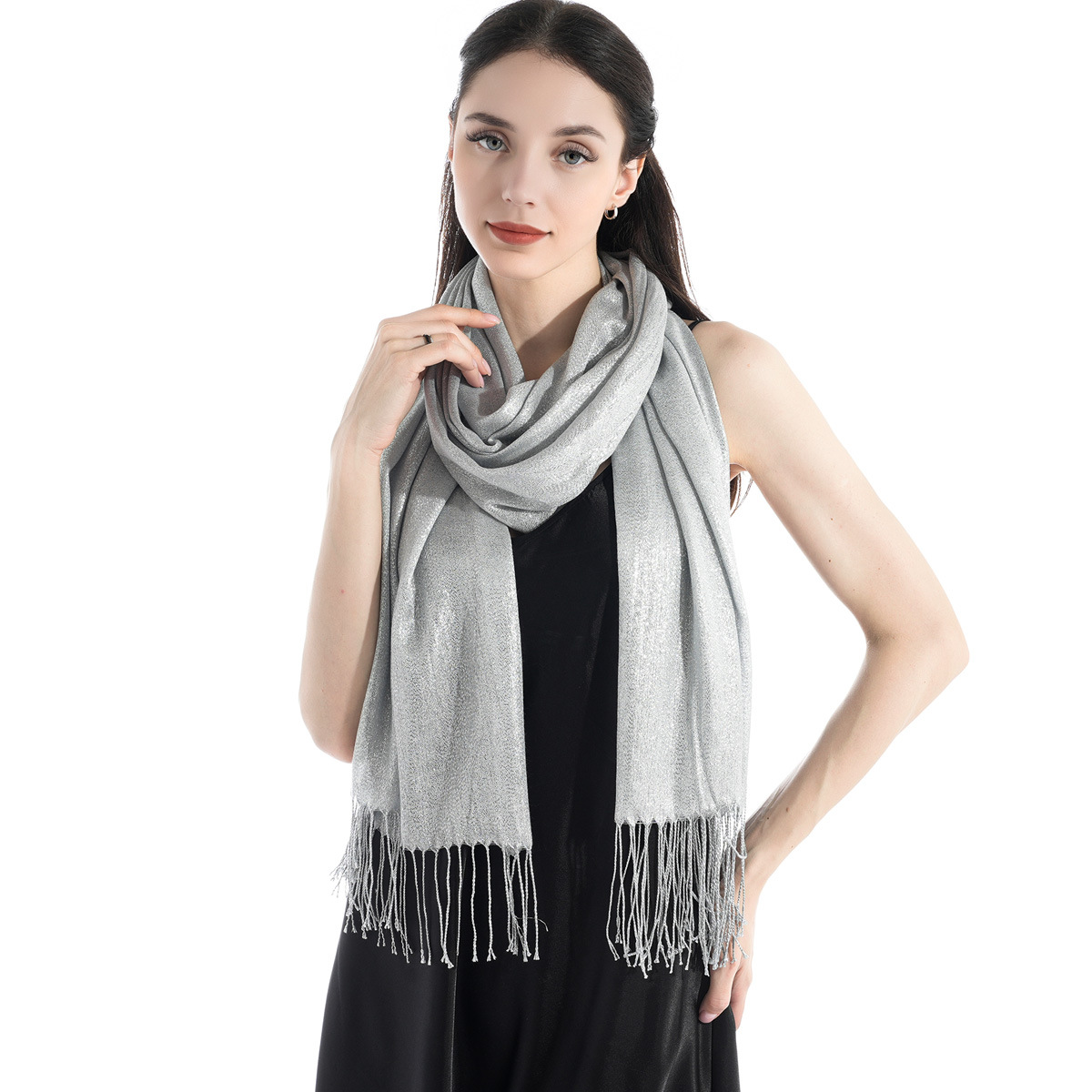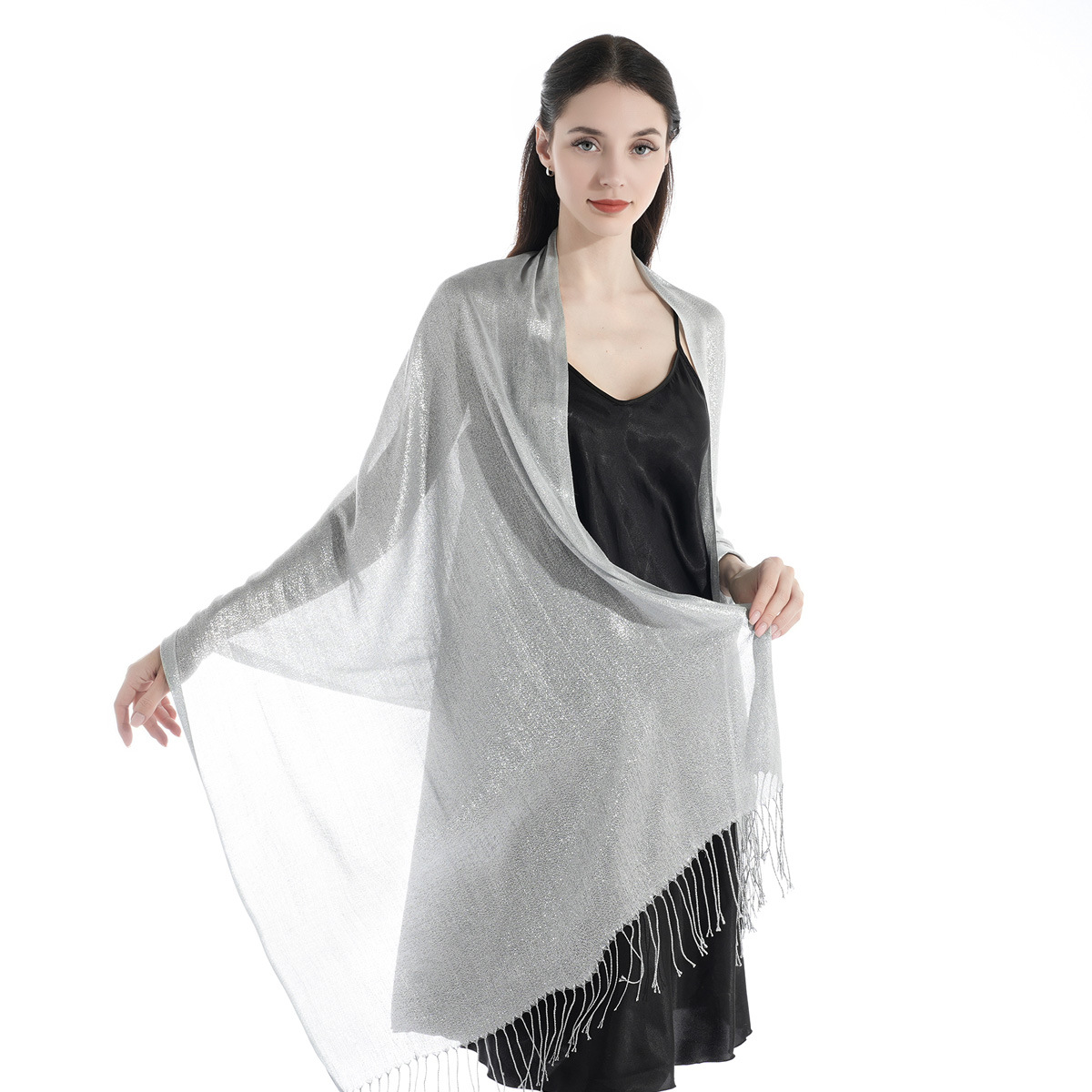 은색 스카프의 유럽 및 미국 국경 간 여성용 숄 프린지 실버 댄스 파티 이브닝 파티 스카프의 국경 간 특별 공급