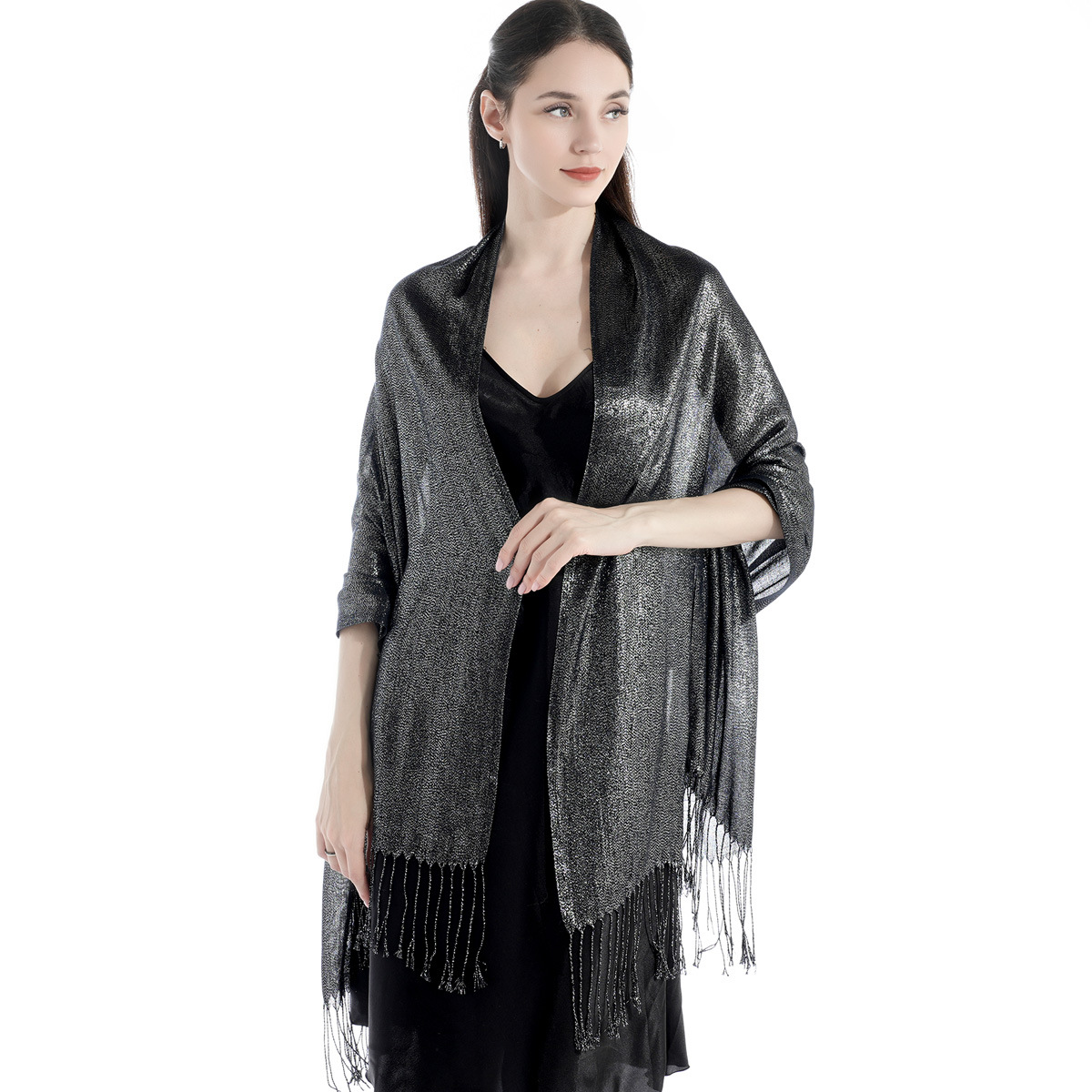 은색 스카프의 유럽 및 미국 국경 간 여성용 숄 프린지 실버 댄스 파티 이브닝 파티 스카프의 국경 간 특별 공급스토어 가기