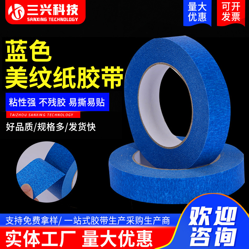 고접착 블루 마스킹 종이 테이프 도매 자동차 스프레이 페인트 마스킹 테이프 잔류 종이 테이프 없음