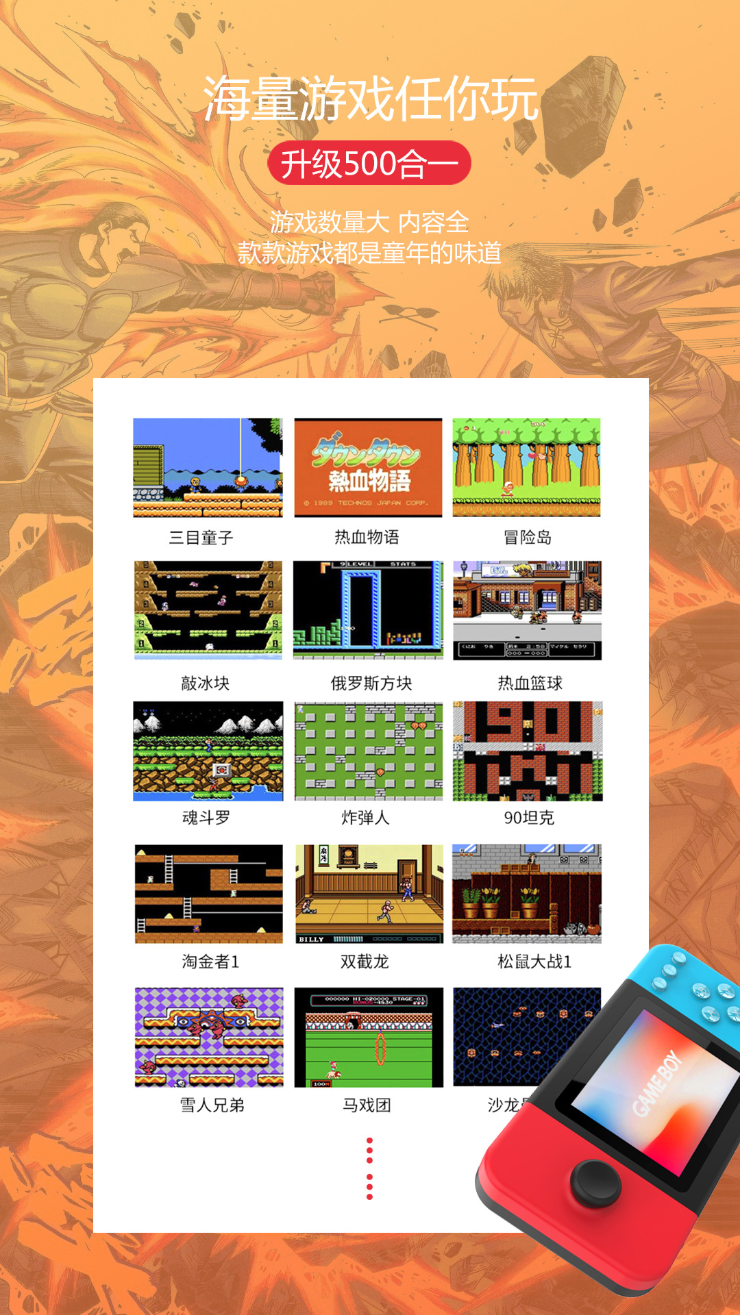 D-20 핸드 헬드 게임기 향수 복고풍 고화질 더블 조이스틱 미니 8 비트 머신 500스토어 가기