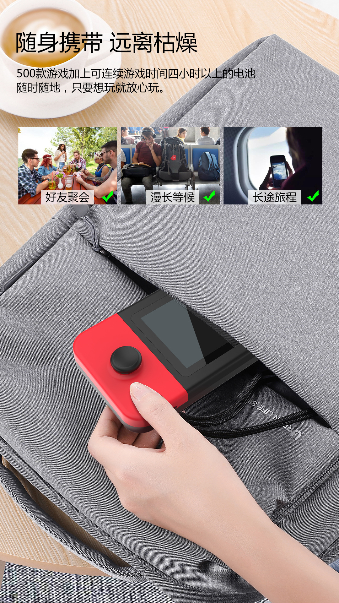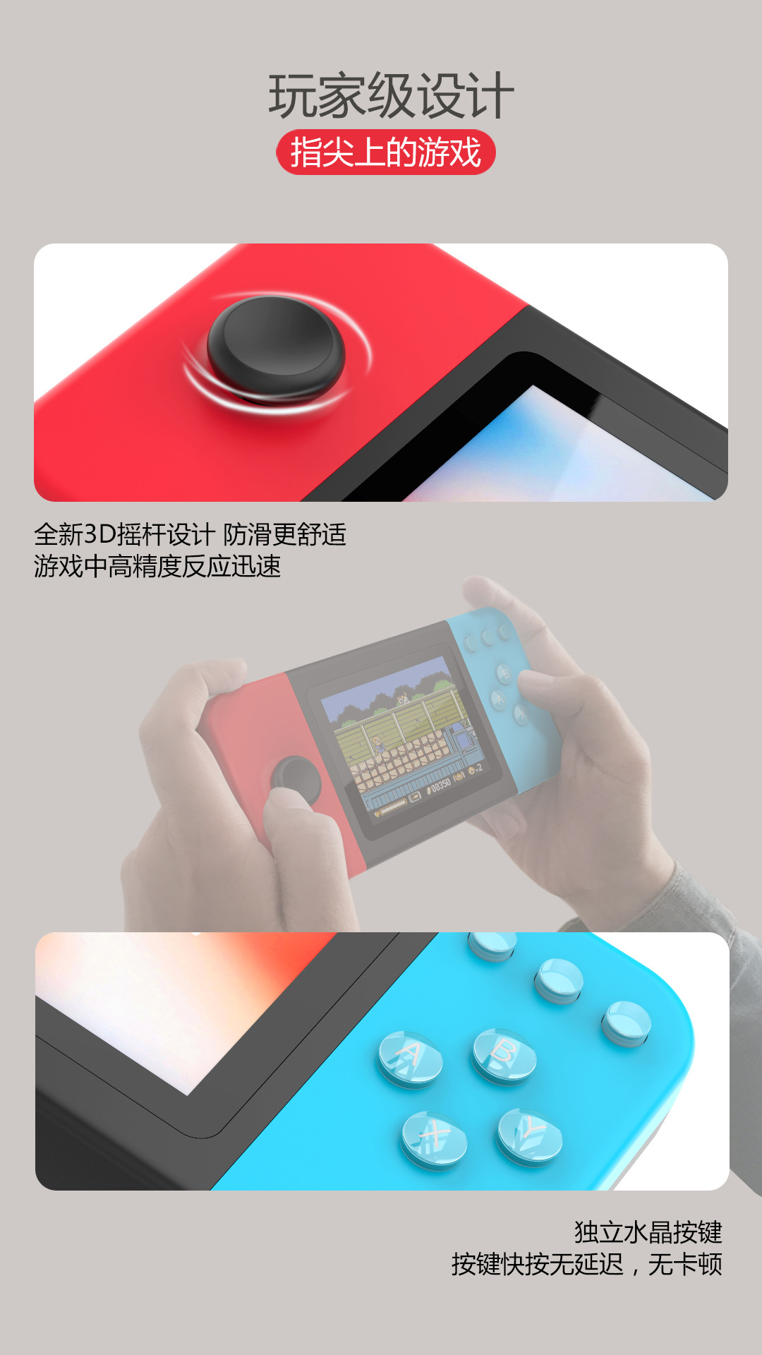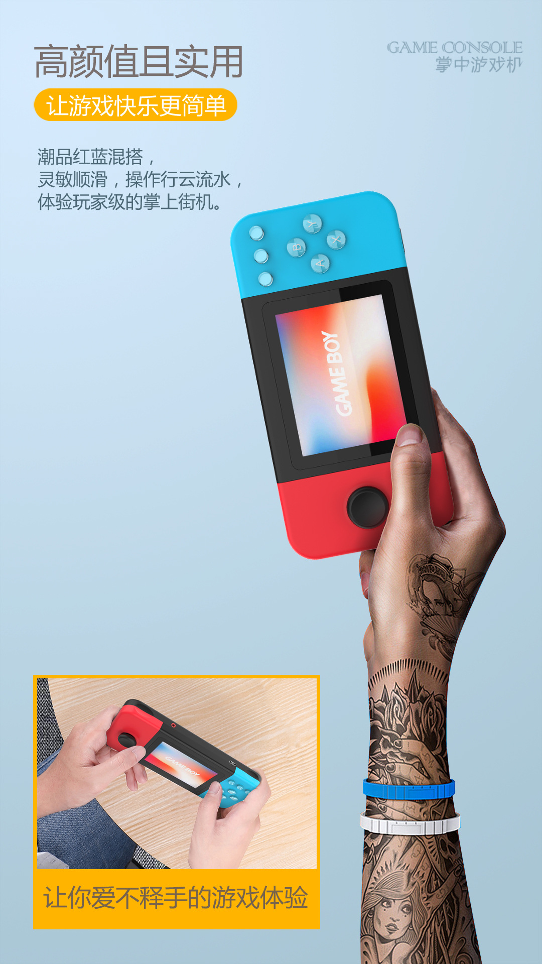D-20 핸드 헬드 게임기 향수 복고풍 고화질 더블 조이스틱 미니 8 비트 머신 500