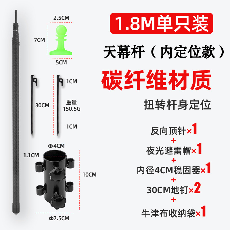 • 스카이 커튼 봉 1.8 m + 검은 골무 + 번개 보호 캡