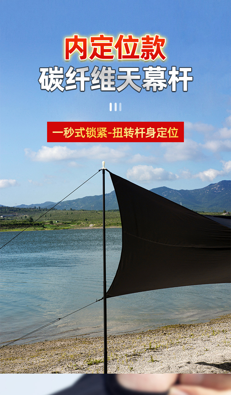 탄소 섬유 캐노피 지원 막대 내부 위치 스타일 야외 캠핑 텐트로드 액세서리 로타리 잠금 차양 막대