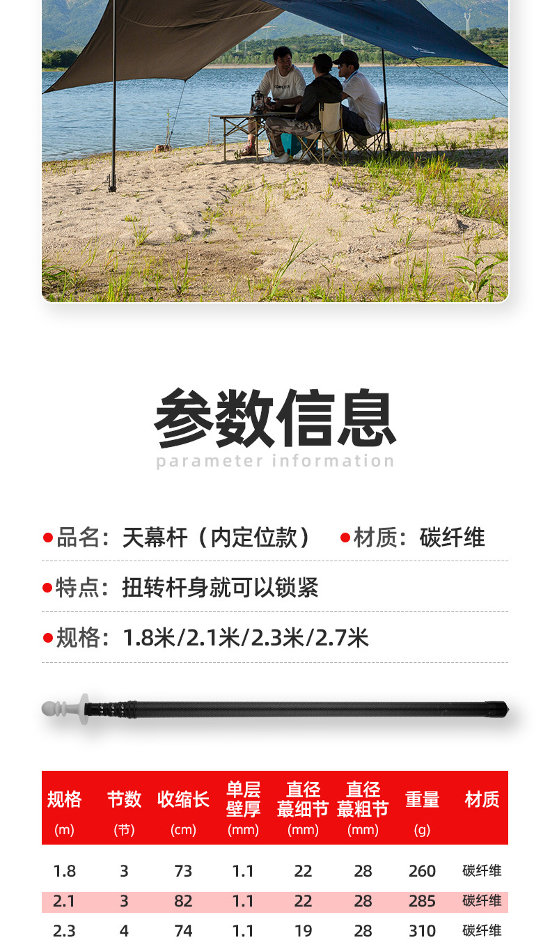 탄소 섬유 캐노피 지원 막대 내부 위치 스타일 야외 캠핑 텐트로드 액세서리 로타리 잠금 차양 막대스토어 가기