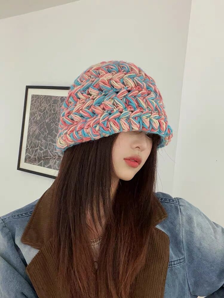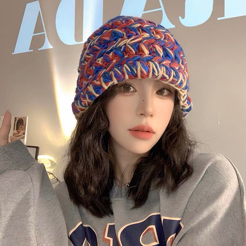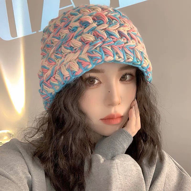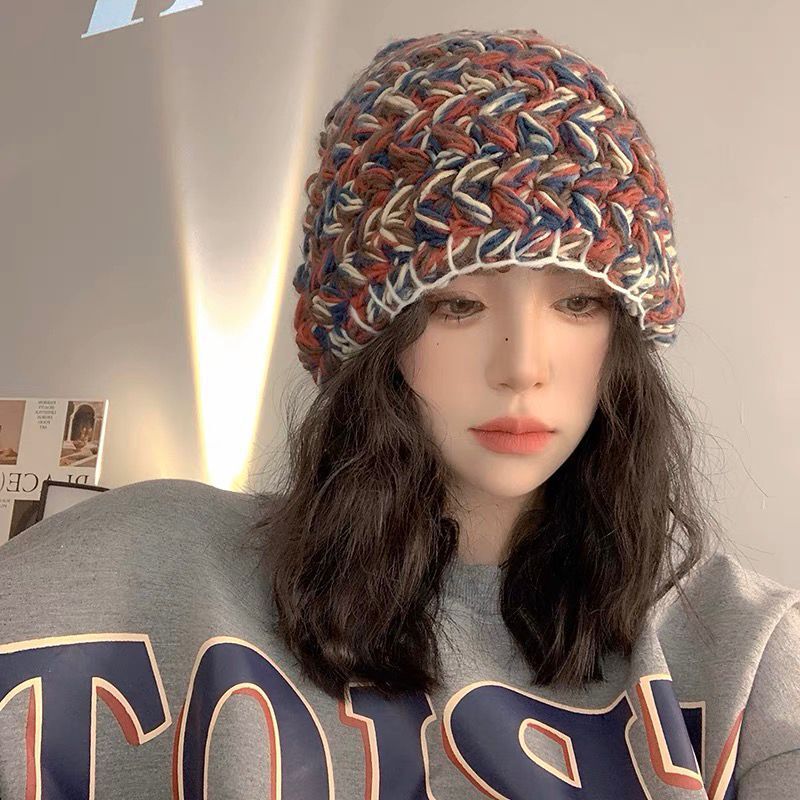 컬러 울 모자 가을과 겨울 두꺼운 따뜻한 두꺼운 바늘 수제 니트 모자 여성용 틈새 모든 매치 달콤한 귀 보호 모자스토어 가기