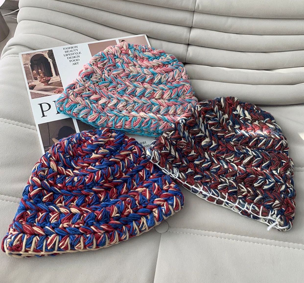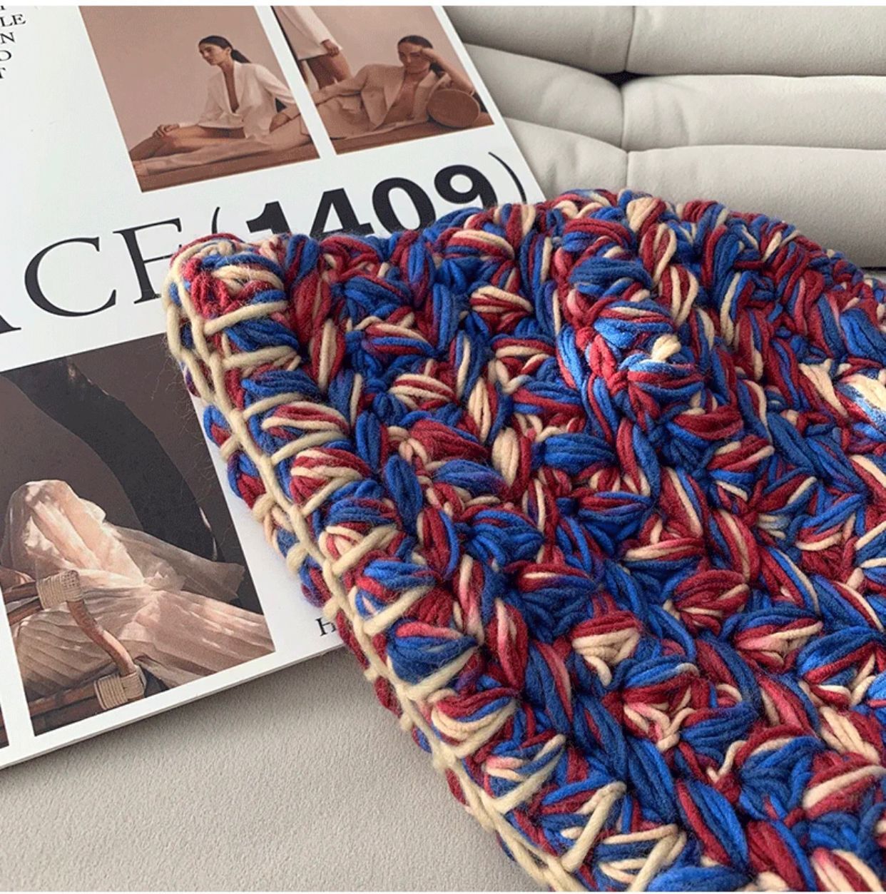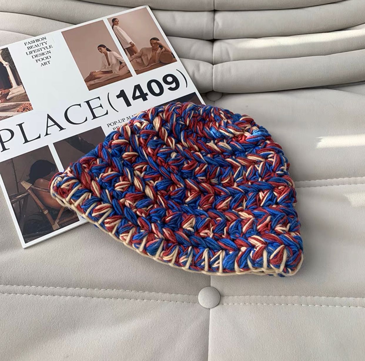 • 혼합 색상 양모 모자-빨간색과 파란색