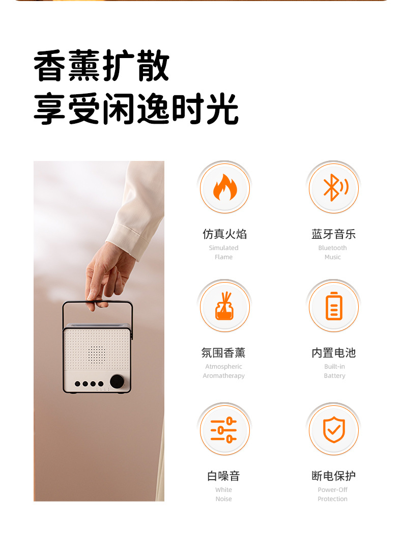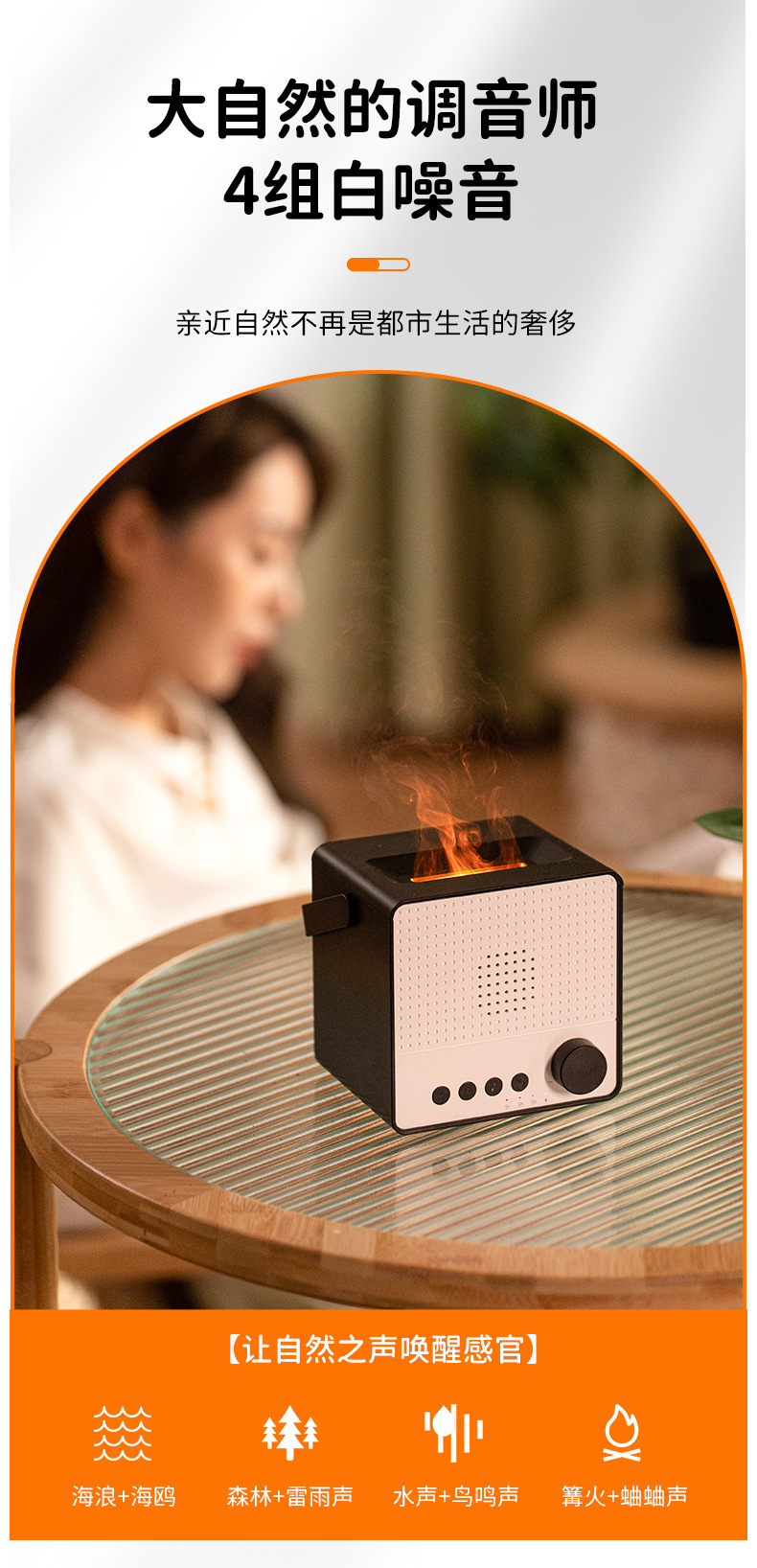 2023 크로스 보더 새로운 화이트 노이즈 플레임 아로마 디퓨저 블루투스 스피커 홈 데스크탑 안개 플레임 디퓨저