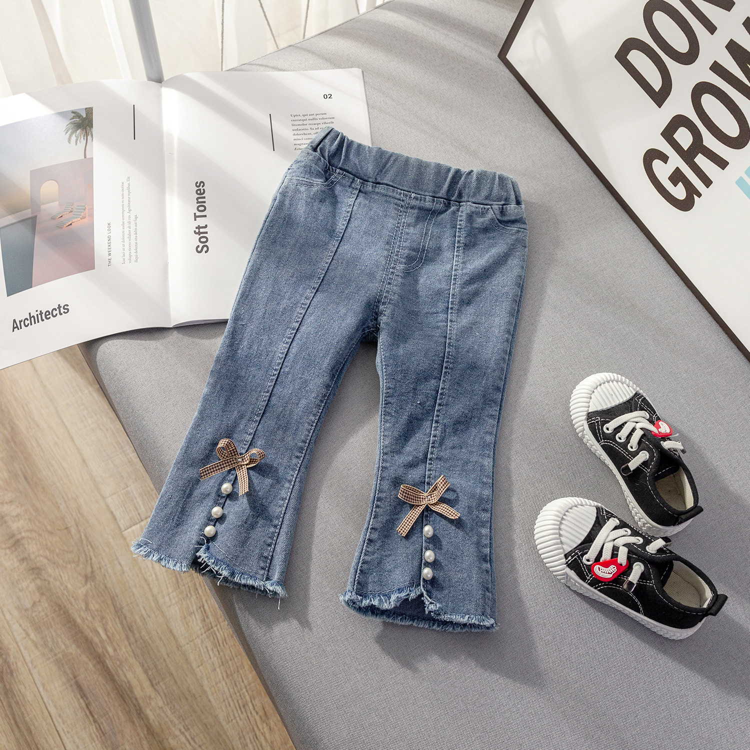 한국 아동복 봄 가을 신작 2025 여아 리본 청바지 여아 한국 스타일 트렌디 플레어 팬츠