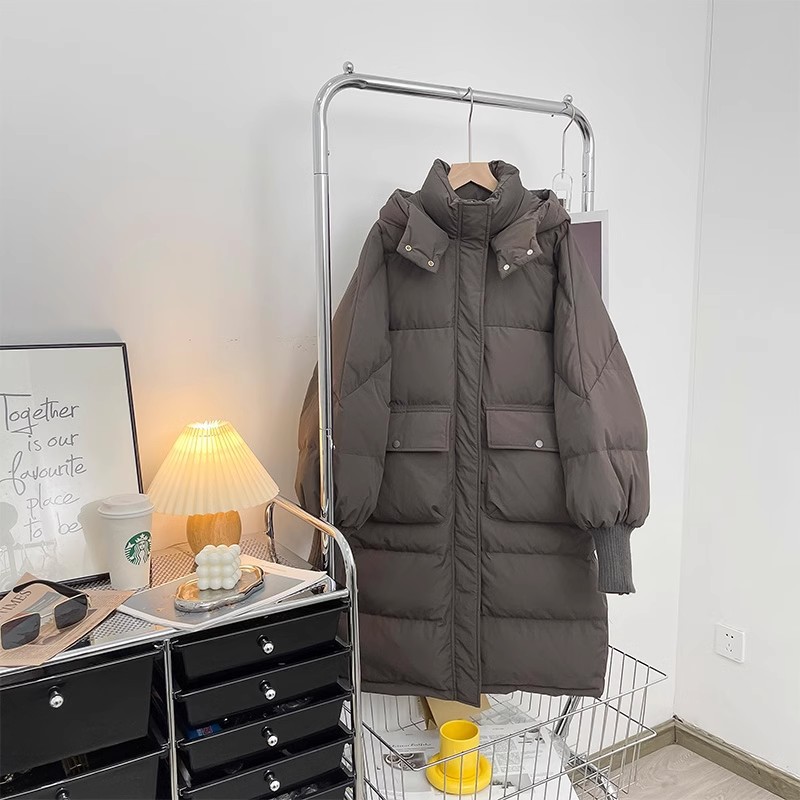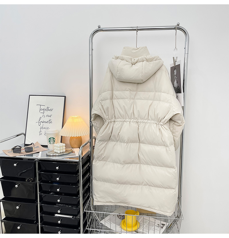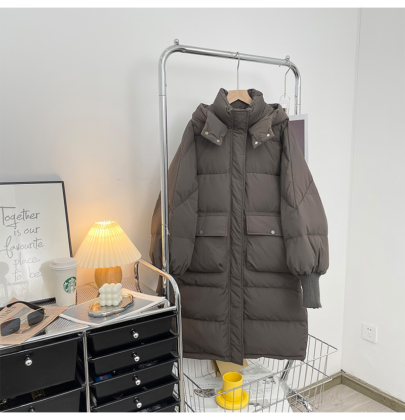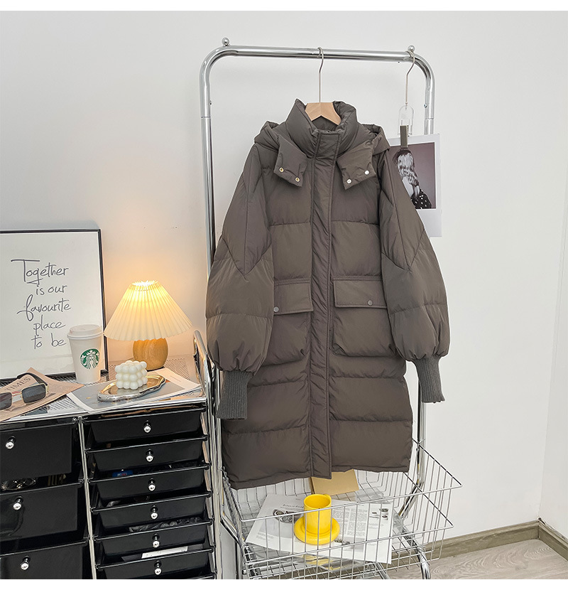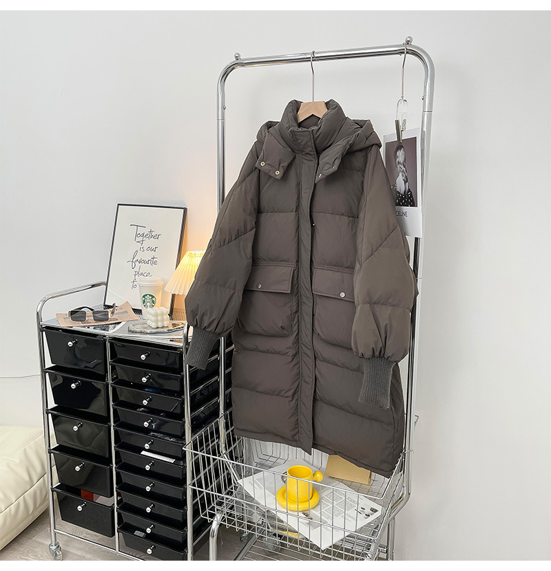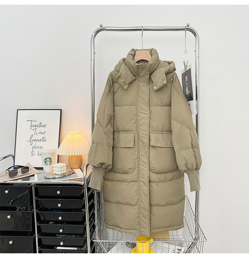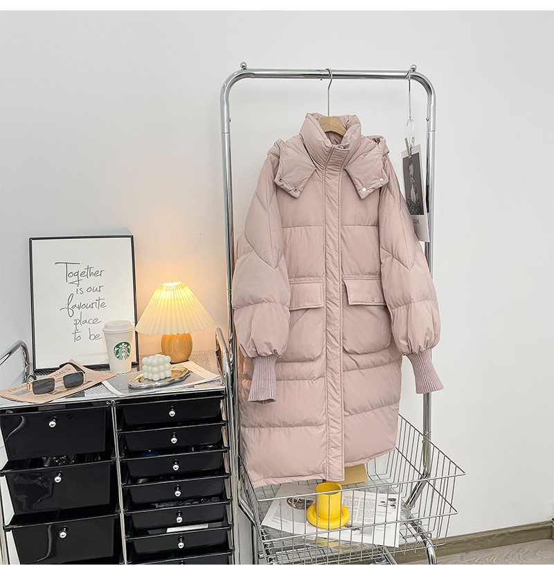 니트 슬리브 다운 재킷 여자의 긴 후드 두꺼운 흰색 오리 다운 재킷 겨울 2023 새로운 겨울 옷스토어 가기