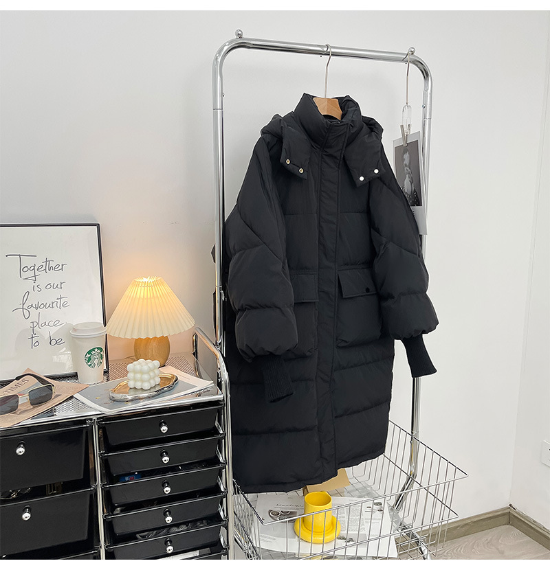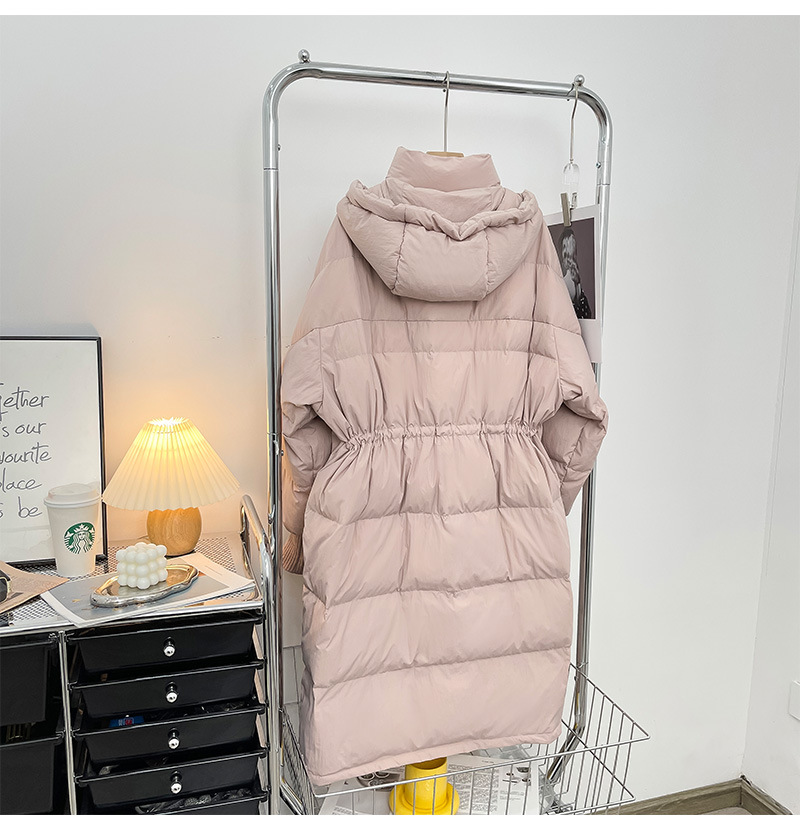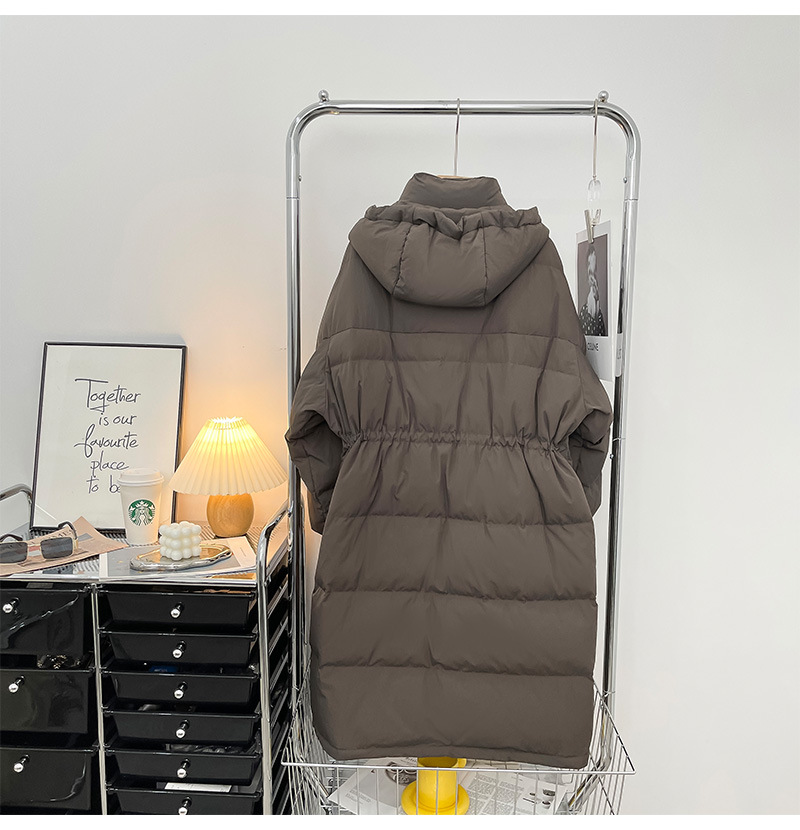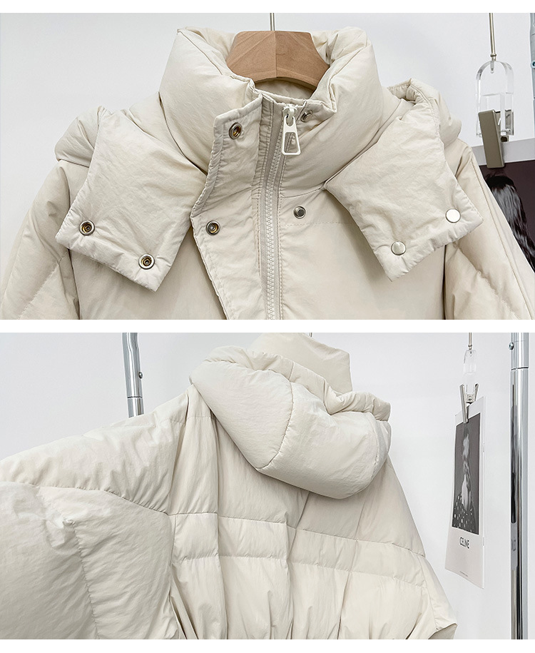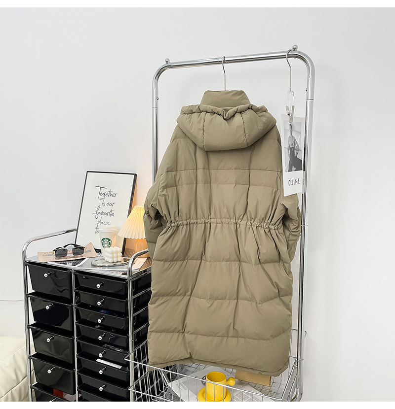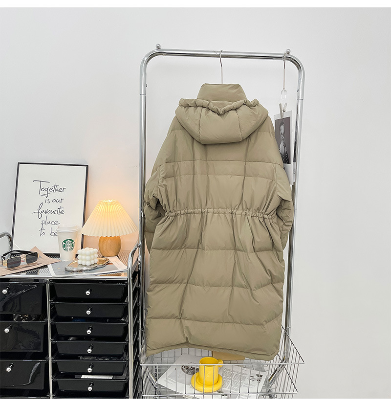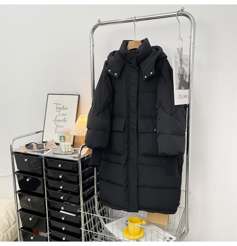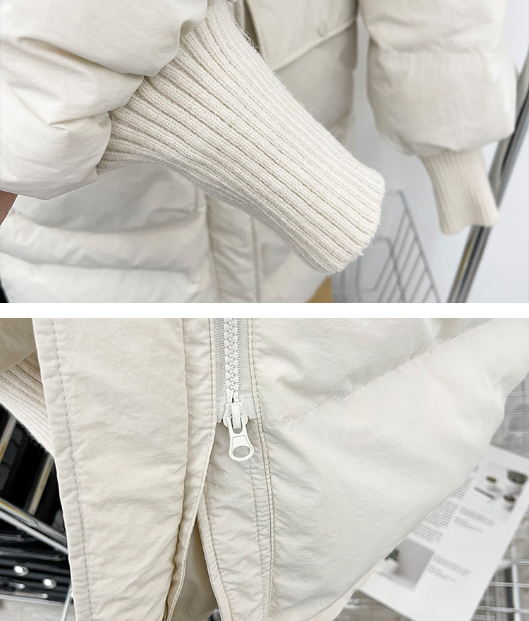 니트 슬리브 다운 재킷 여자의 긴 후드 두꺼운 흰색 오리 다운 재킷 겨울 2023 새로운 겨울 옷스토어 가기