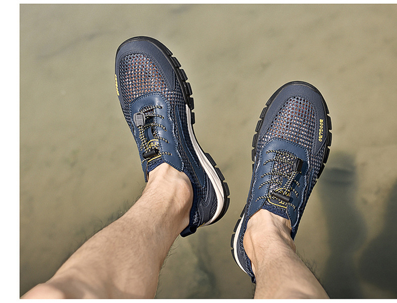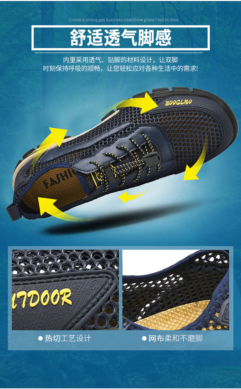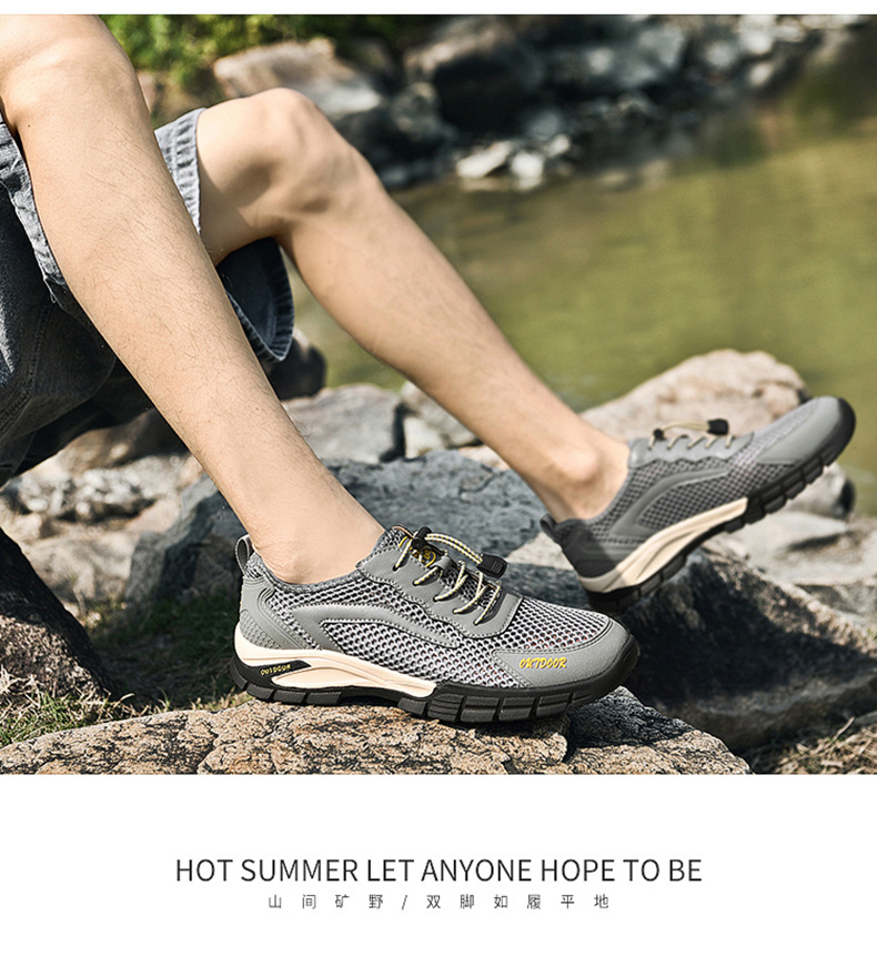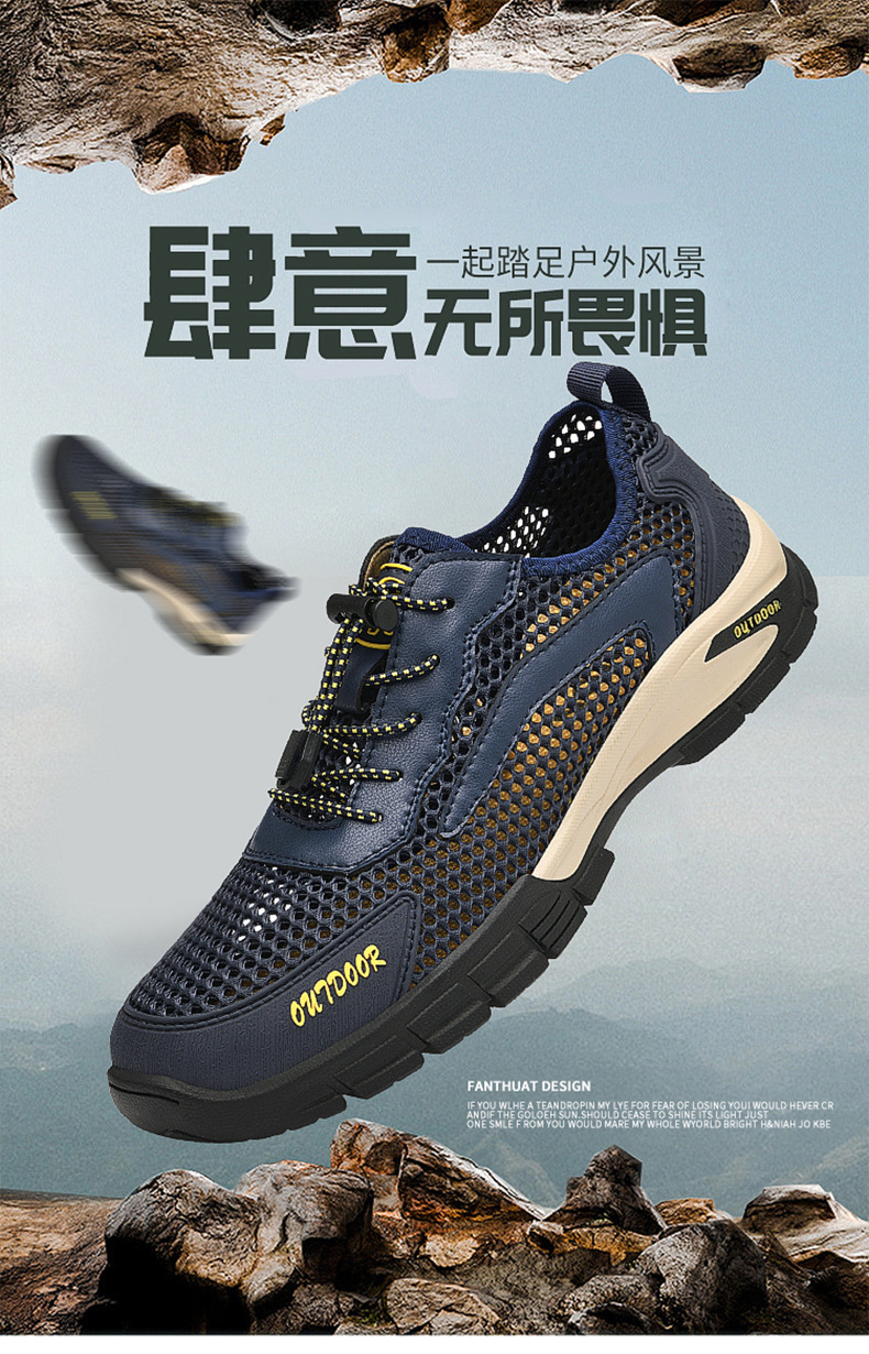 크로스 보더 플러스 사이즈 폭발 라운드 헤드 남성용 야외 메쉬 천 신발 스포츠 레저 패션 등산 하이킹 통기성 신발스토어 가기