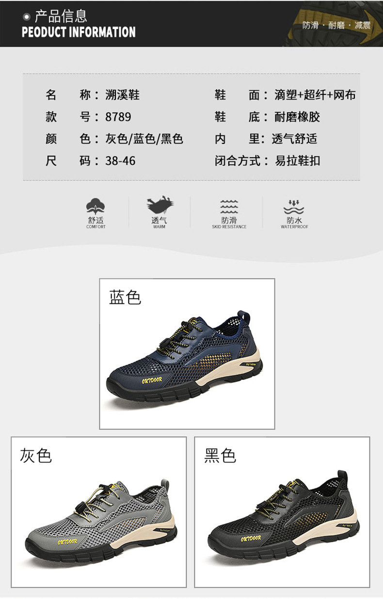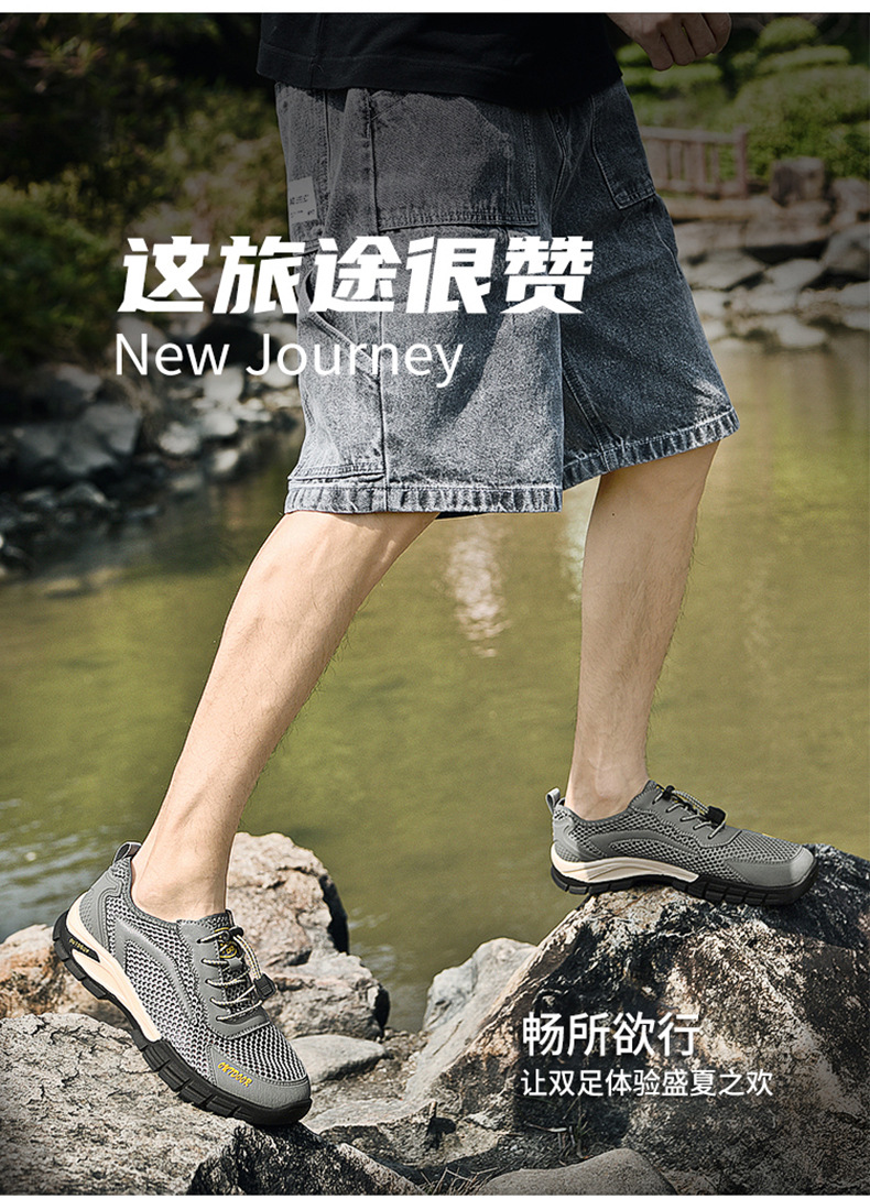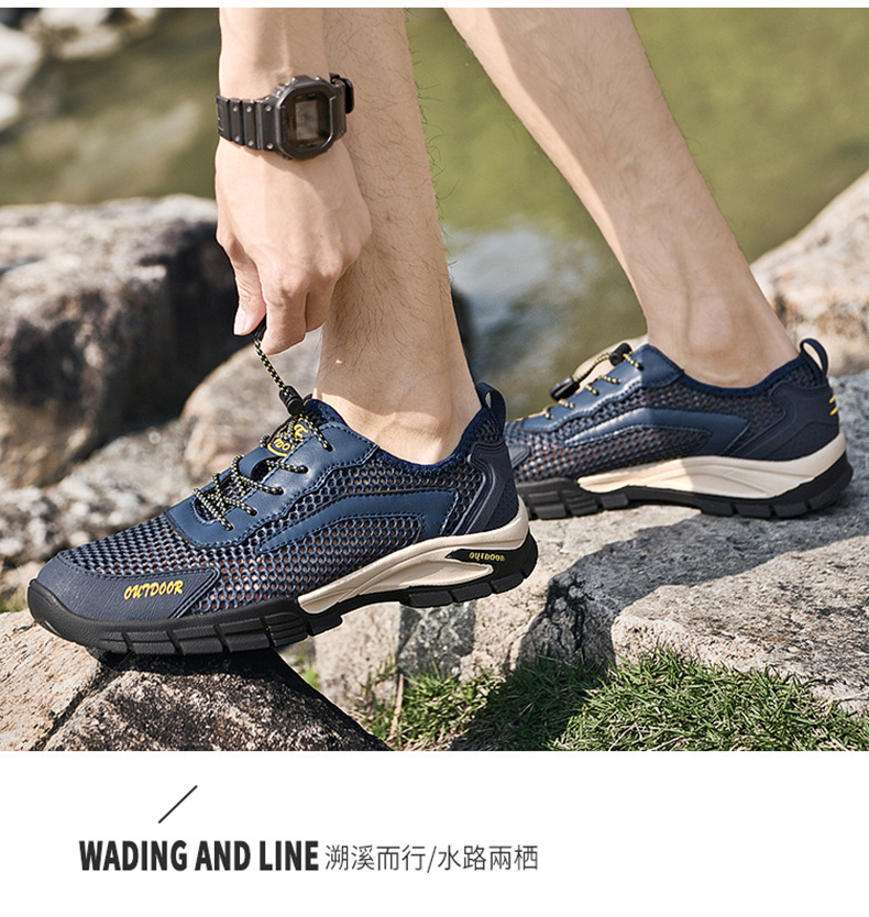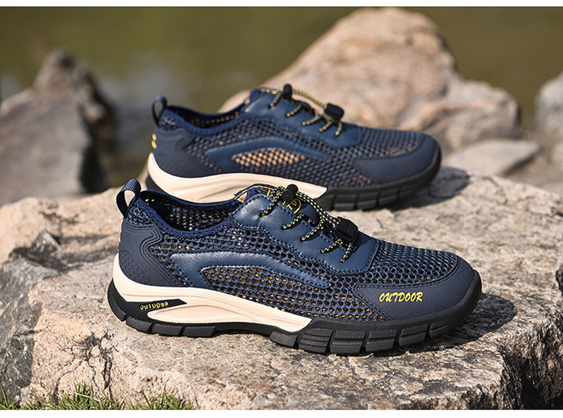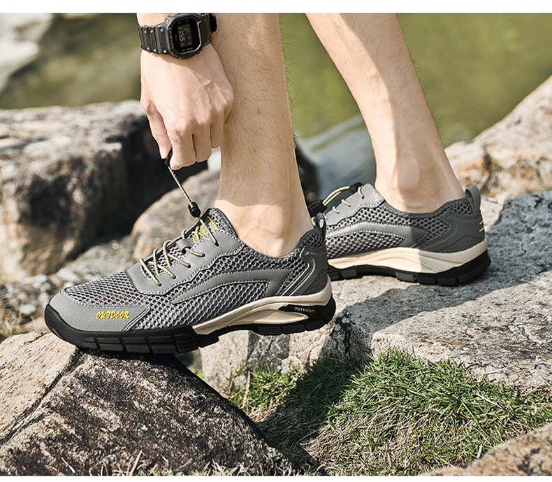 크로스 보더 플러스 사이즈 폭발 라운드 헤드 남성용 야외 메쉬 천 신발 스포츠 레저 패션 등산 하이킹 통기성 신발스토어 가기