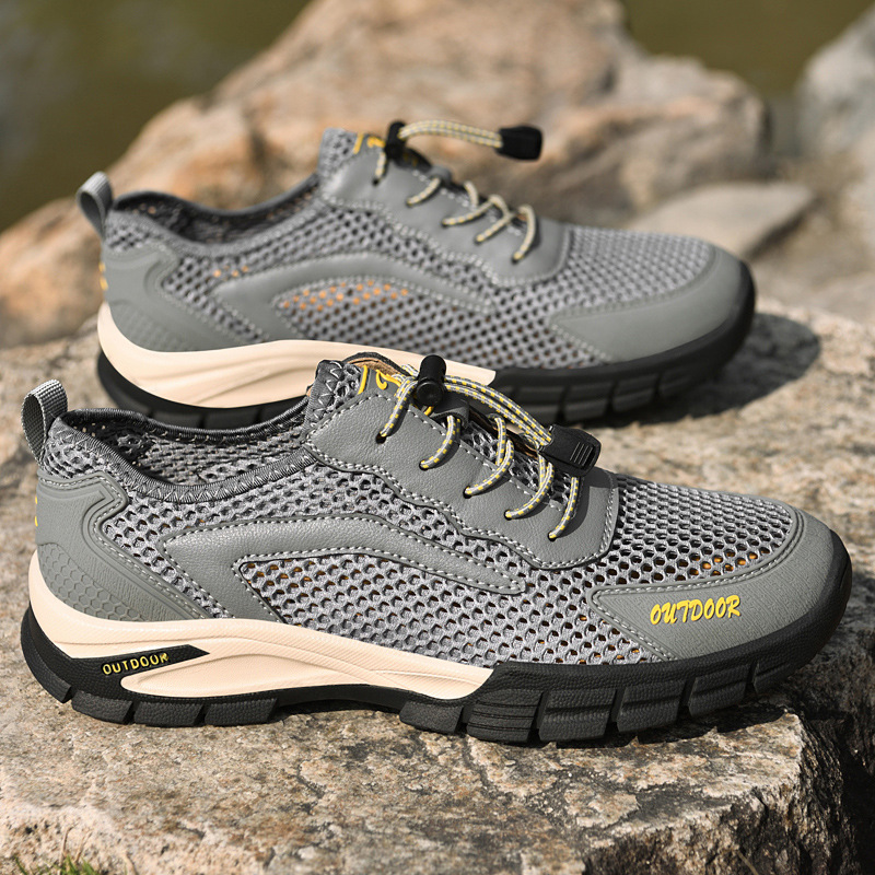 크로스 보더 플러스 사이즈 폭발 라운드 헤드 남성용 야외 메쉬 천 신발 스포츠 레저 패션 등산 하이킹 통기성 신발