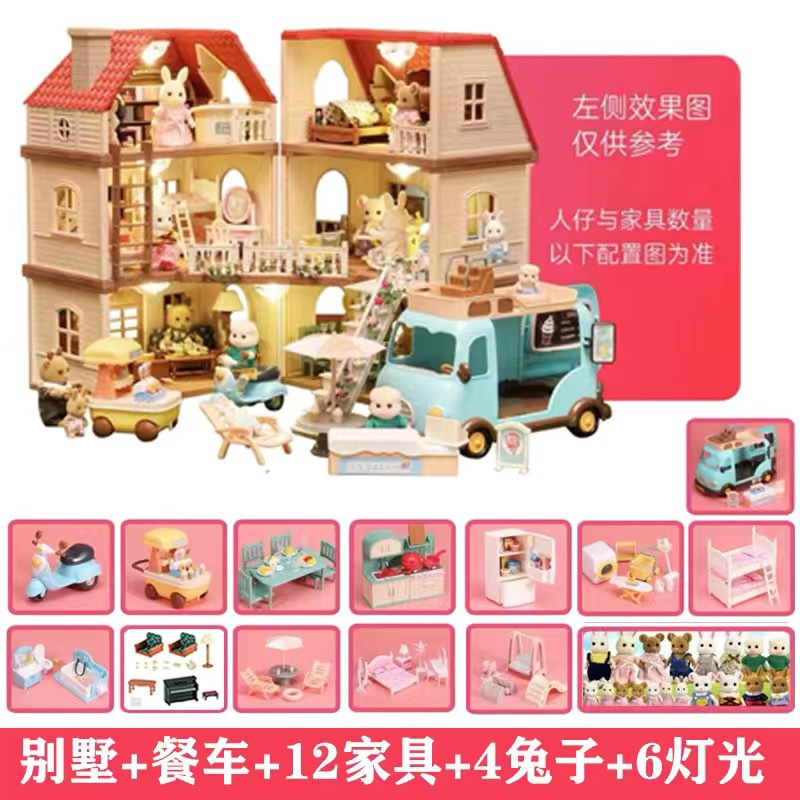 • 빌라 식당차 + 가구 12 개 + 인형 16 개 + 조명 6 개