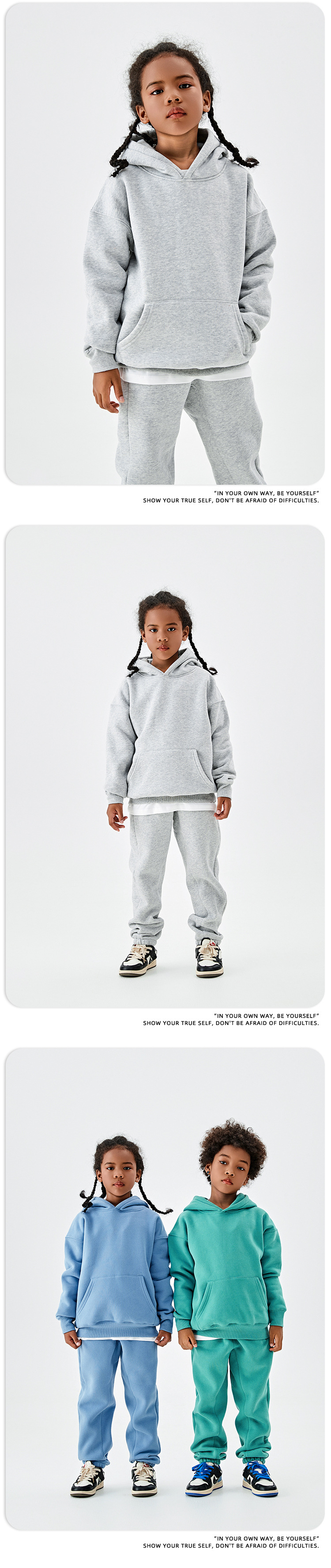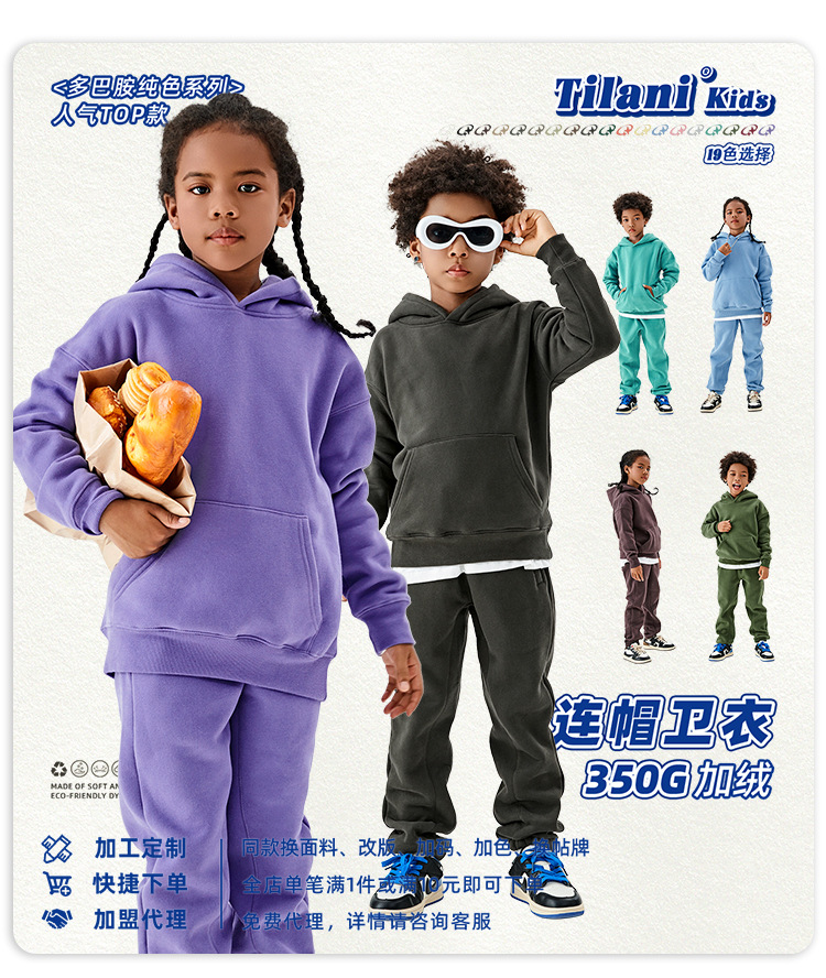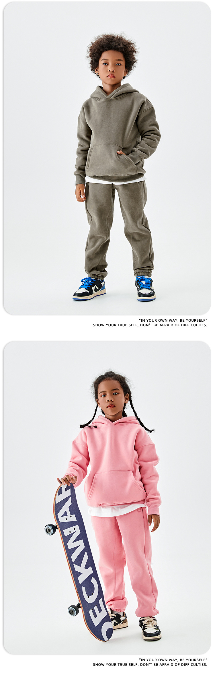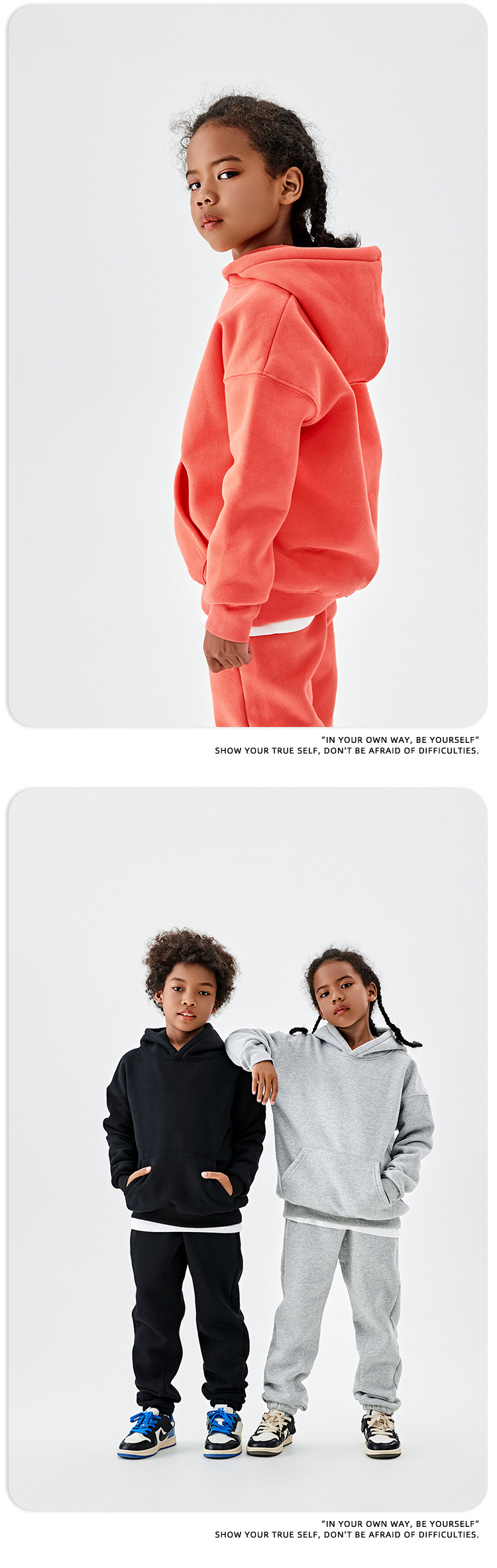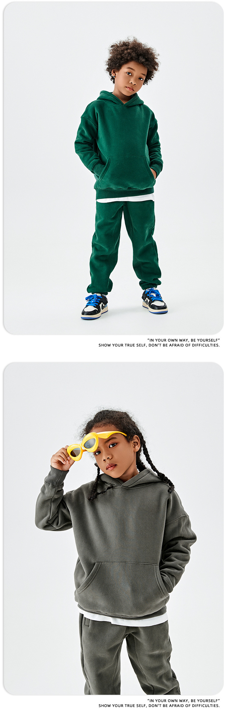 TILANI 아동복 유럽과 미국 조수 단색 350g 기모 두꺼운 후드 조끼 큰 소년과 소녀 어린이 재킷