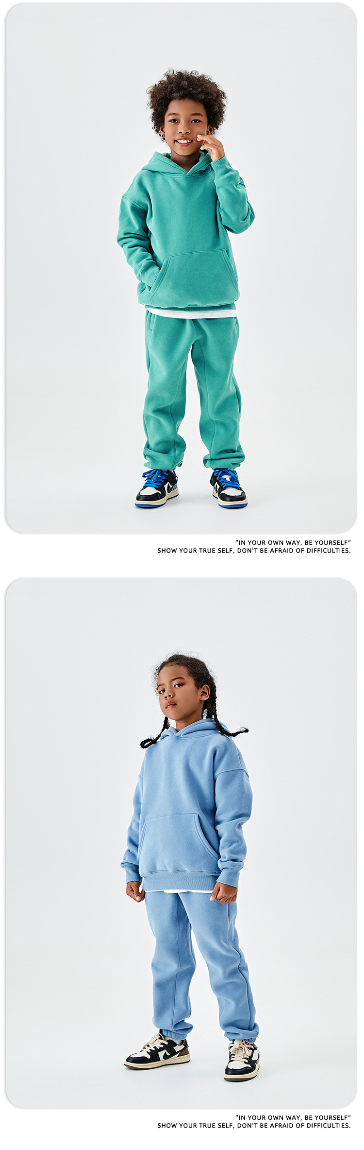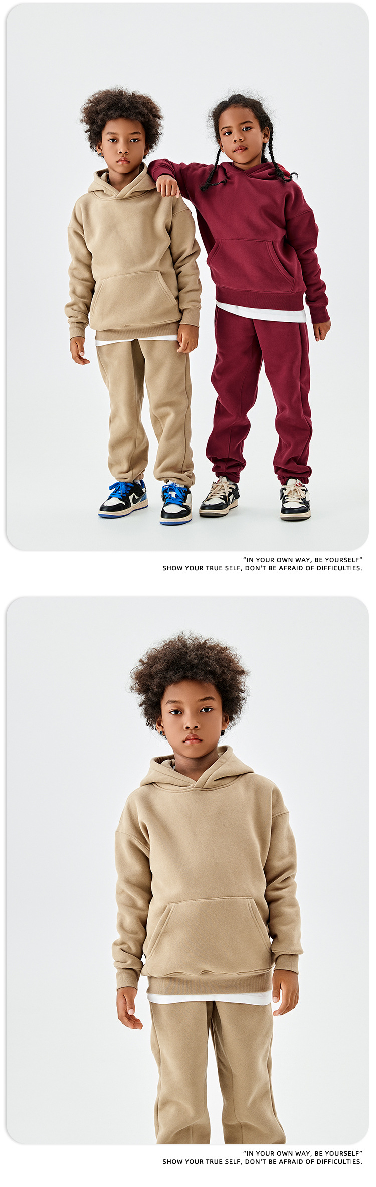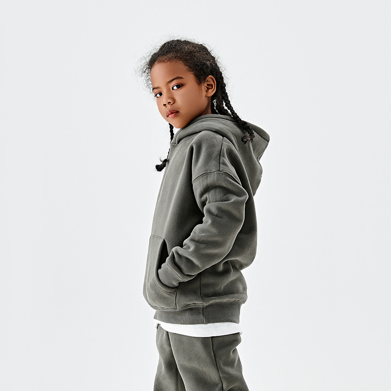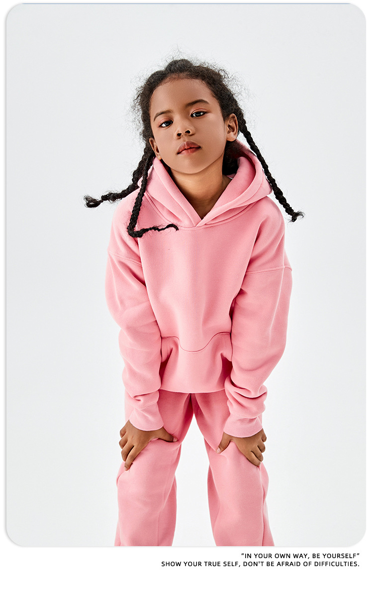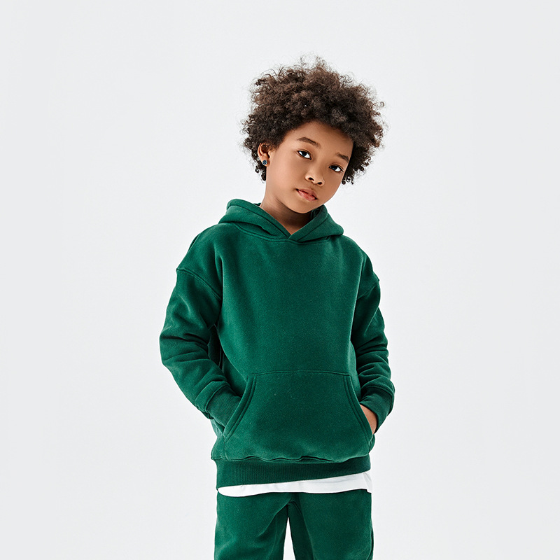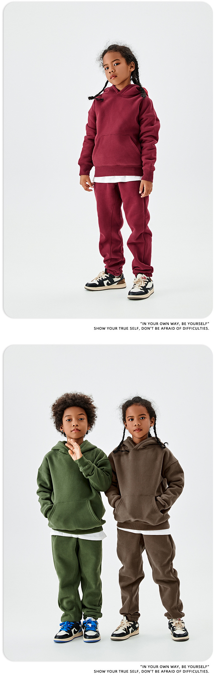 TILANI 아동복 유럽과 미국 조수 단색 350g 기모 두꺼운 후드 조끼 큰 소년과 소녀 어린이 재킷
