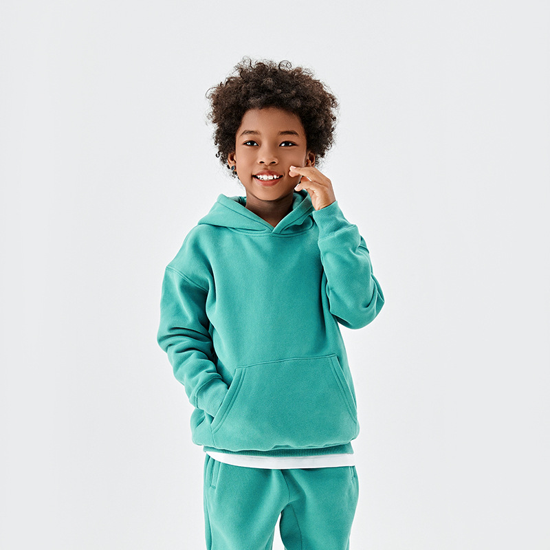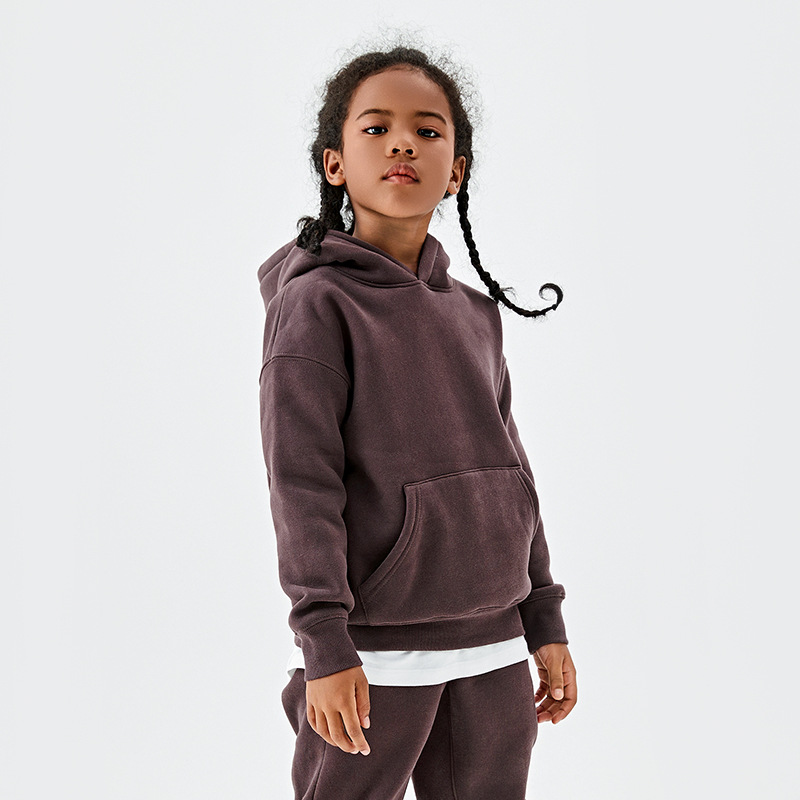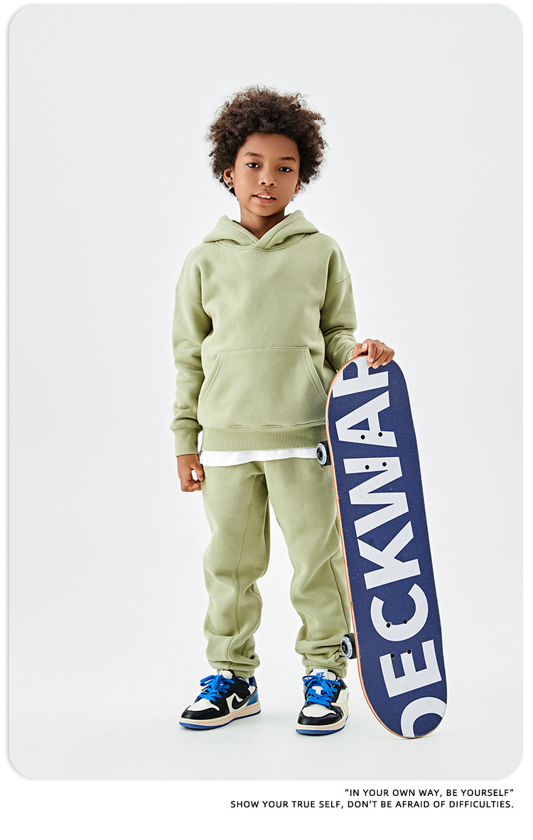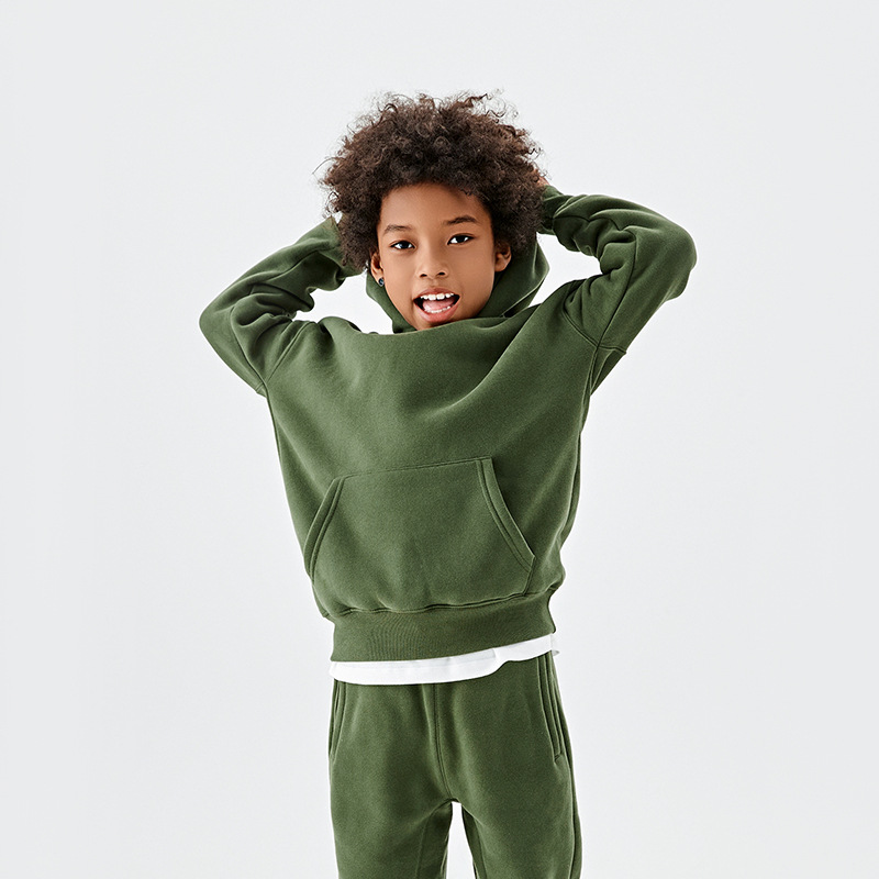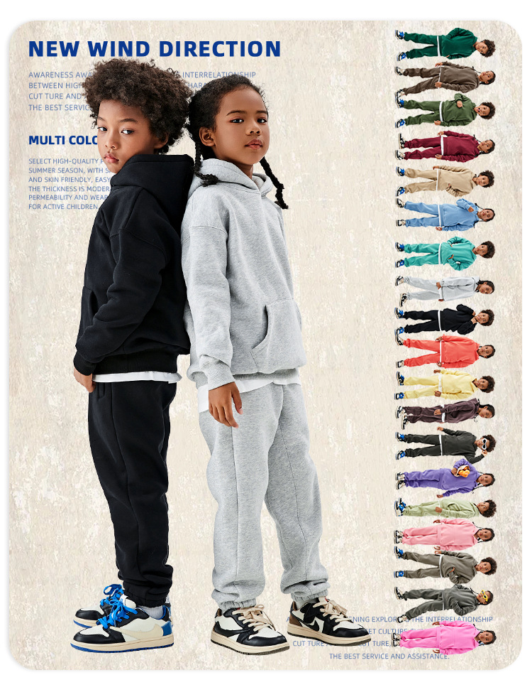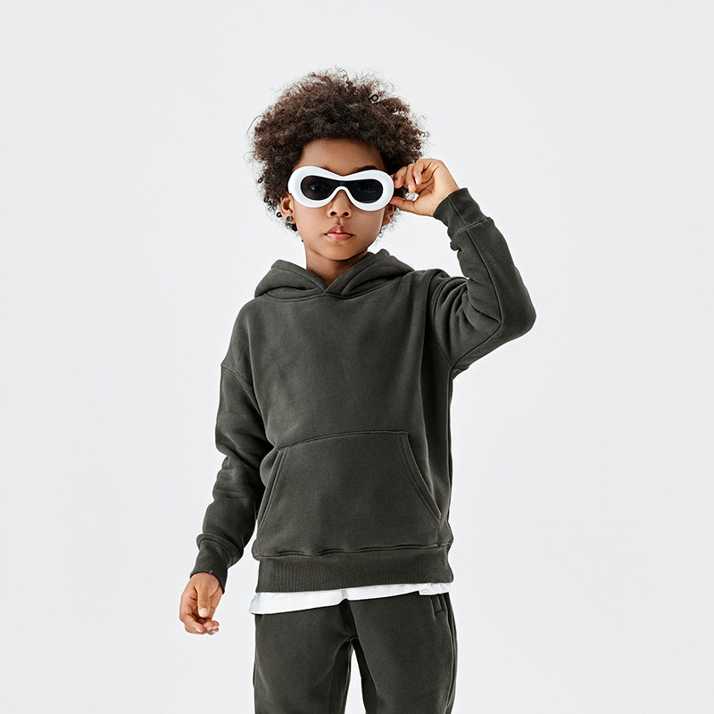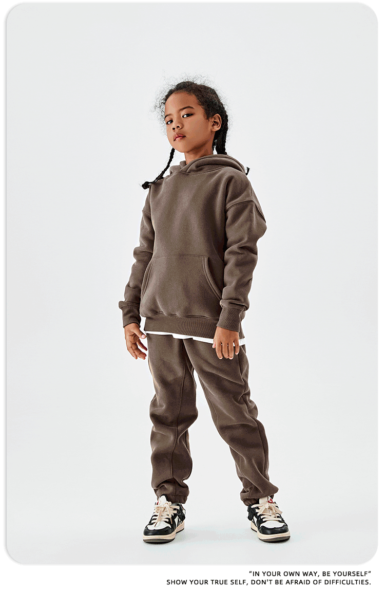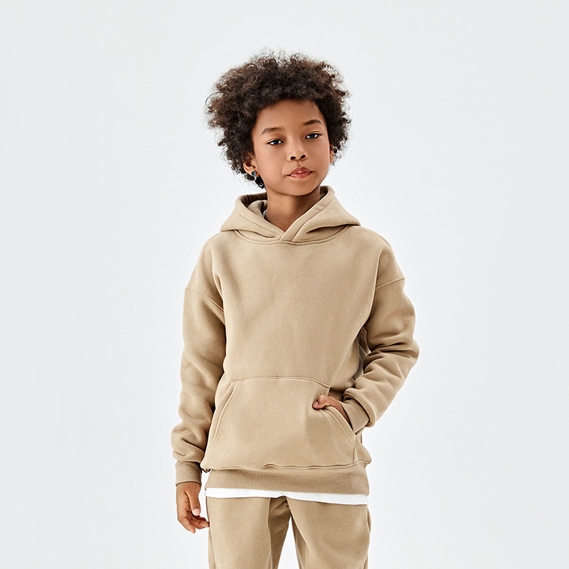 TILANI 아동복 유럽과 미국 조수 단색 350g 기모 두꺼운 후드 조끼 큰 소년과 소녀 어린이 재킷