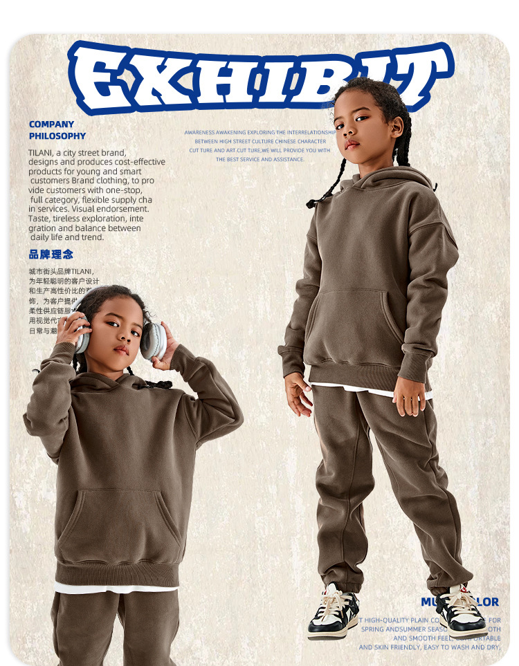 TILANI 아동복 유럽과 미국 조수 단색 350g 기모 두꺼운 후드 조끼 큰 소년과 소녀 어린이 재킷스토어 가기