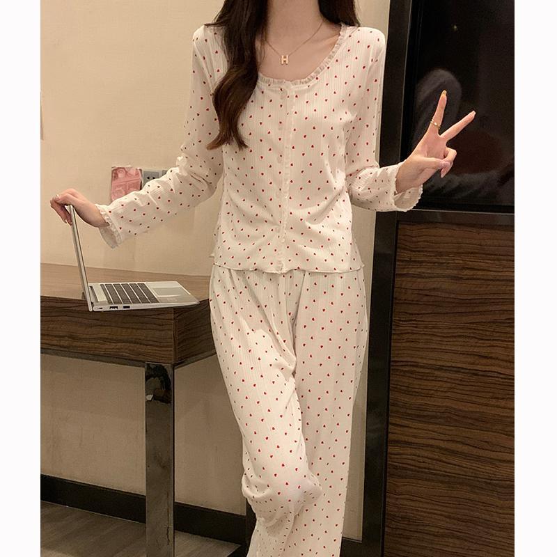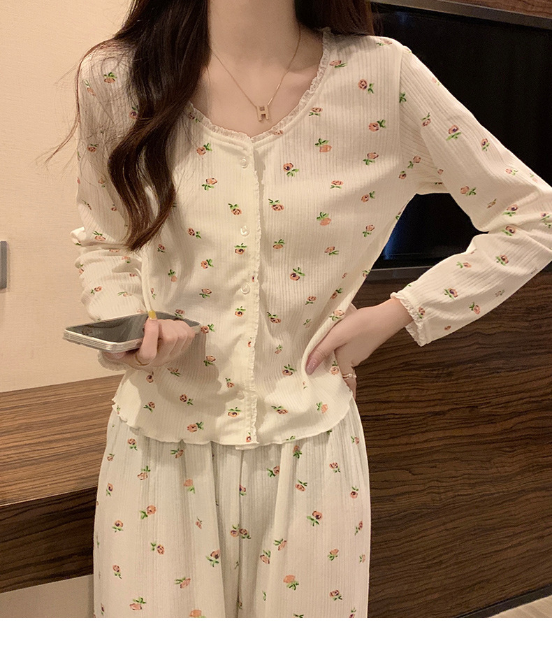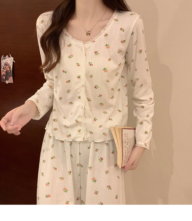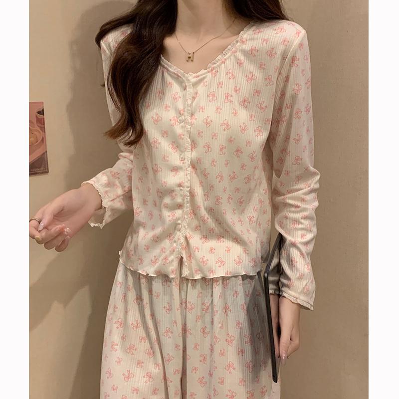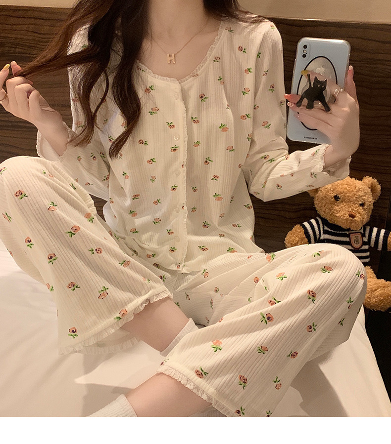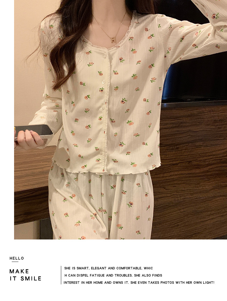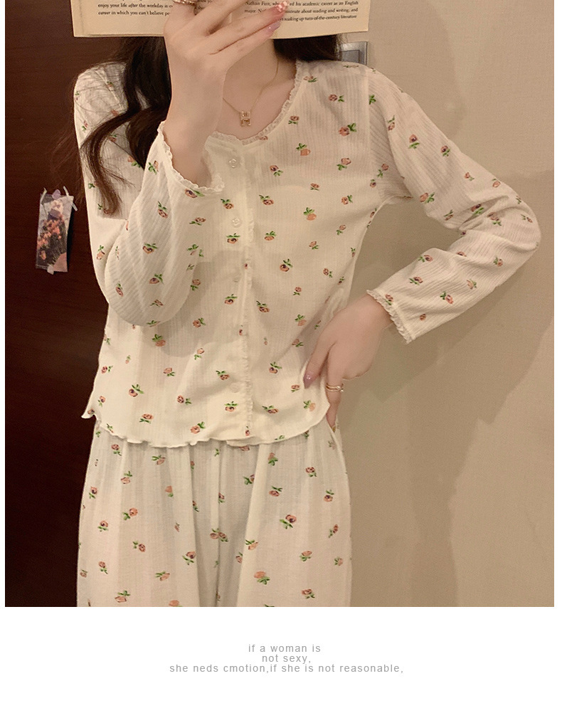 가을 잠옷 여자의 봄과 가을 긴 소매 2023 새로운 폭발 섹시한 인터넷 트렌드 크루넥 꽃 투피스 세트스토어 가기