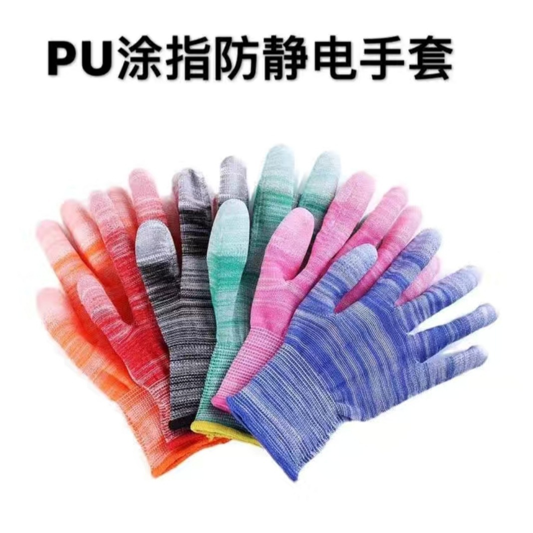 PU 손가락 코팅 담근 나일론 정전기 방지 노동 장갑 도매 작업 내마모성 미끄럼 방지 얇은 통기성 내구성