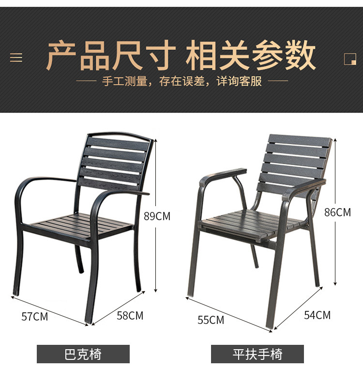 야외 플라스틱 목재 테이블과 의자 방습 목재 야외 발코니 차 테이블과 의자 정원 커피 숍 레저 의자 안뜰 테이블과 의자스토어 가기