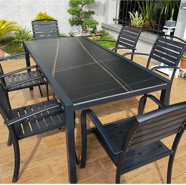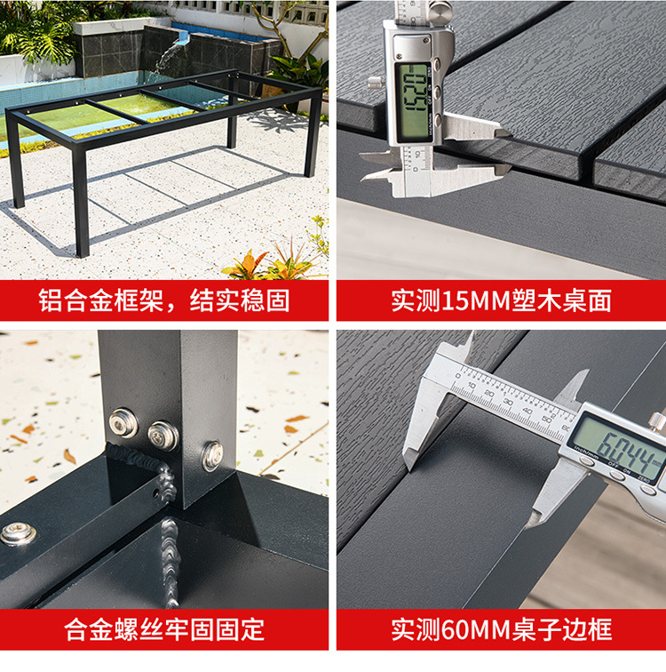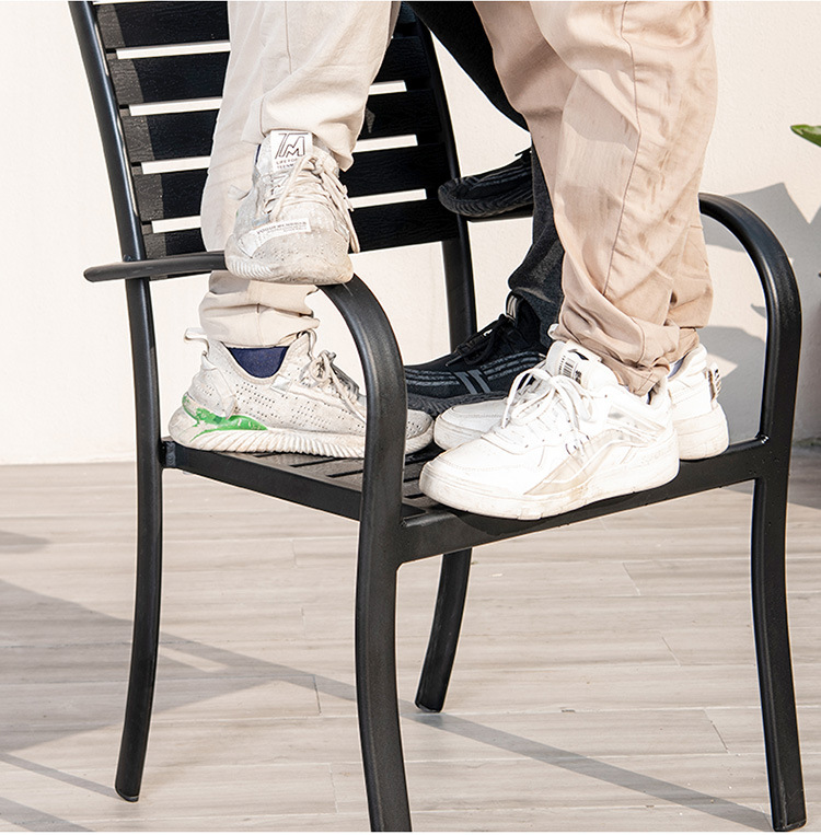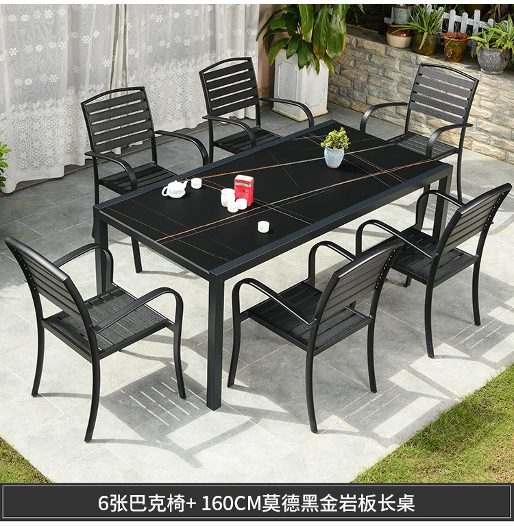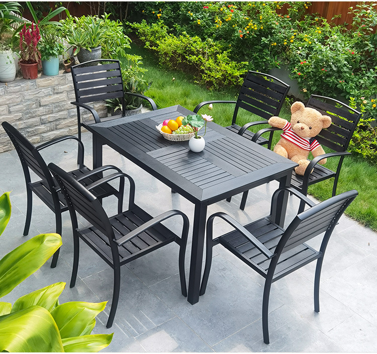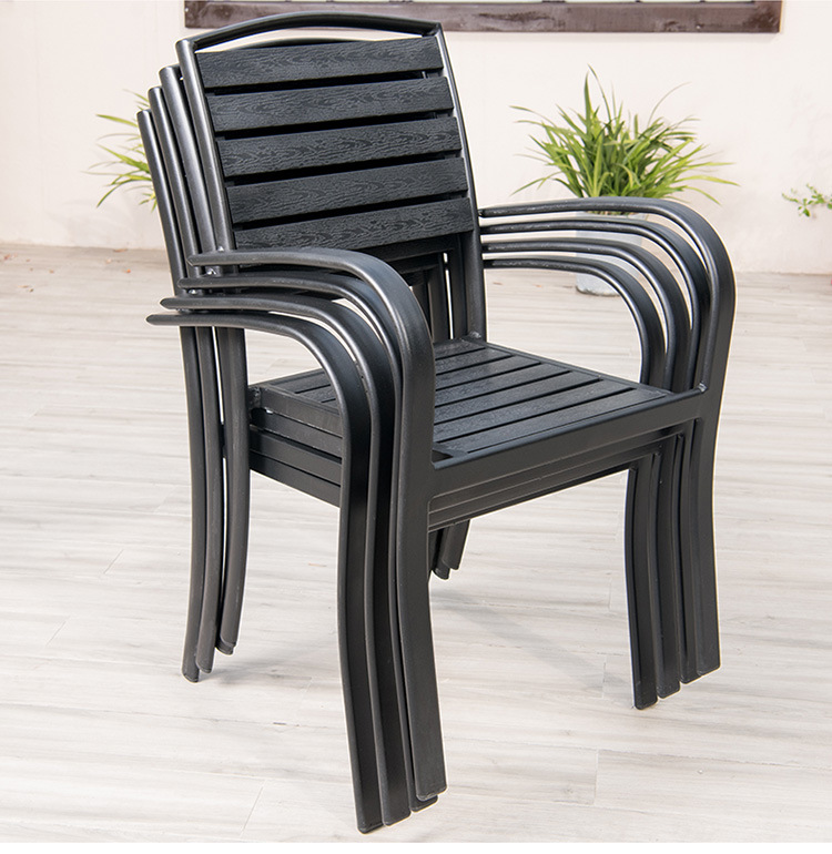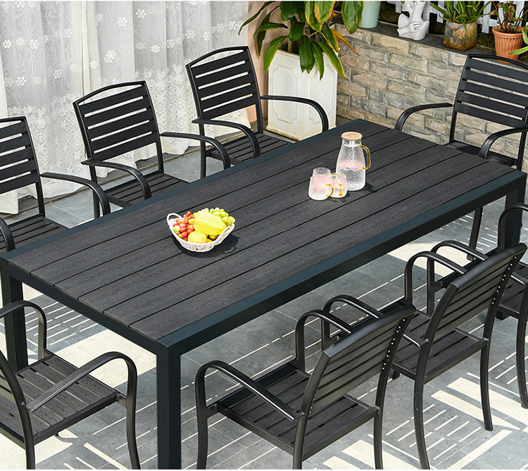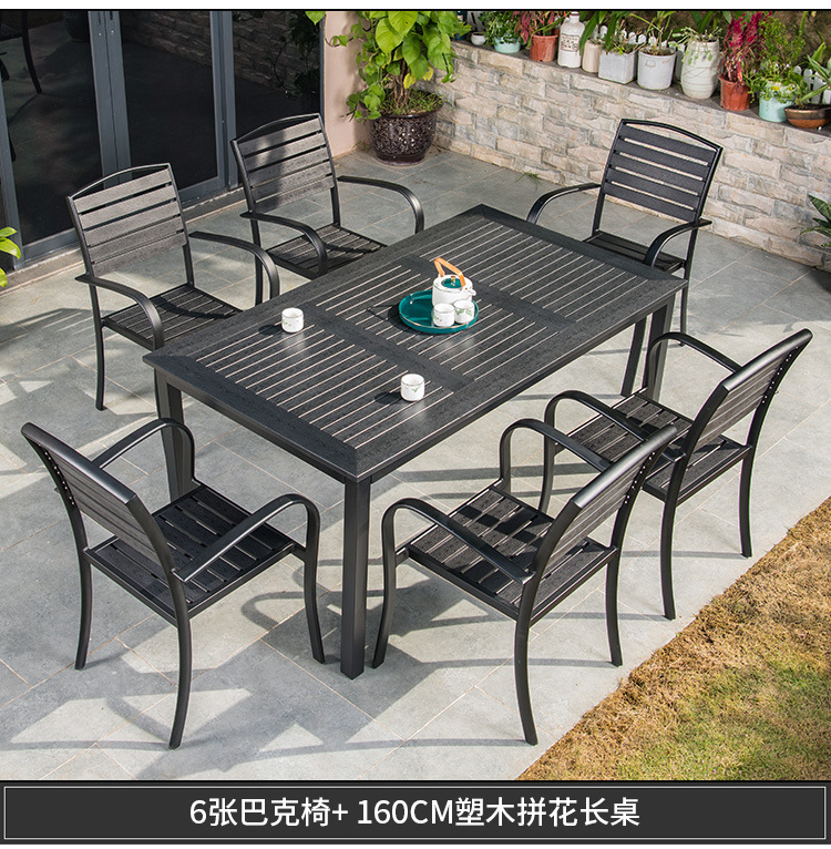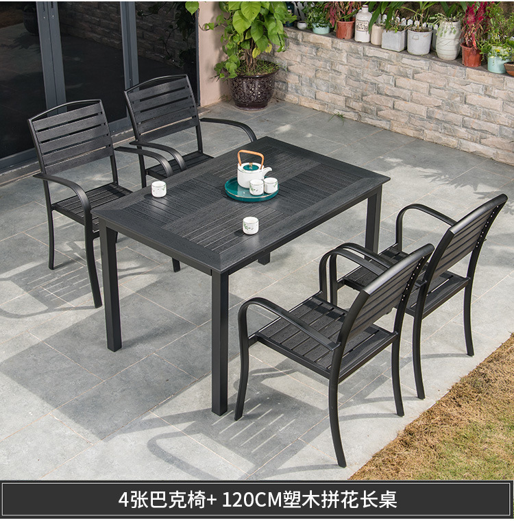 야외 플라스틱 목재 테이블과 의자 방습 목재 야외 발코니 차 테이블과 의자 정원 커피 숍 레저 의자 안뜰 테이블과 의자