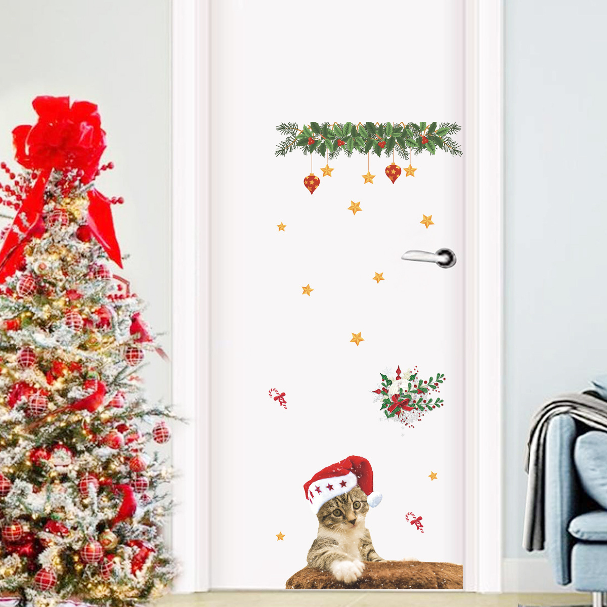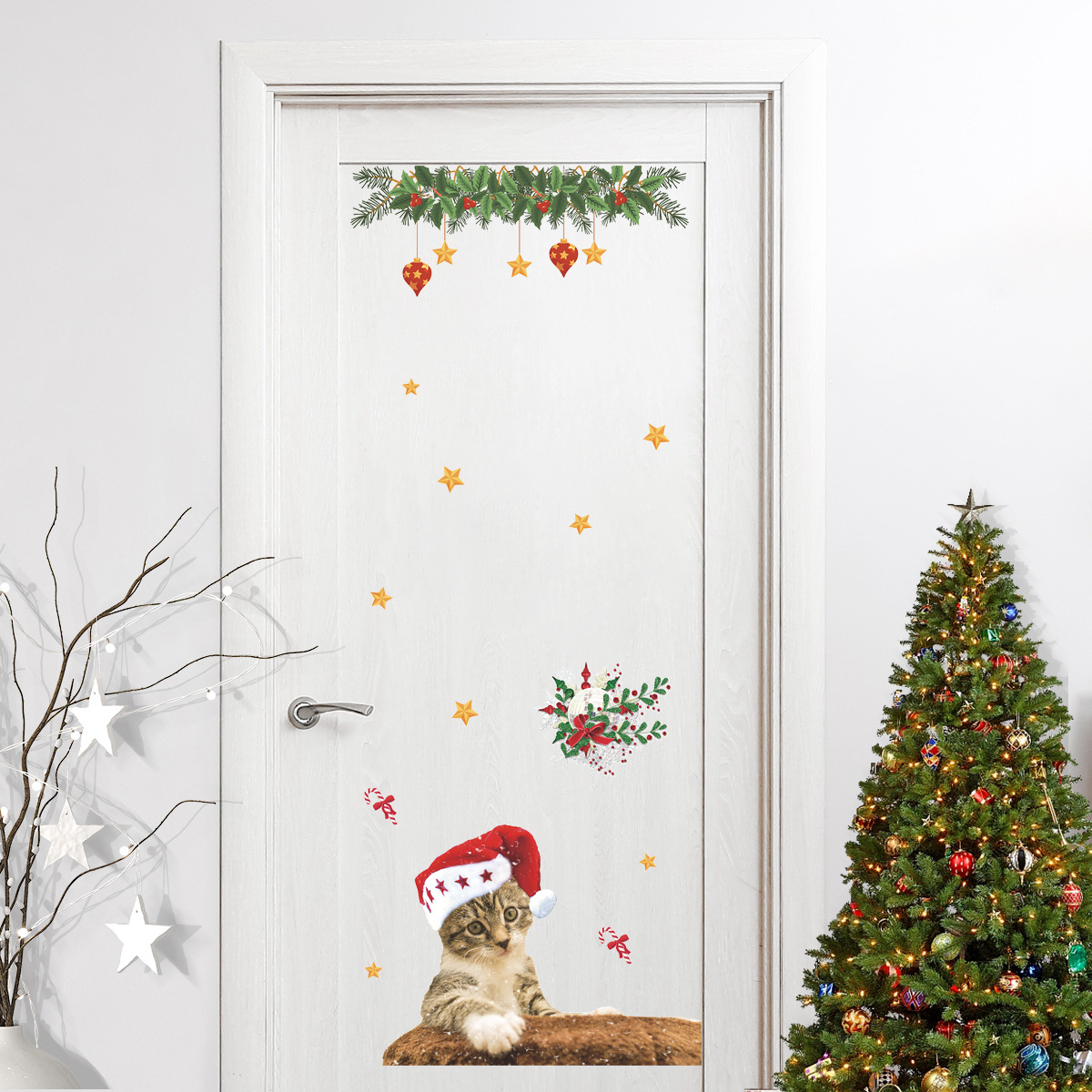 PH-SD 10.72 백만 거룩한 날 스티커 해외 무역 국경 자체 접착 귀여운 고양이 벽 스티커 창 유리 문과 창 스티커스토어 가기