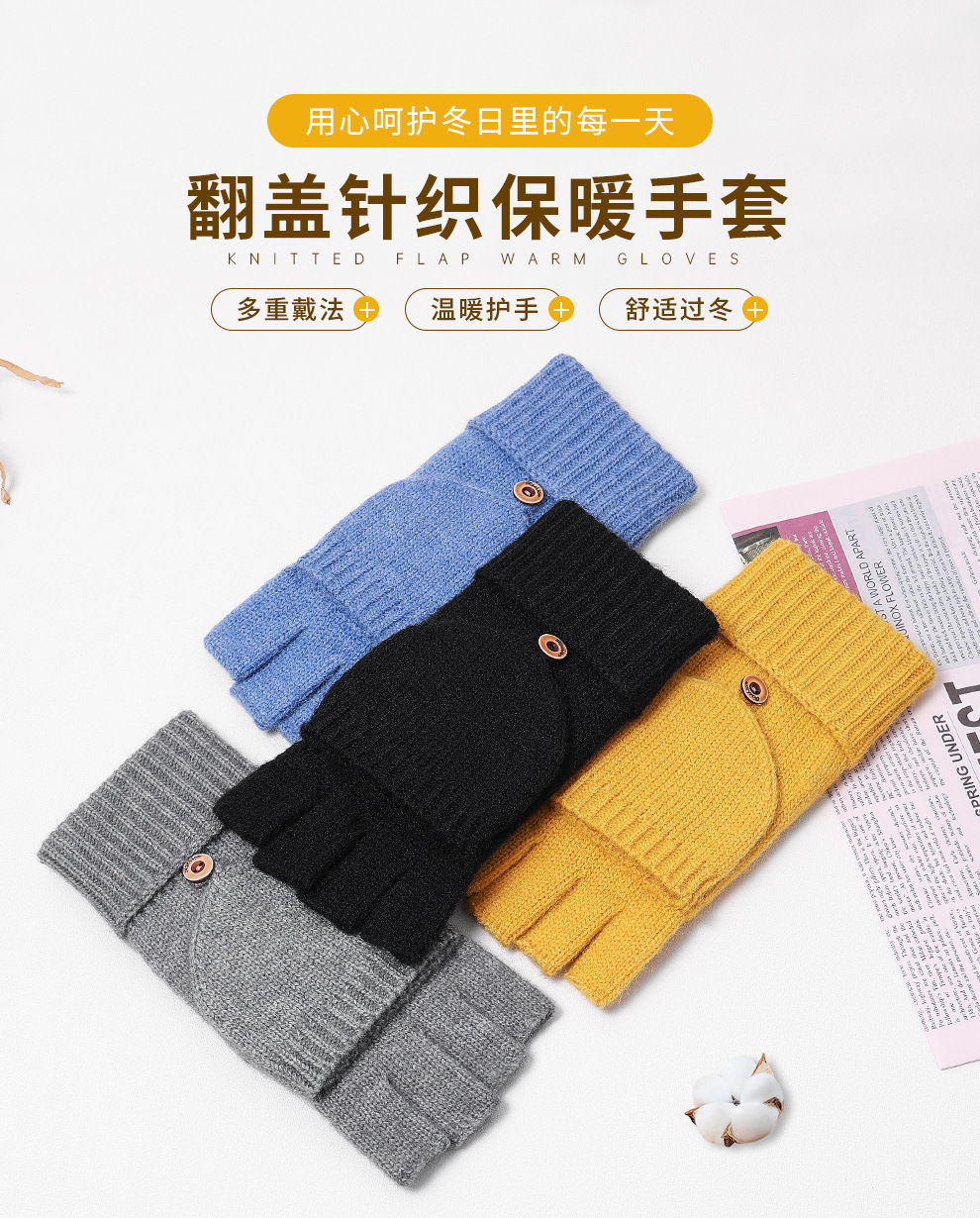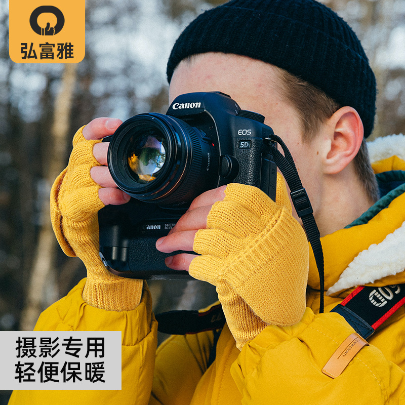 가을 겨울 야외 촬영용 특수 장갑, 반손가락 플립업 디자인, 손가락 노출형 터치스크린 드론 촬영용 니트 보온 장갑