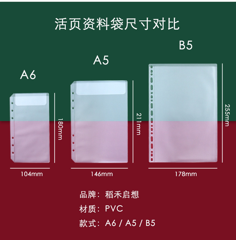 • A7 느슨한 잎 6 구멍 지퍼 백