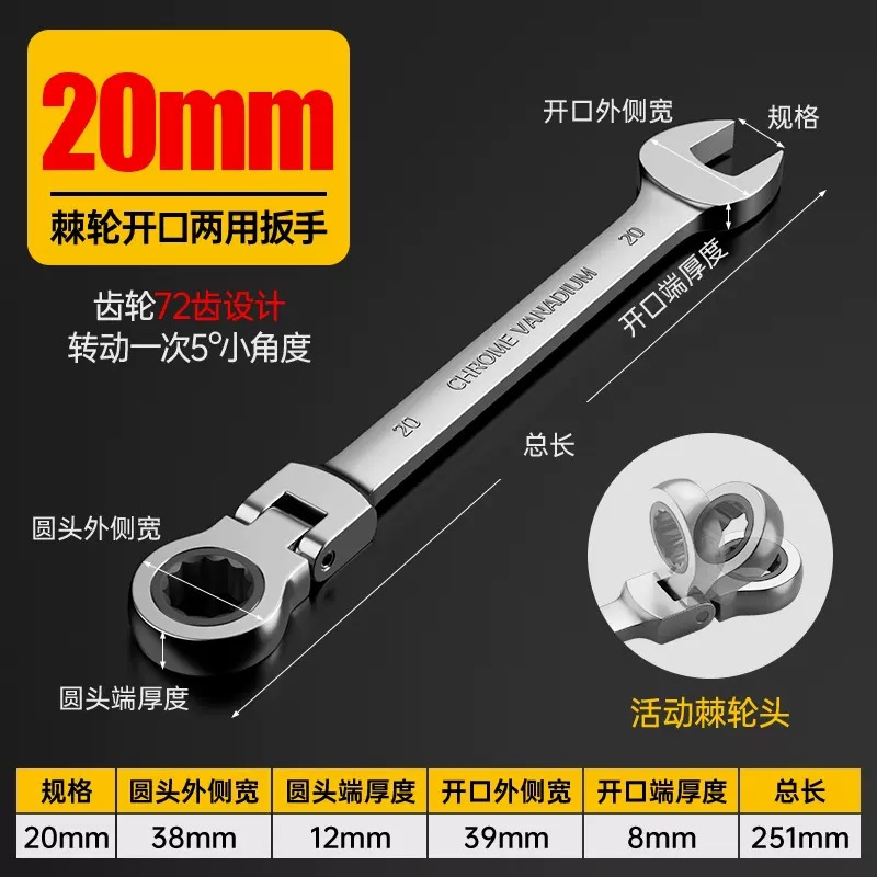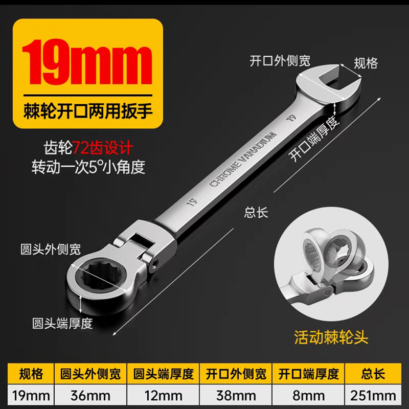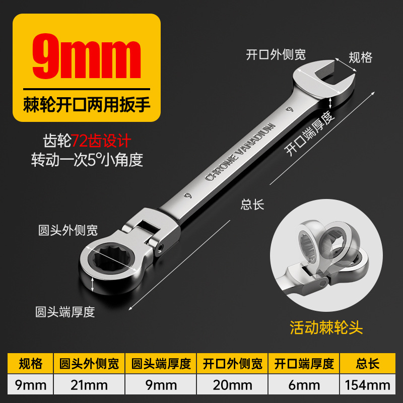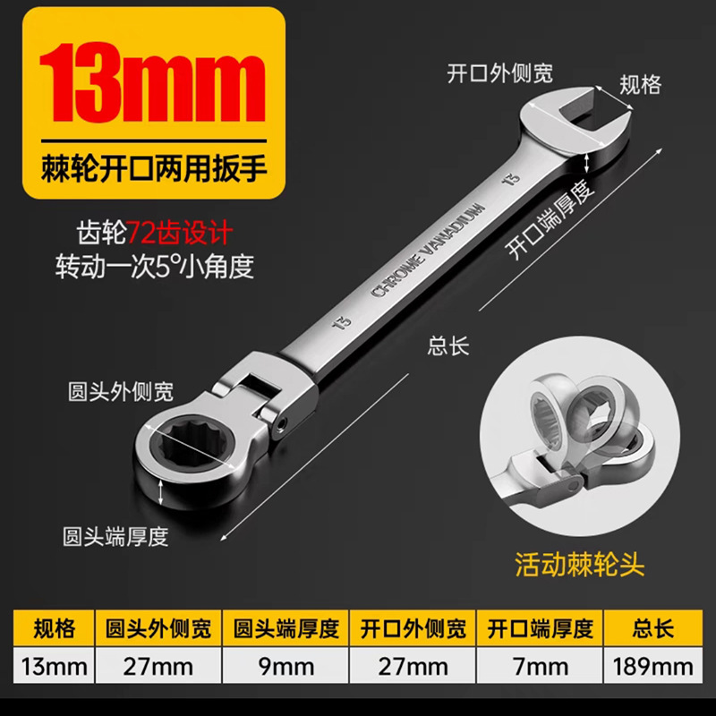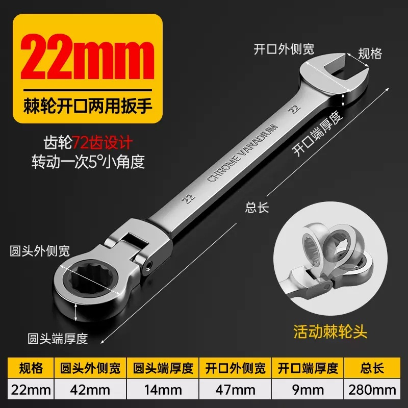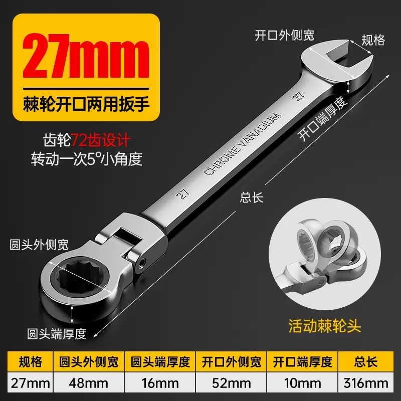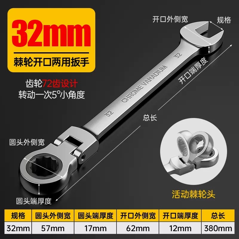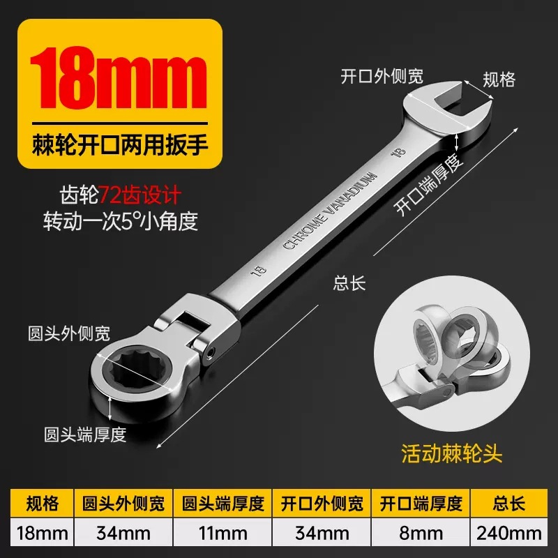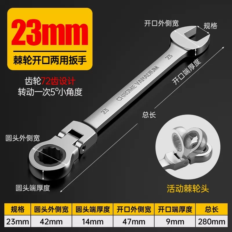 가동 헤드 이중 목적 래칫 렌치 흔들기 헤드 72 이빨 180 Torx 개방형 이중 목적 퀵 렌치 공구스토어 가기