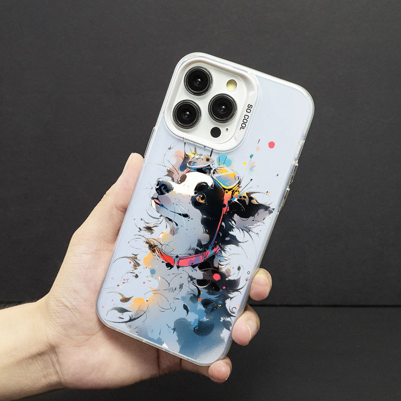 유화 안경 개 디자인 애플 14/13/12ProMAX용 방탄 14PRO 피부 느낌 무광 TPU 보호 케이스 귀여운 디자인