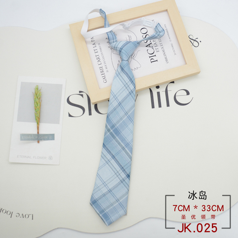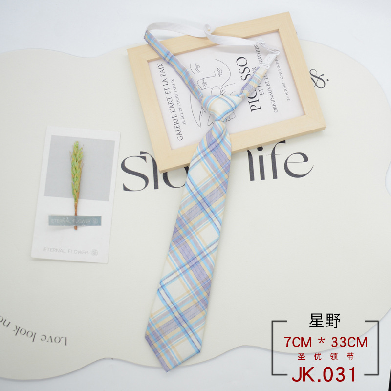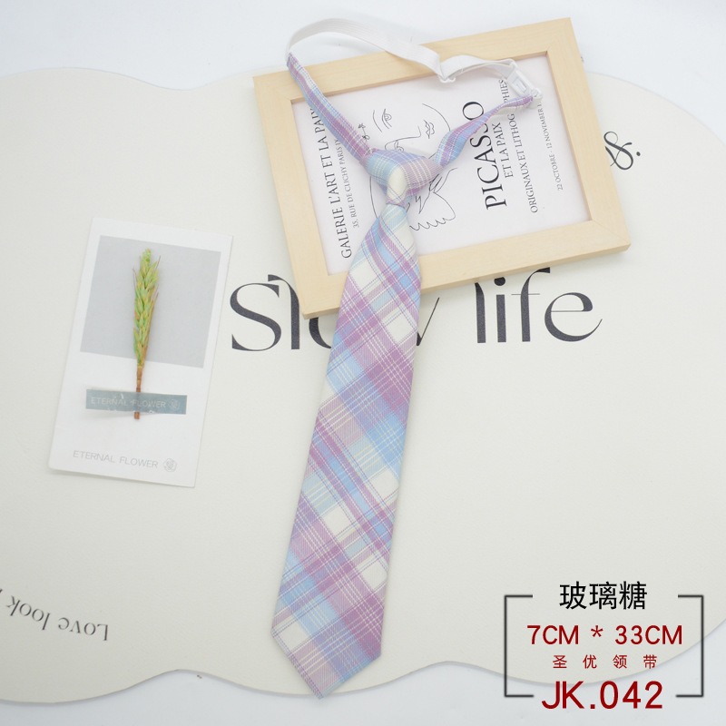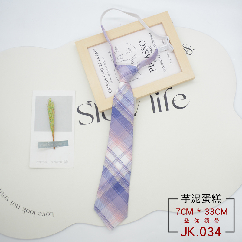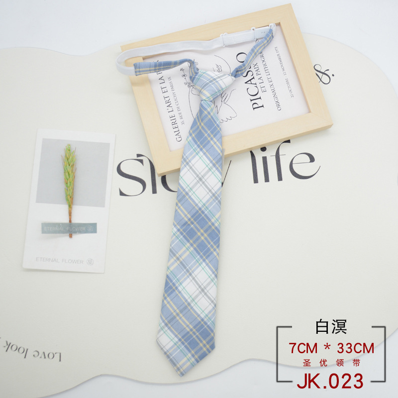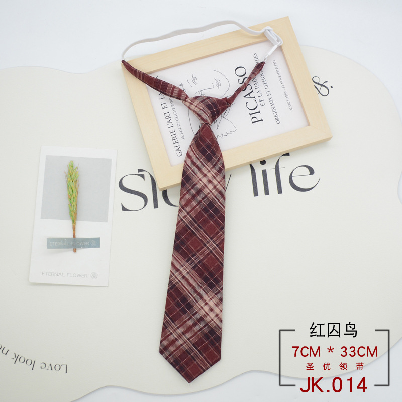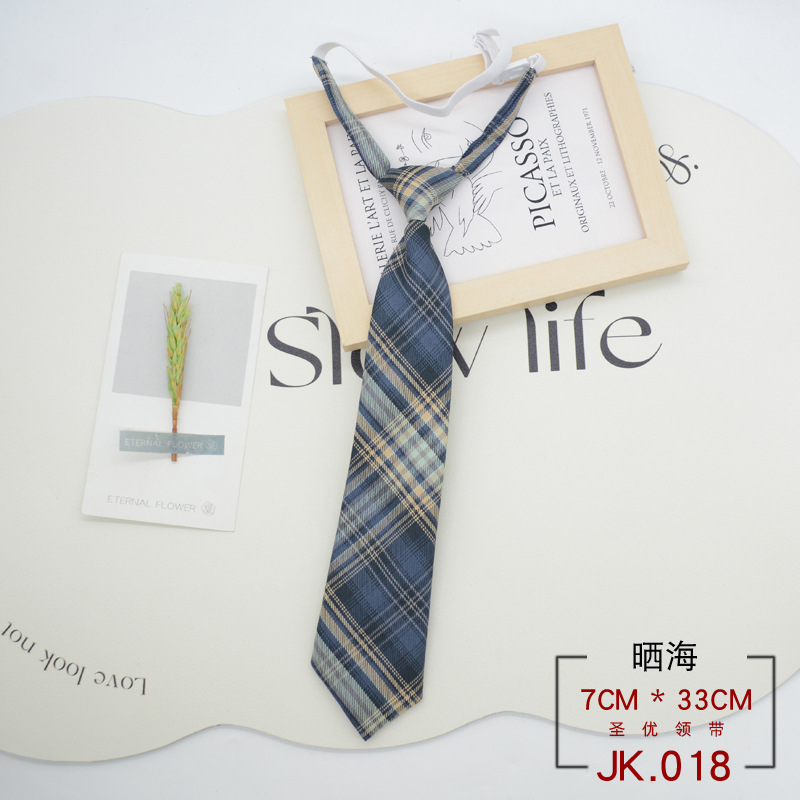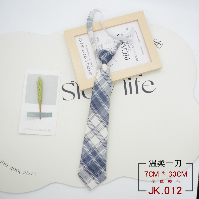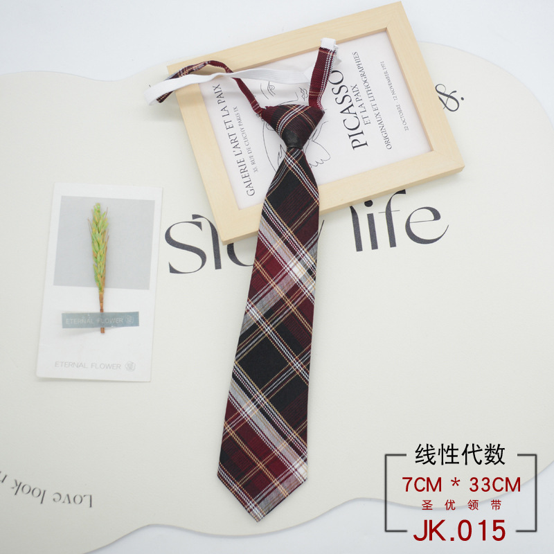 JK 넥타이 격자 무늬 여성 매듭없는 학생 대학 스타일 일본 짧은 작은 유니폼 교복 액세서리 게으른 사람들 준비 재고