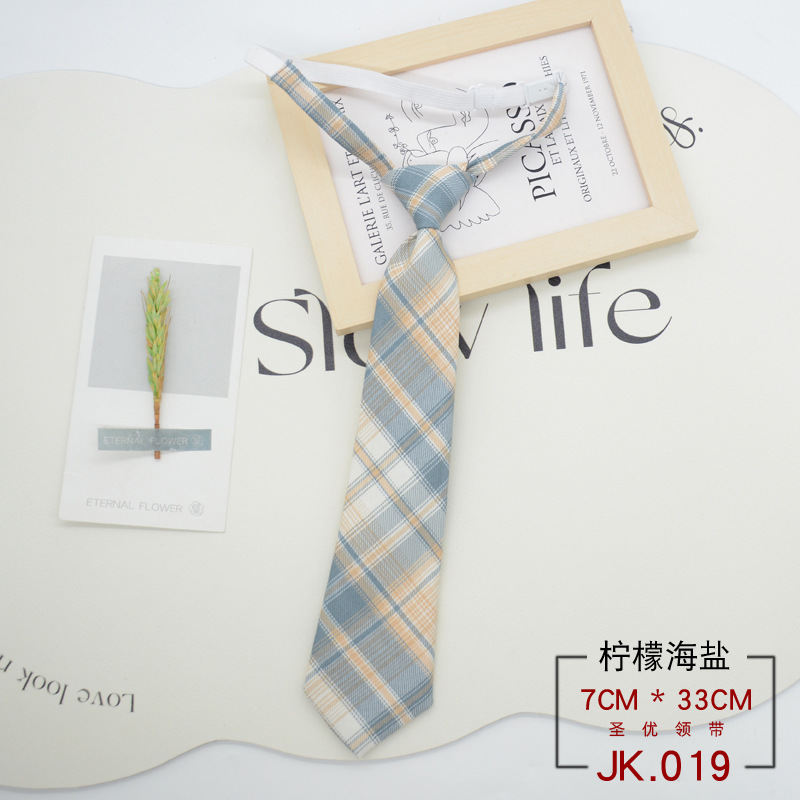 JK 넥타이 격자 무늬 여성 매듭없는 학생 대학 스타일 일본 짧은 작은 유니폼 교복 액세서리 게으른 사람들 준비 재고스토어 가기
