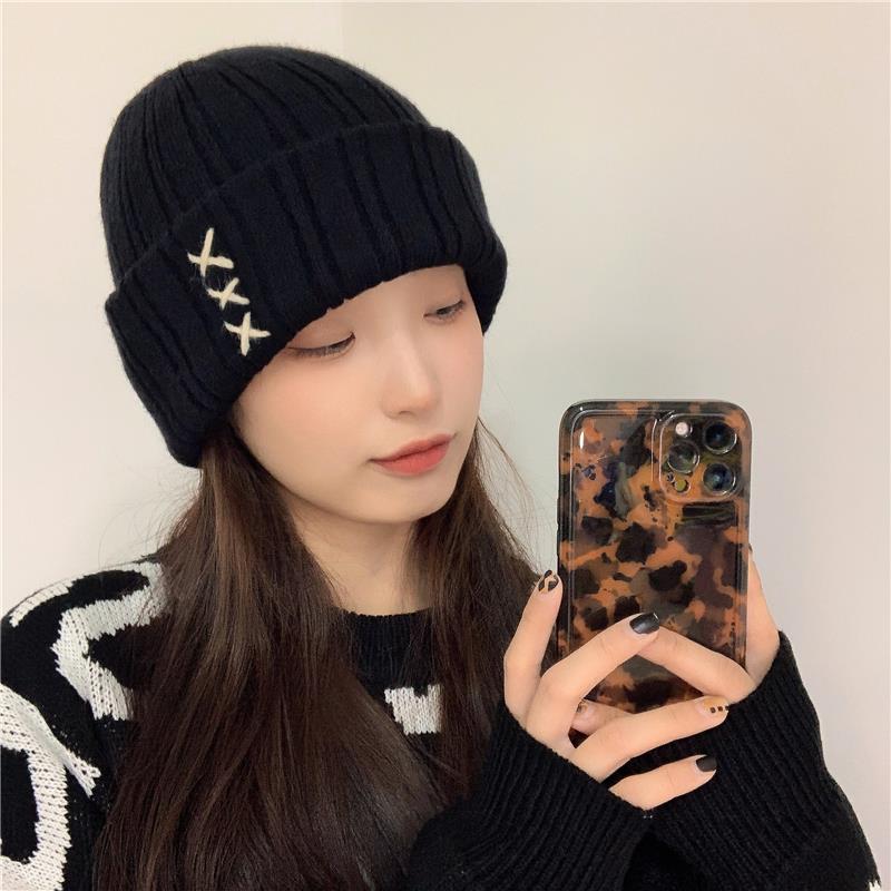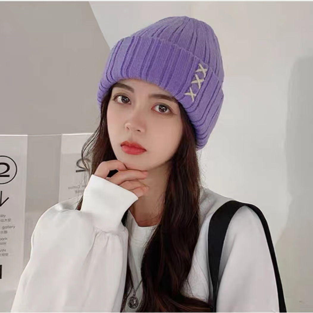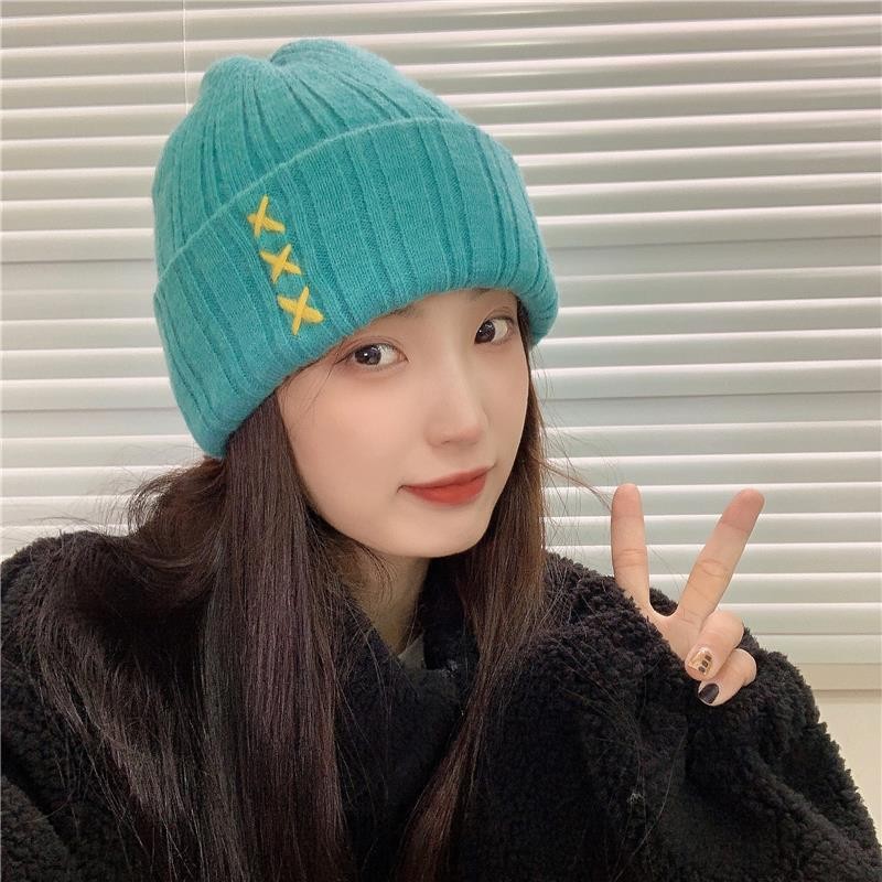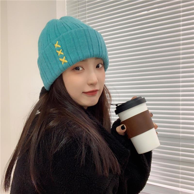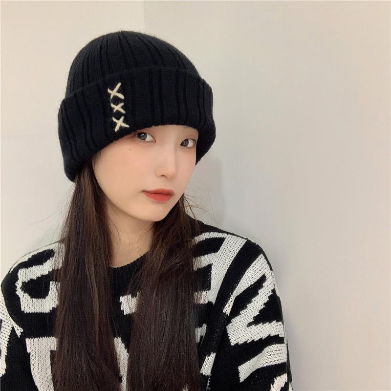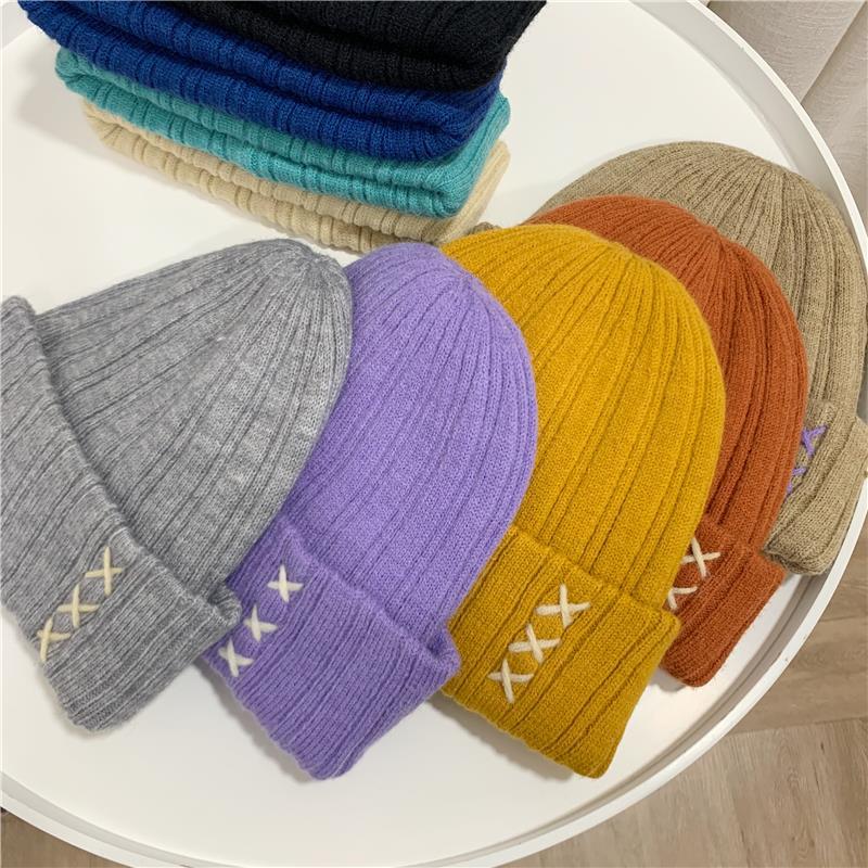 가을과 겨울 새로운 스티치 니트 모자 여학생을위한 달콤한 모든 매치 패션 간단한 따뜻한 풀오버 커플 울 모자
