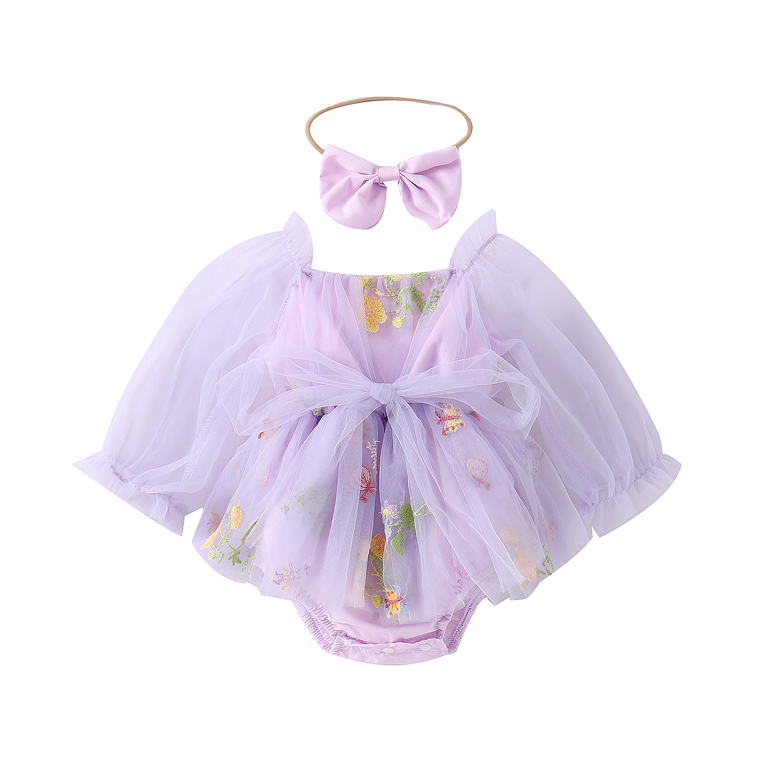 Baoxin 아동복 한국식 아기 소녀의 가을 꽃 자수 메쉬 소매 스커트 2 색 가랑이 개방 랩 의류스토어 가기
